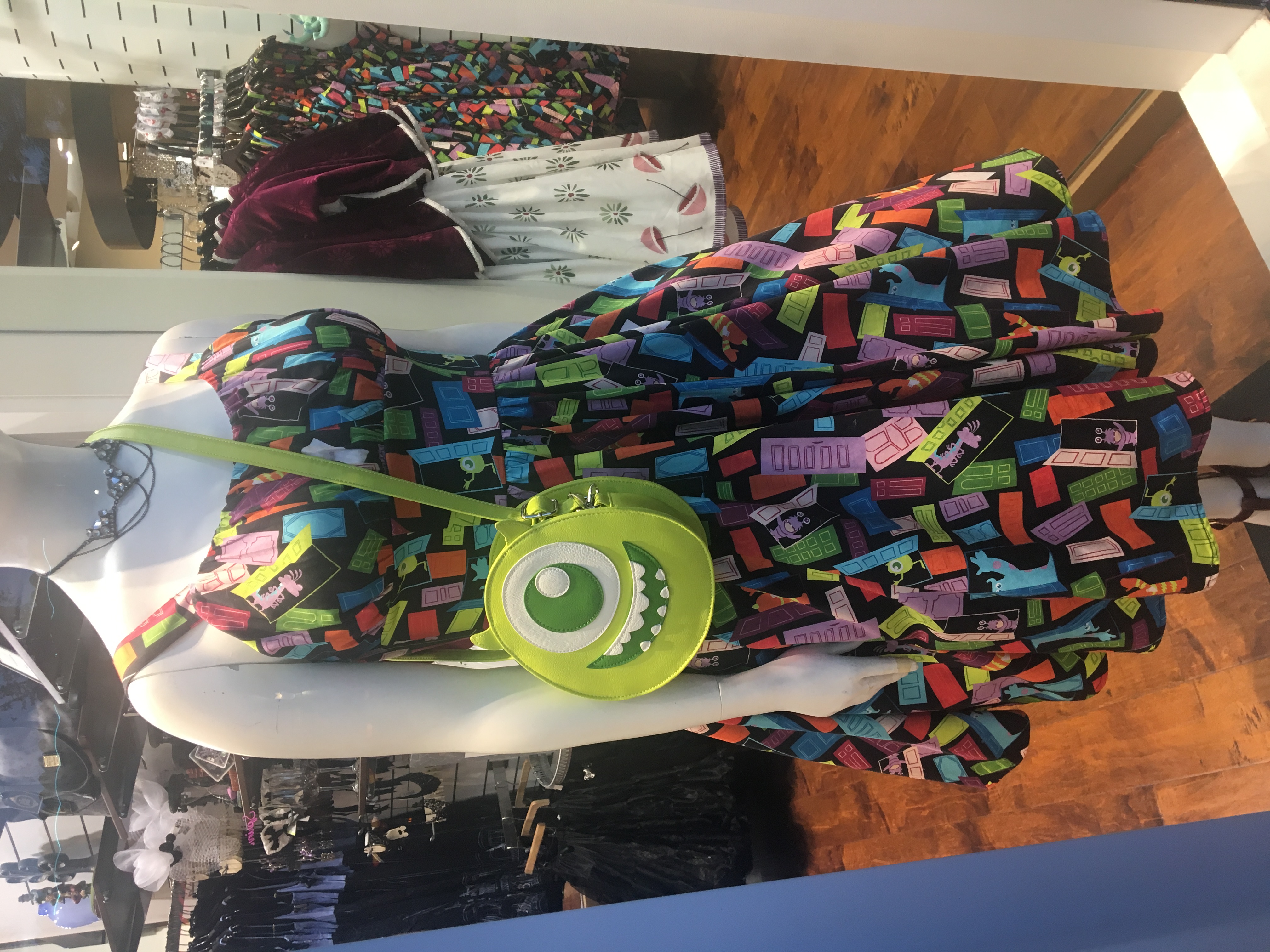 Ever since Disney started The Dress Shop line, the items have been increasingly popular, prompting Disney to come out with new styles and accessories on a regular basis. A Monsters Inc. door dress came out not too long ago, but a matching purse that dons Mike Wazowski’s adorably round face, just hit The Dress Shop store this week. Another dress that came out in the last couple of weeks is a Disneyland inspired dress, with the same park icon designs that can be found on this years 2018 merchandise line, a matching Dumbo purse.