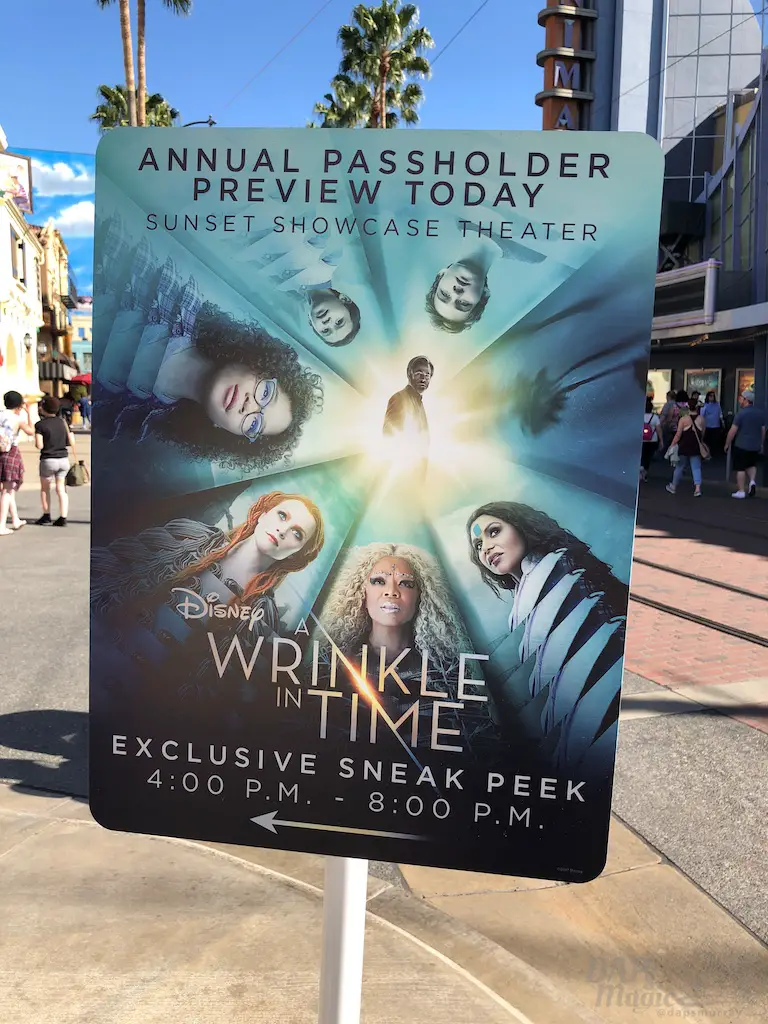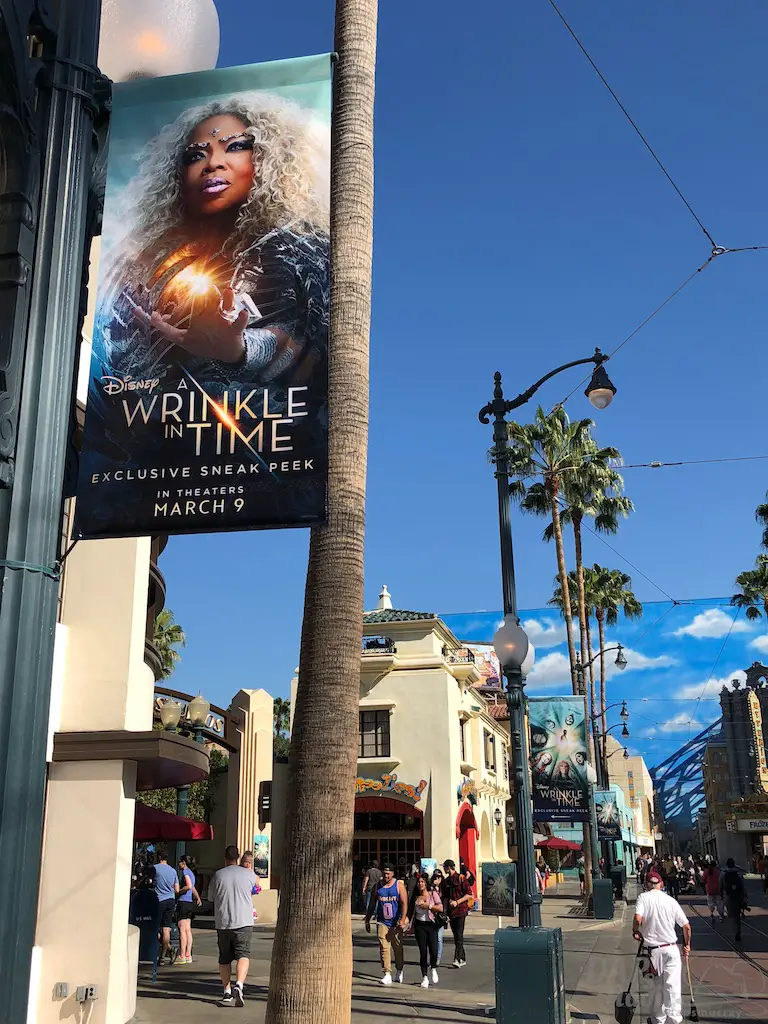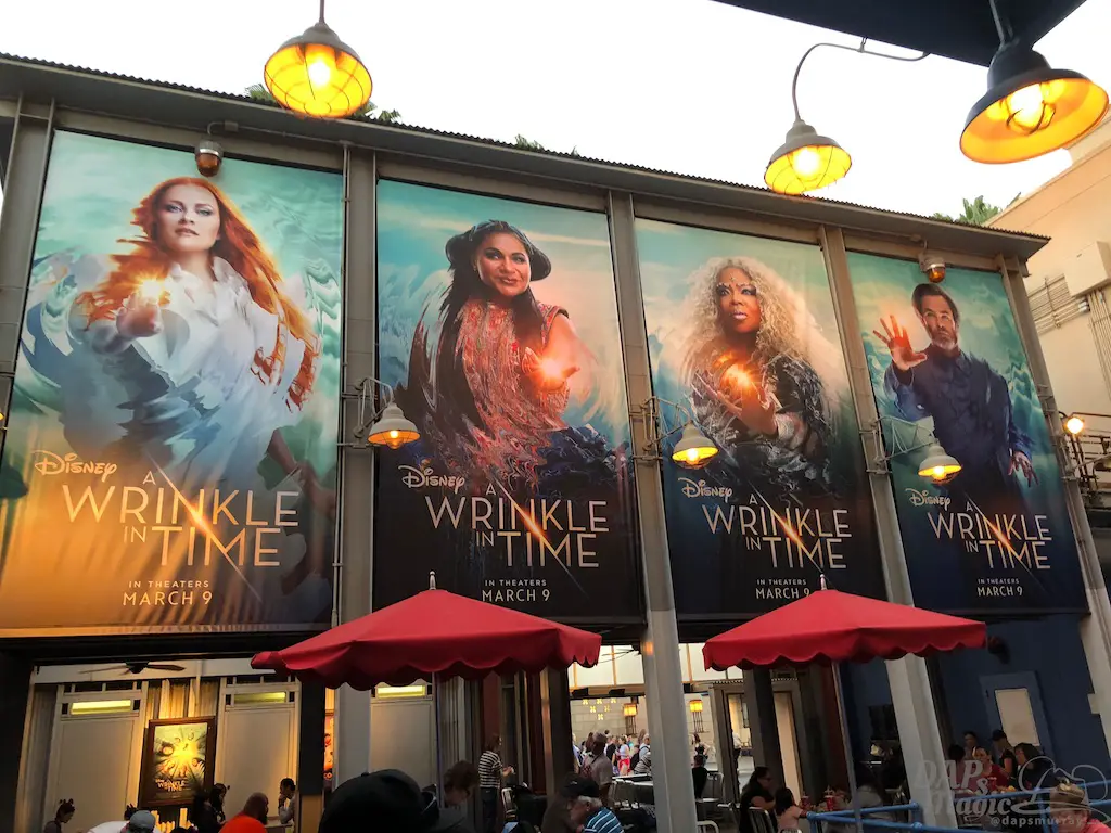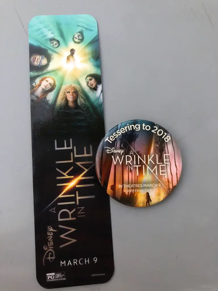 Disney California Adventure has the A Wrinkle in Time preview in Hollywoodland. Annual Passholders were treated to a preview of the preview and also received a button and bookmark. Inside are dresses worn by Oprah Winfrey, Reese Witherspoon, and Mindy Kaling.