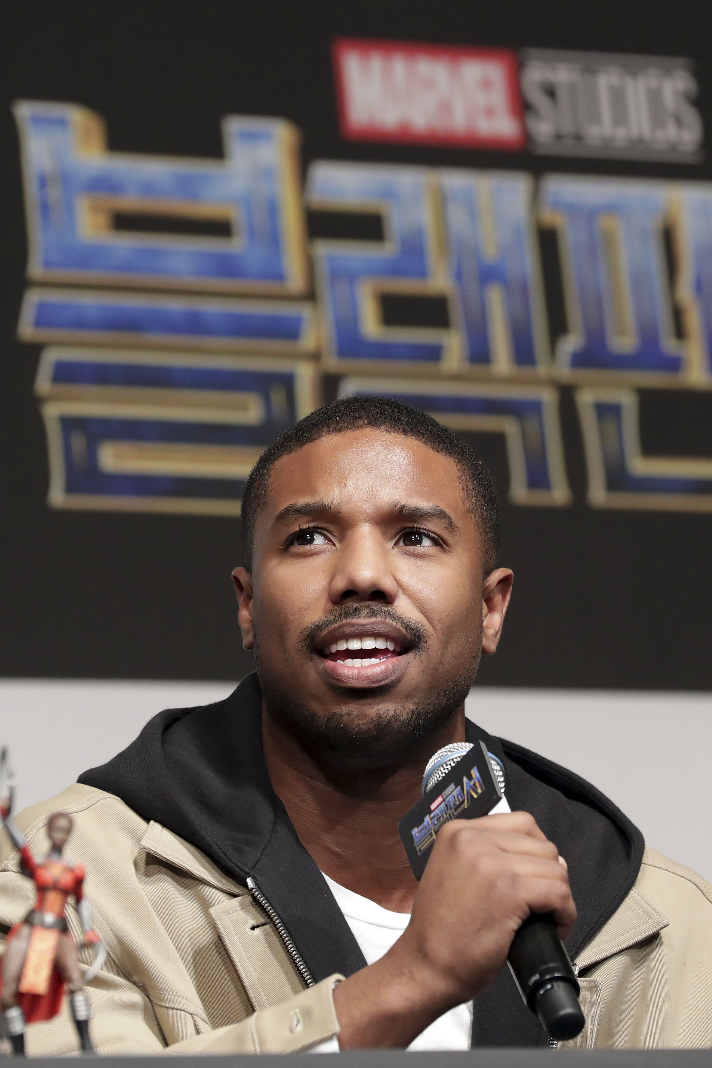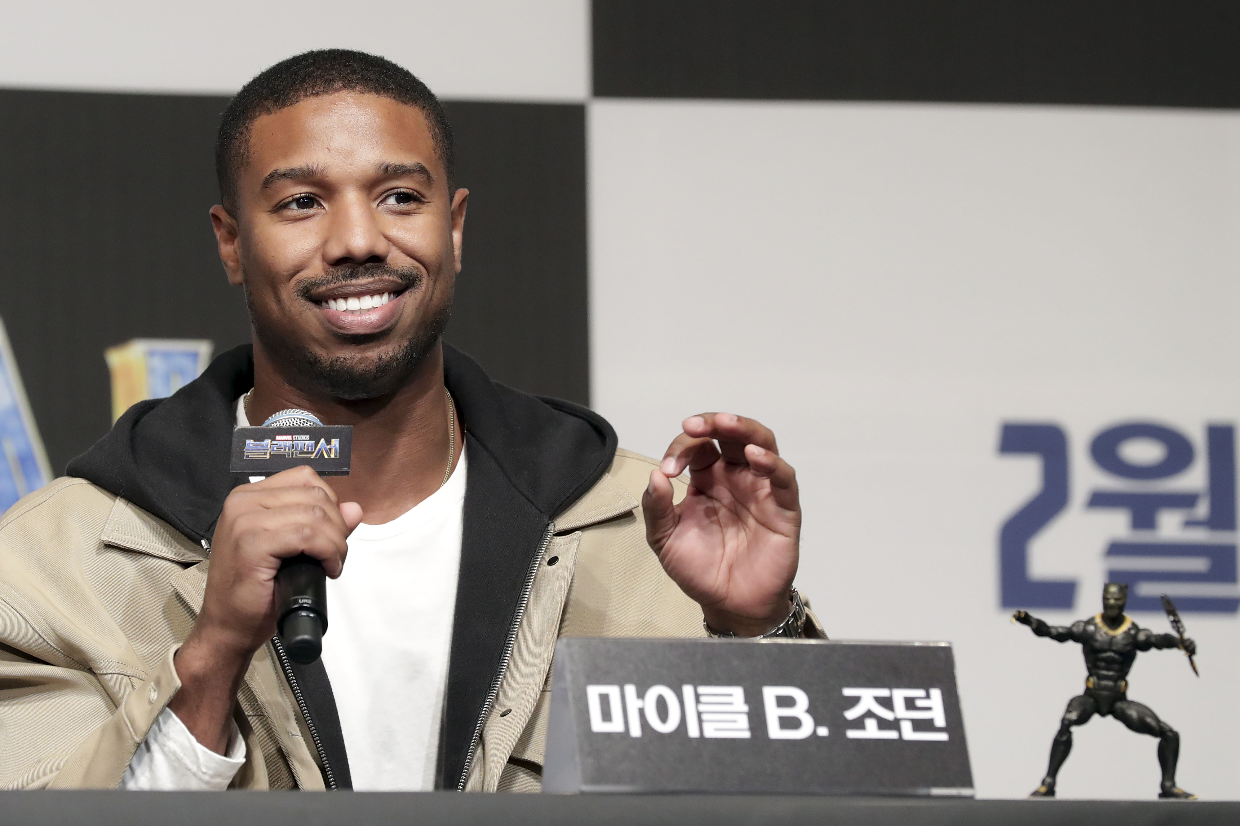 SEOUL, SOUTH KOREA – FEBRUARY 05: Actor Michael B. Jordan attends the press conference for the Seoul premiere of ‘Black Panther’ on February 5, 2018 in Seoul, South Korea. (Photo by Han Myung-Gu/Getty Images for Disney) *** Local Caption *** Michael B. Jordan