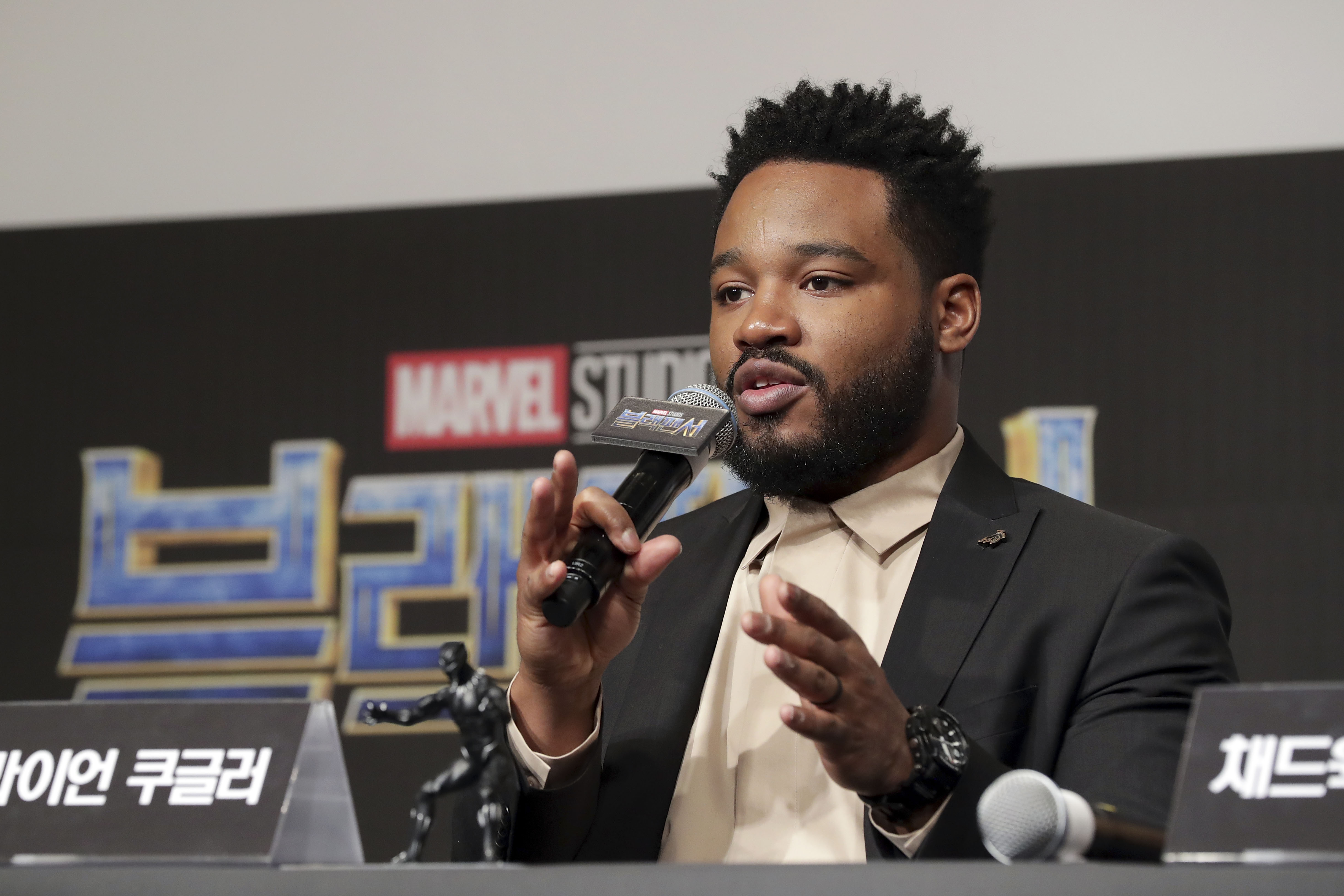 SEOUL, SOUTH KOREA – FEBRUARY 05: Director Ryan Coogler attends the press conference for the Seoul premiere of ‘Black Panther’ on February 5, 2018 in Seoul, South Korea. (Photo by Han Myung-Gu/Getty Images for Disney) *** Local Caption *** Ryan Coogler