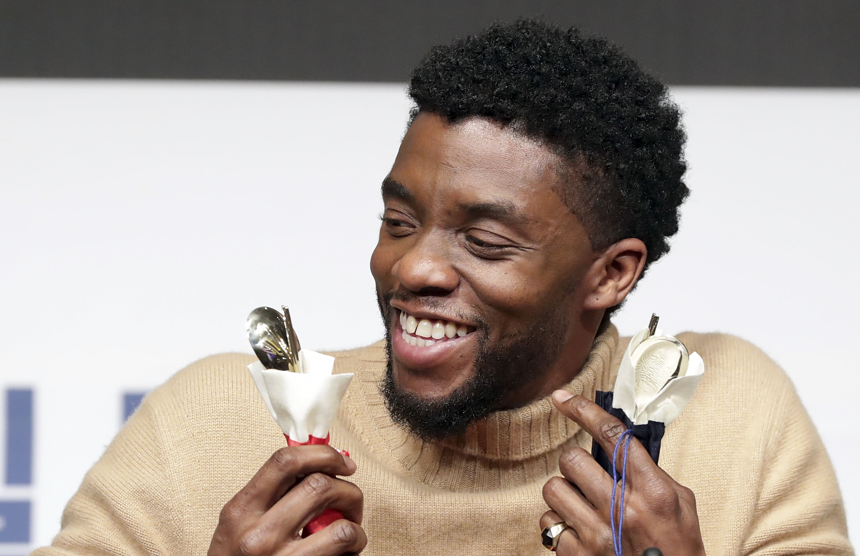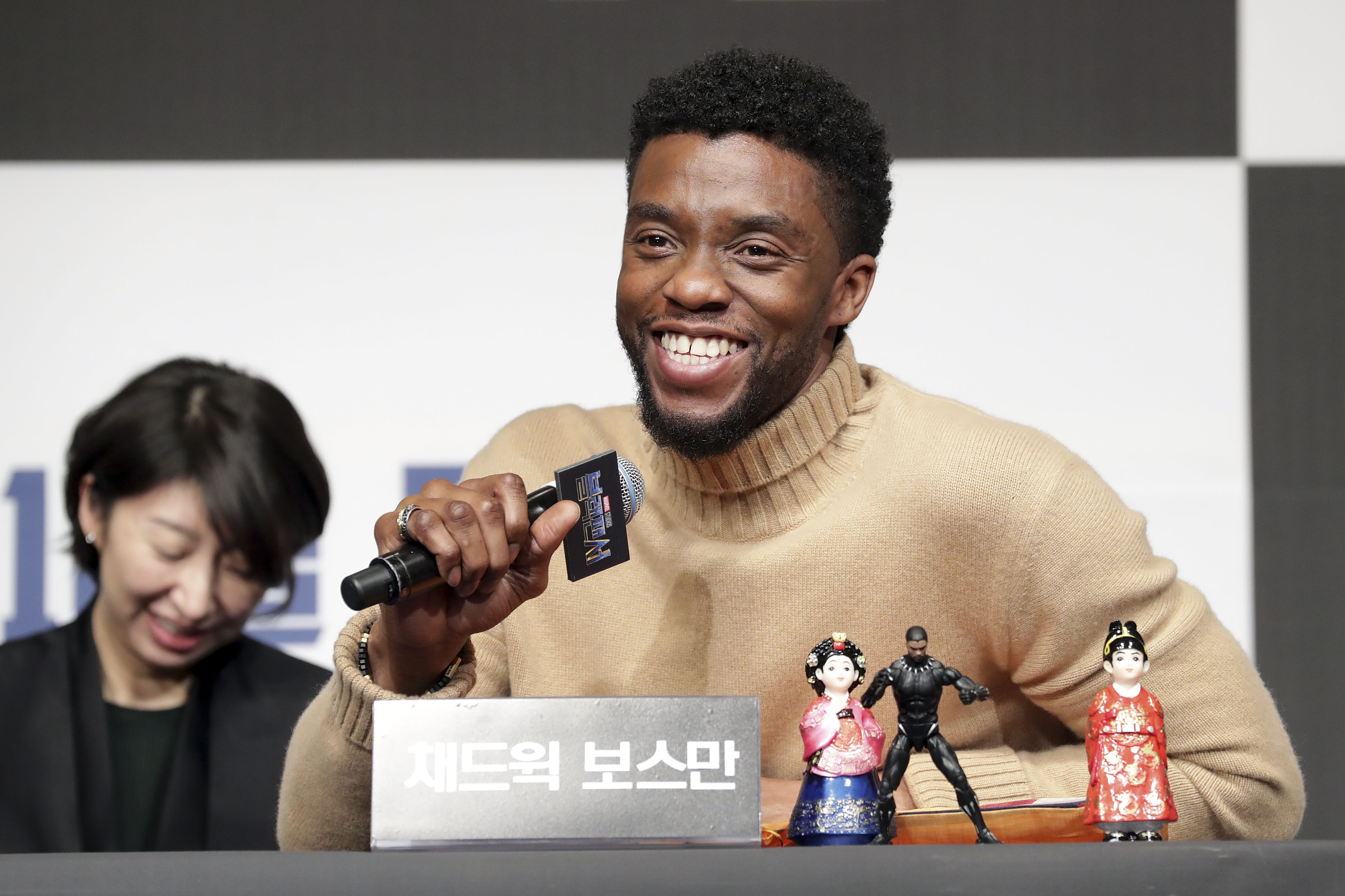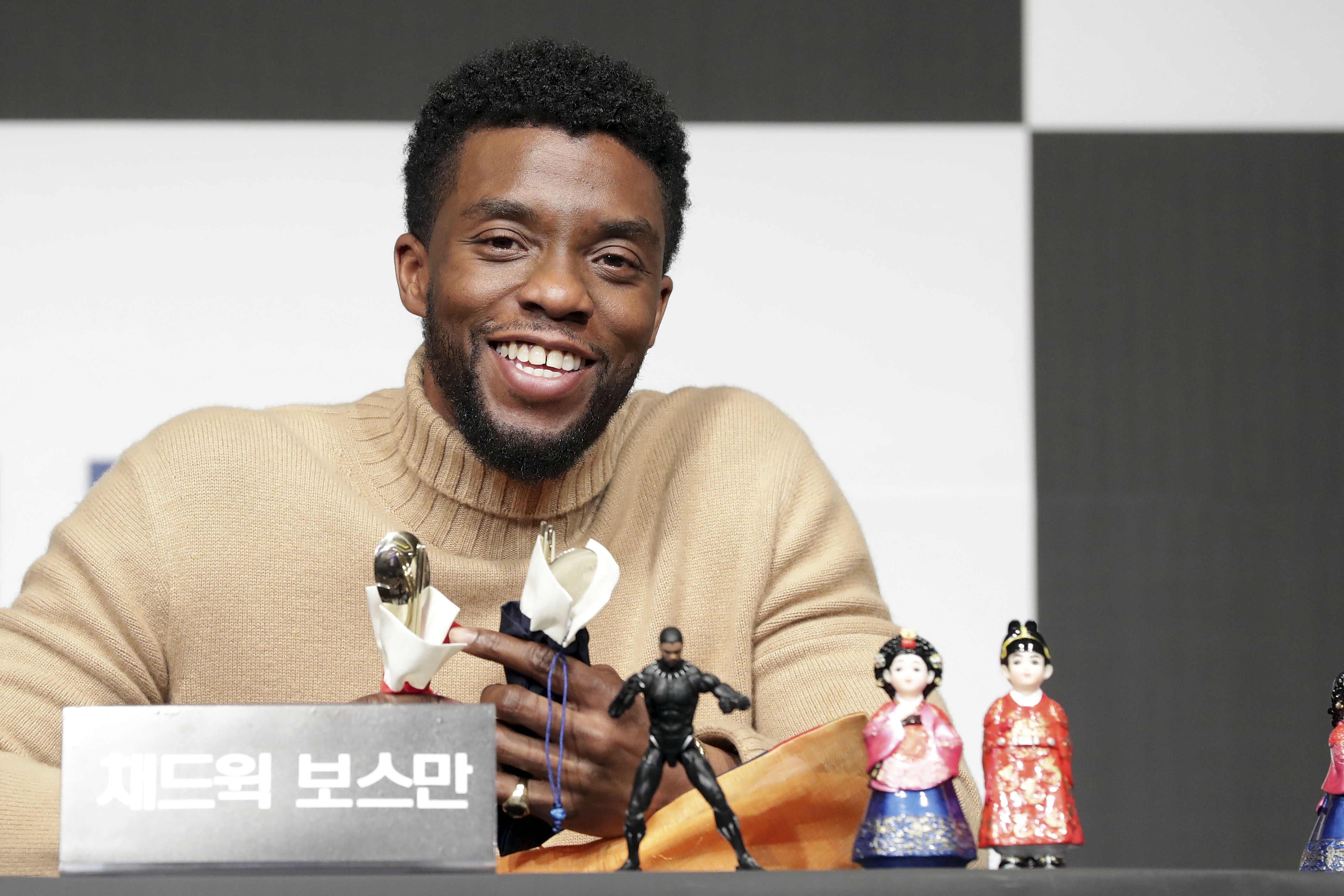 SEOUL, SOUTH KOREA – FEBRUARY 05: Actor Chadwick Boseman attends the press conference for the Seoul premiere of ‘Black Panther’ on February 5, 2018 in Seoul, South Korea. (Photo by Han Myung-Gu/Getty Images for Disney) *** Local Caption *** Chadwick Boseman