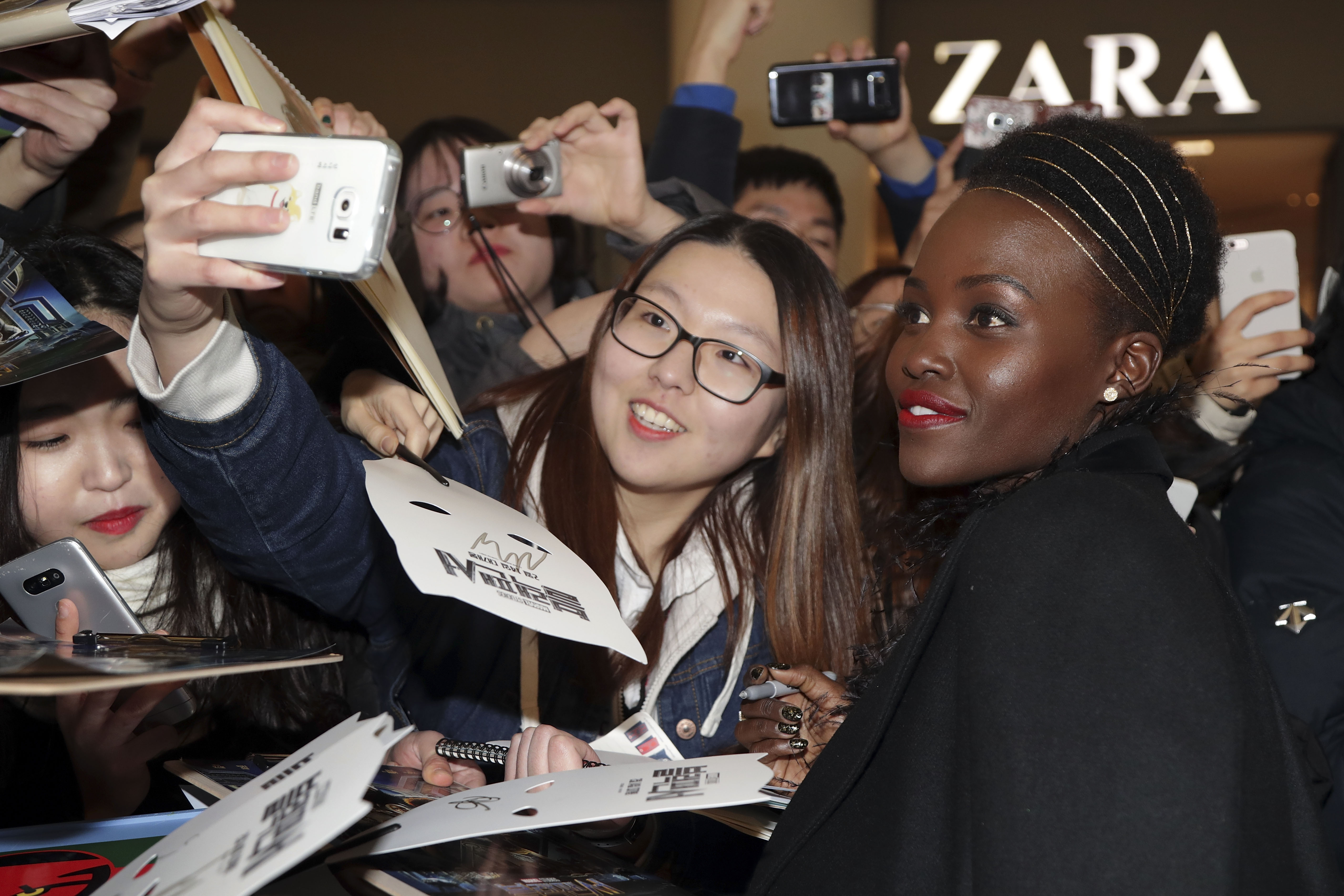 SEOUL, SOUTH KOREA – FEBRUARY 05: Actor Lupita Nyong’o attends the press conference for the Seoul premiere of ‘Black Panther’ on February 5, 2018 in Seoul, South Korea. (Photo by Han Myung-Gu/Getty Images for Disney) *** Local Caption *** Lupita Nyong’o