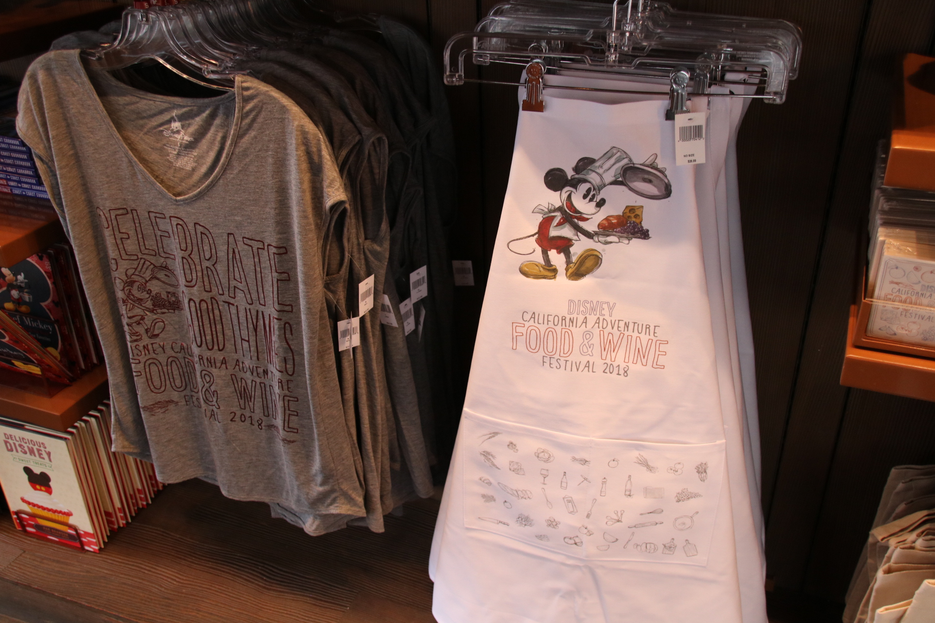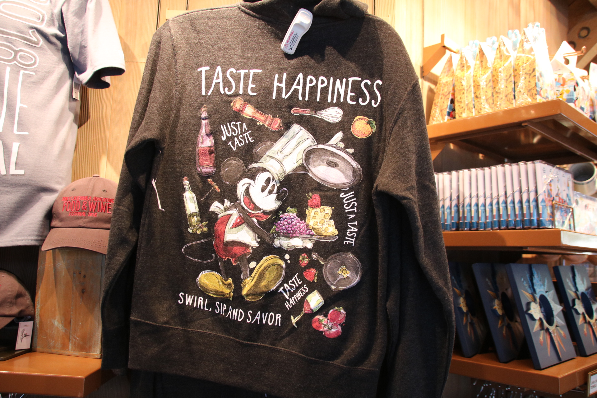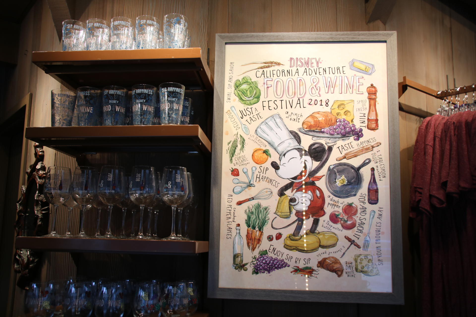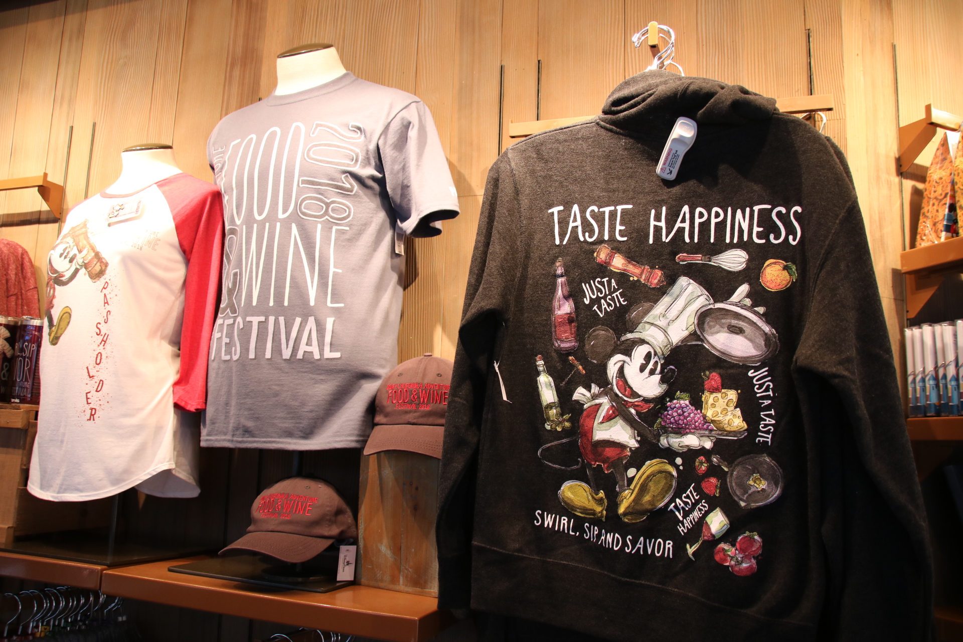 Yesterday was the start of this year’s Disney California Adventure Food and Wine Festival, and earlier this week, I brought you a guide for all you need to know before you go. Now, I bring you all of the merchandise that is available, including Passholder items. I absolutely adore the design that features Chef Mickey in a classic fashion. Of course, there are a number of home good items and clothing , along with a handful of accessories. The Passholder items are limited to just a couple of shirts, and a pin. The Sip and Savor pass has also returned, and for $45, Passholders can purchase the lanyard that is good for 8 food and beverage (non-alcoholic). Must show pass at time of purchase and when redeeming food.