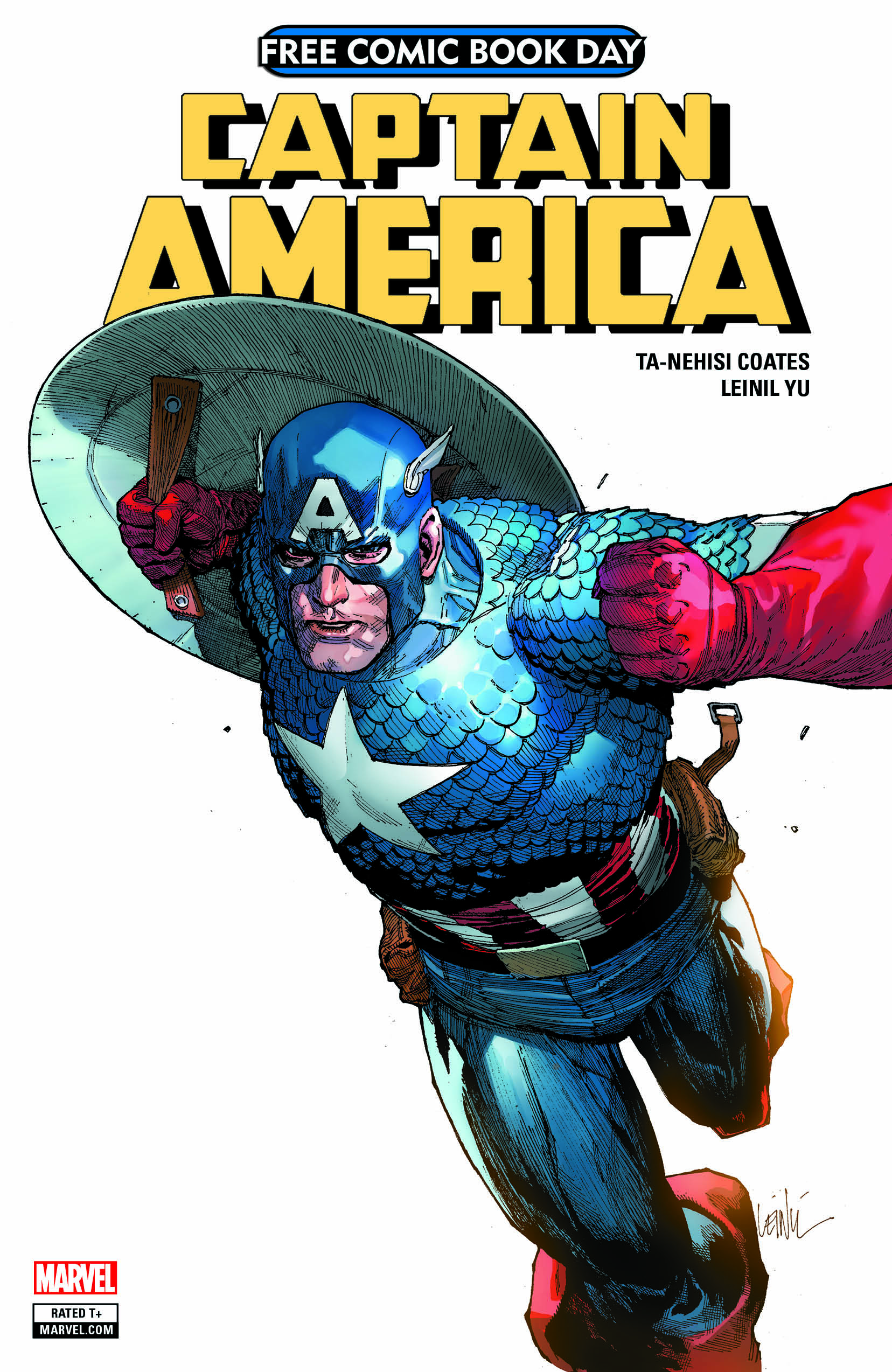 Fans will be able to read the first Captain America story from Ta-Nehisi Coates and Leinil Yu in the Avengers/Captain America Free Comic Book Day issue, on sale May 5th – and can view the back cover art of the issue by Leinil Yu for the first time now!