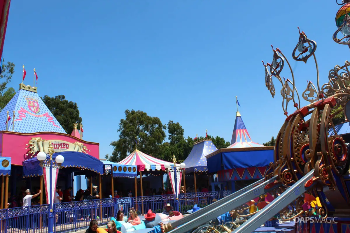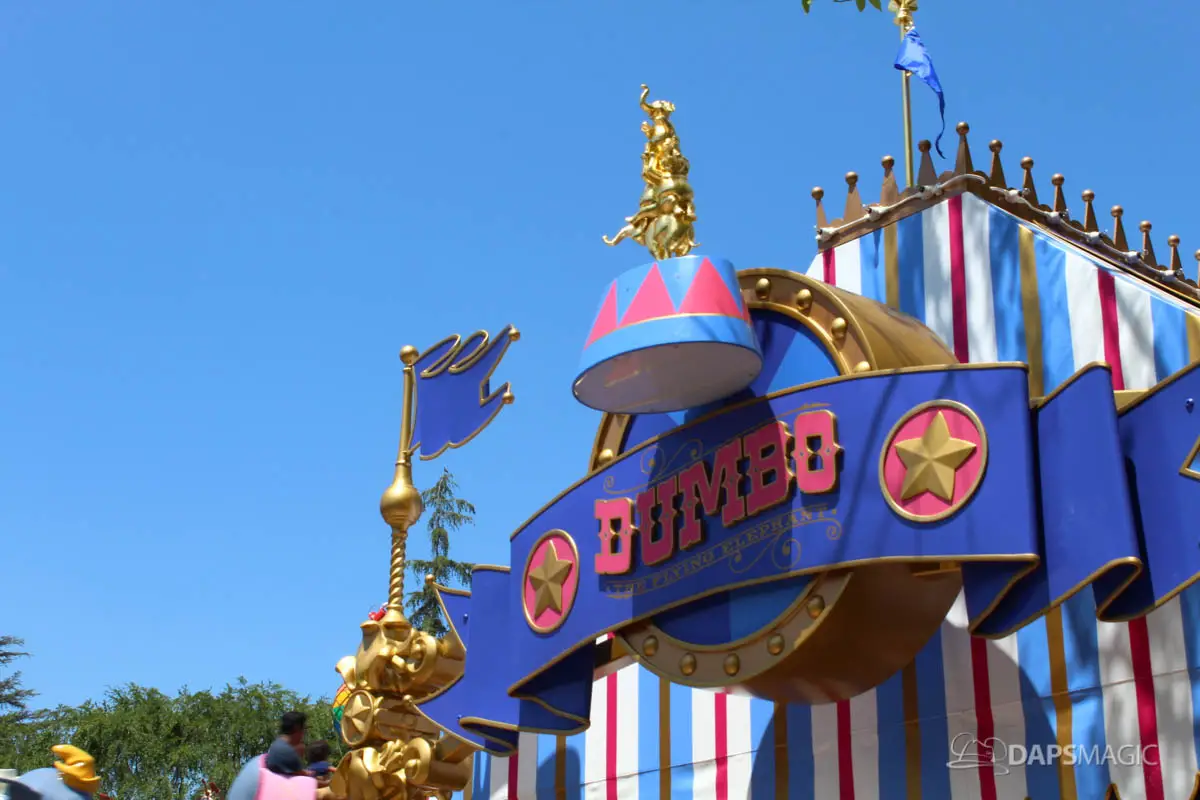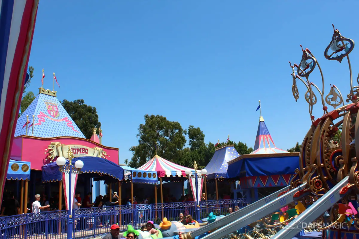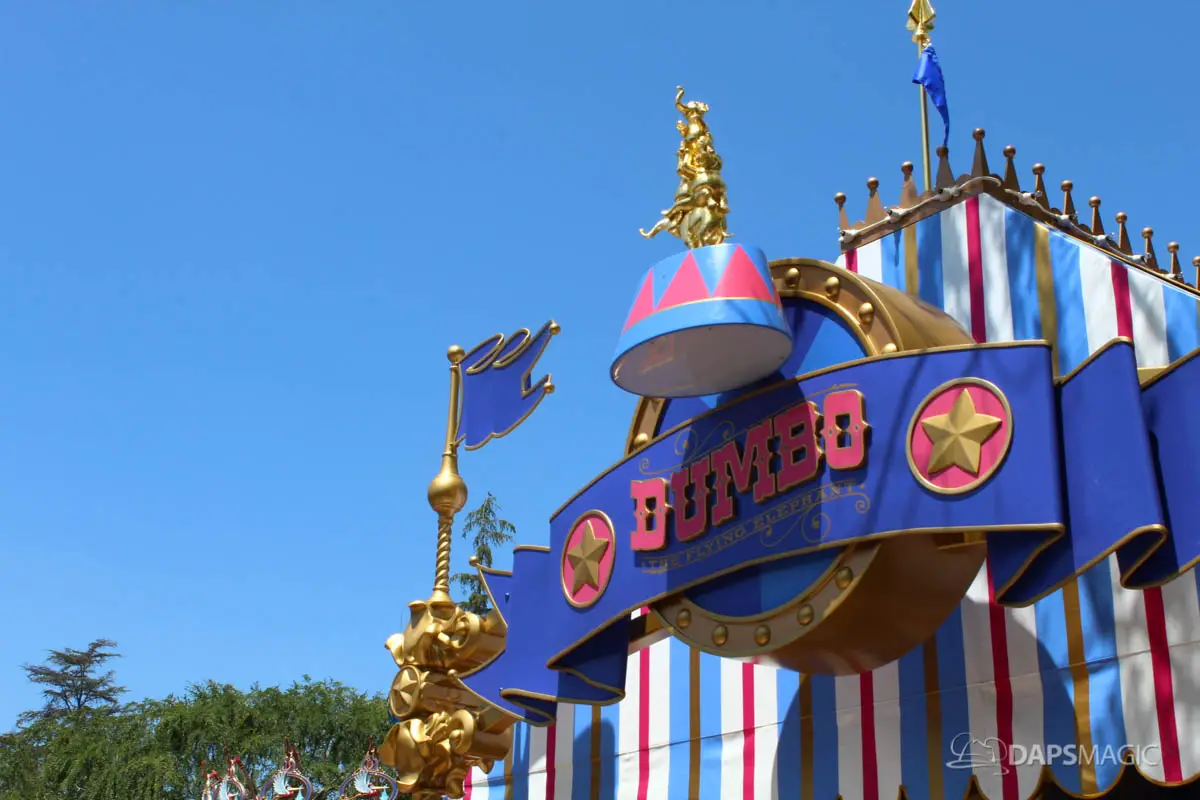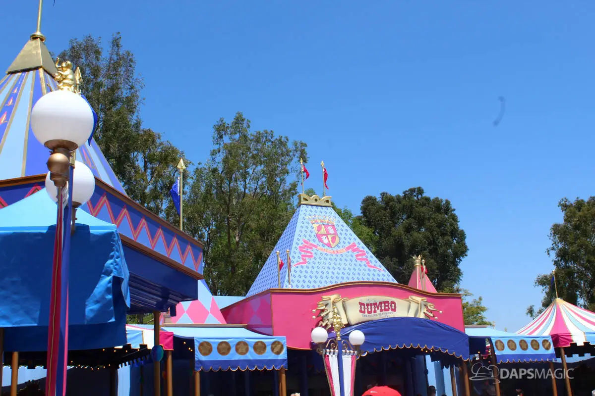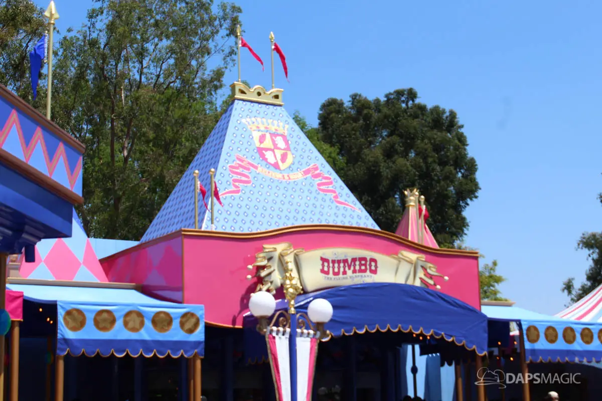 Dumbo the Flying Elephant is an iconic attraction at the Disneyland Resort that is a favorite for kids and the kids at heart. It has been closed this spring though for an update to its queue. Today, it reopened. The new entrance to this attraction is shaded and evokes the feeling of Dumbo’s circus. DAPS MAGIC correspondent Caitie was in the park and was able to catch some photos of the new entrance to this beloved attraction. Take a look at the photos below. Then let us know what you thought of them in the comments!