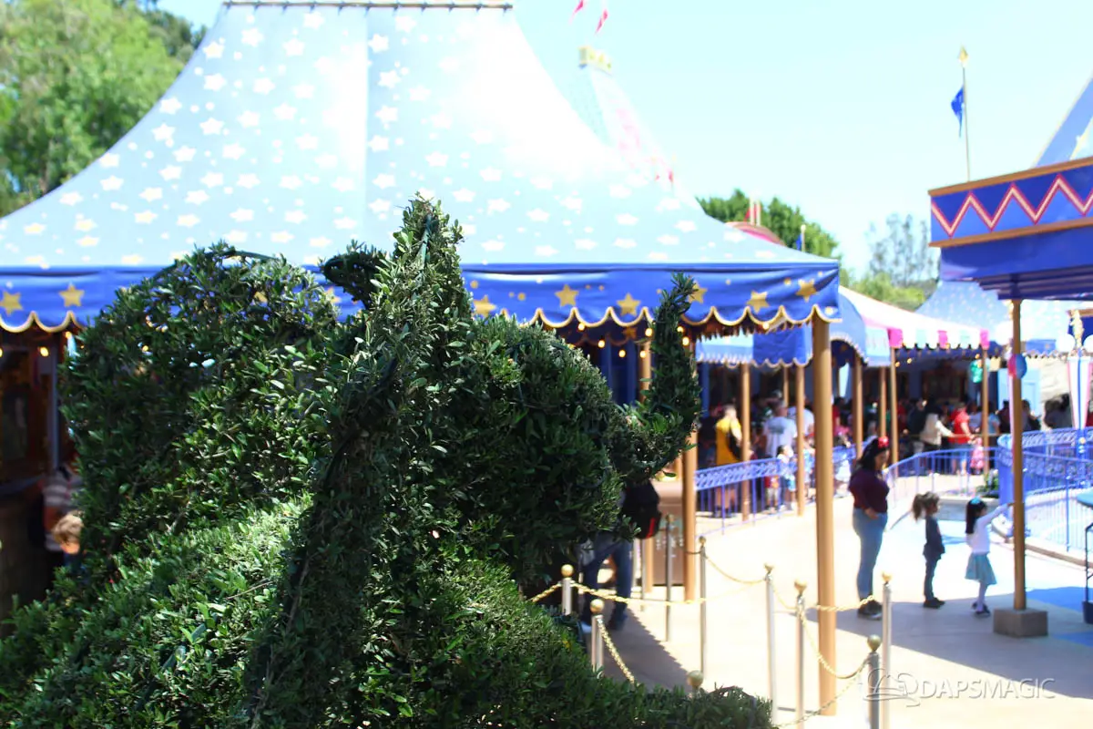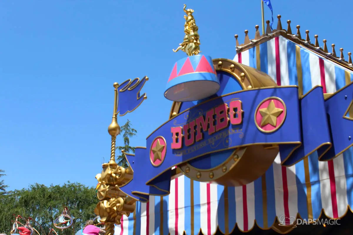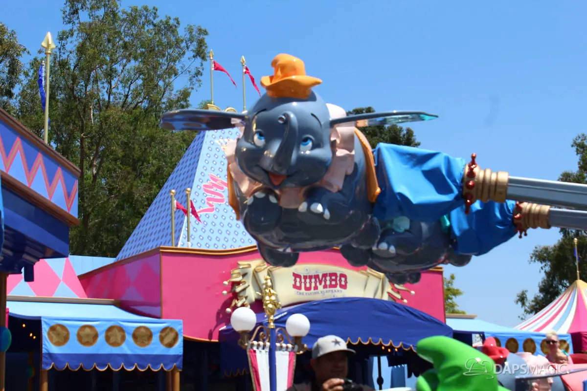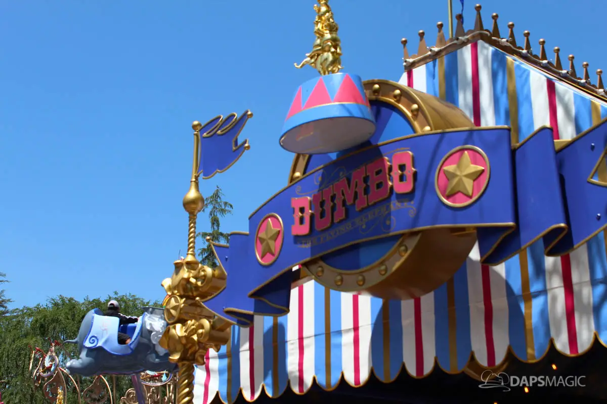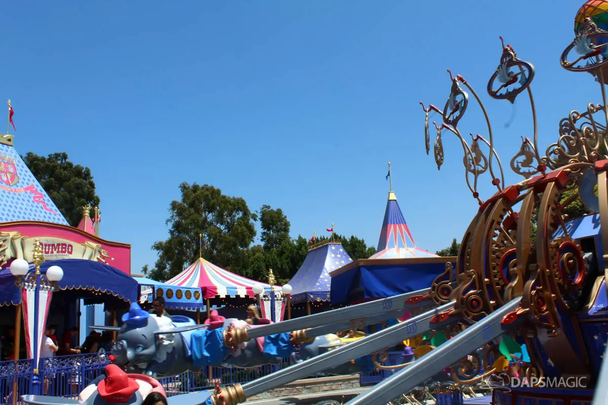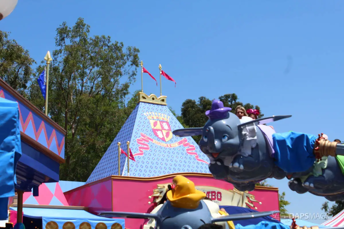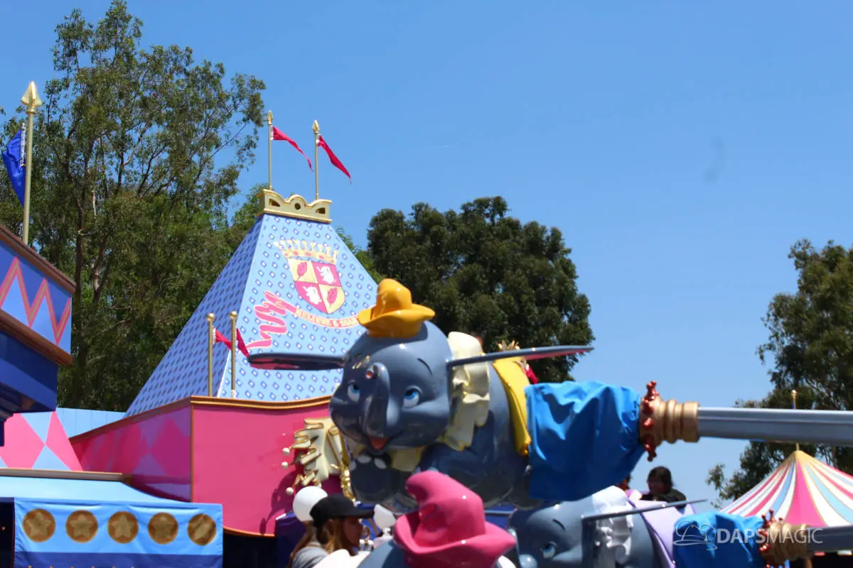 Dumbo the Flying Elephant is an iconic attraction at the Disneyland Resort that is a favorite for kids and the kids at heart. It has been closed this spring though for an update to its queue. Today, it reopened. The new entrance to this attraction is shaded and evokes the feeling of Dumbo’s circus. DAPS MAGIC correspondent Caitie was in the park and was able to catch some photos of the new entrance to this beloved attraction. Take a look at the photos below. Then let us know what you thought of them in the comments!