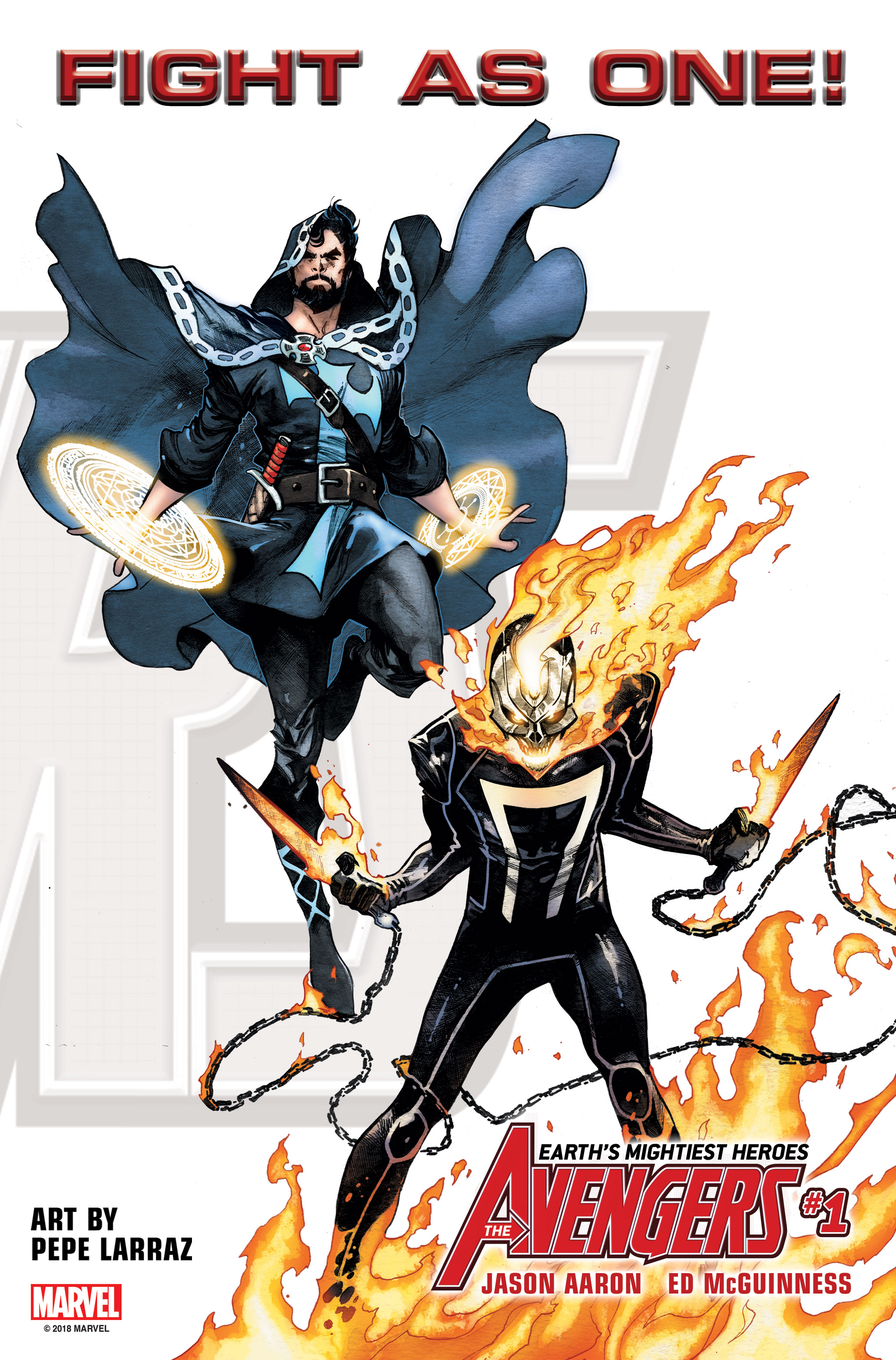 AVENGERS #1 will reunite the powerful Big Three, with Thor, Captain America, and Iron Man joining Captain Marvel, Black Panther, Ghost Rider (Robbie Reyes), Hulk (Jennifer Walters) and Doctor Strange as they fight as one to save the world from one of their most powerful enemies yet.