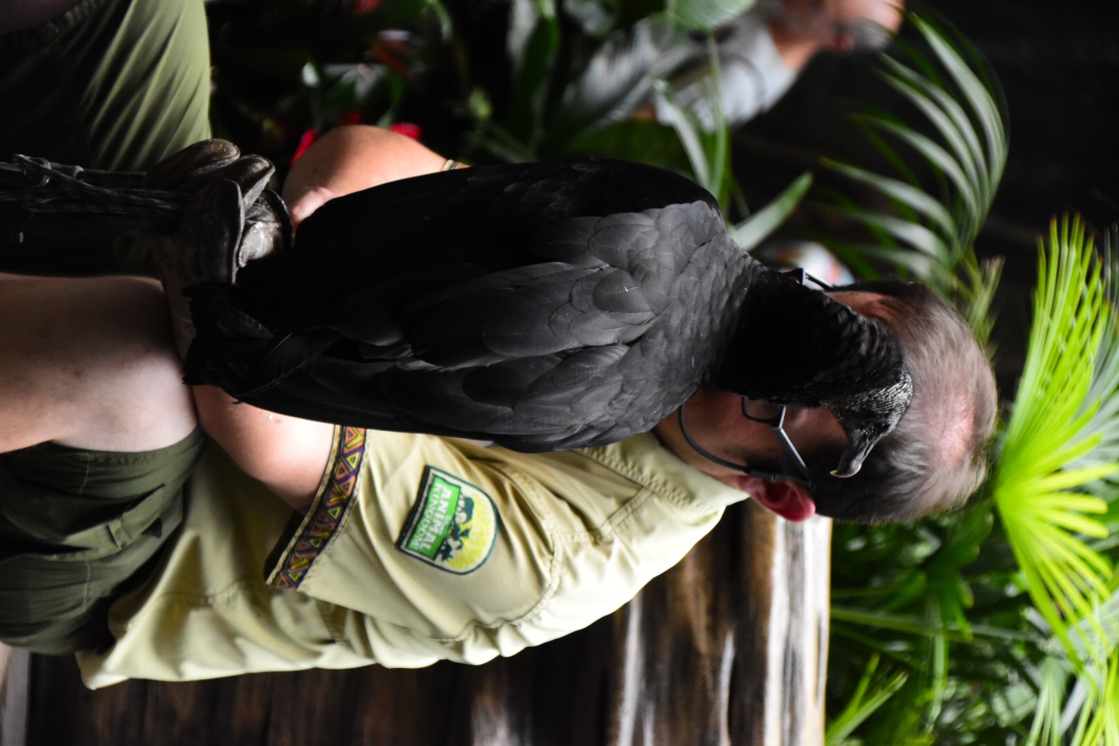 The show had a lot of birds to constantly fill the theater. One interactive part of the show had audience members form a “tree branch” tunnel and have a bird fly through at great speed. For those remembering the former bird show in the same place, Frasier the Crane and Hope the Bald Eagle are still in the show.