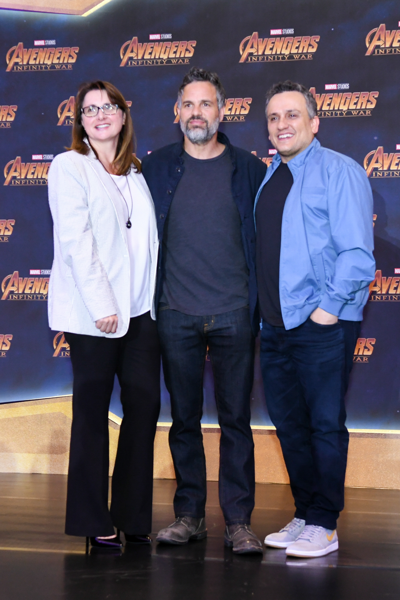 Joe Russo (Director), Mark Ruffalo (Bruce Banner/Hulk) and Victoria Alonso (Executive Producer) attend the Avengers: Infinity War fan event in Mexico City.