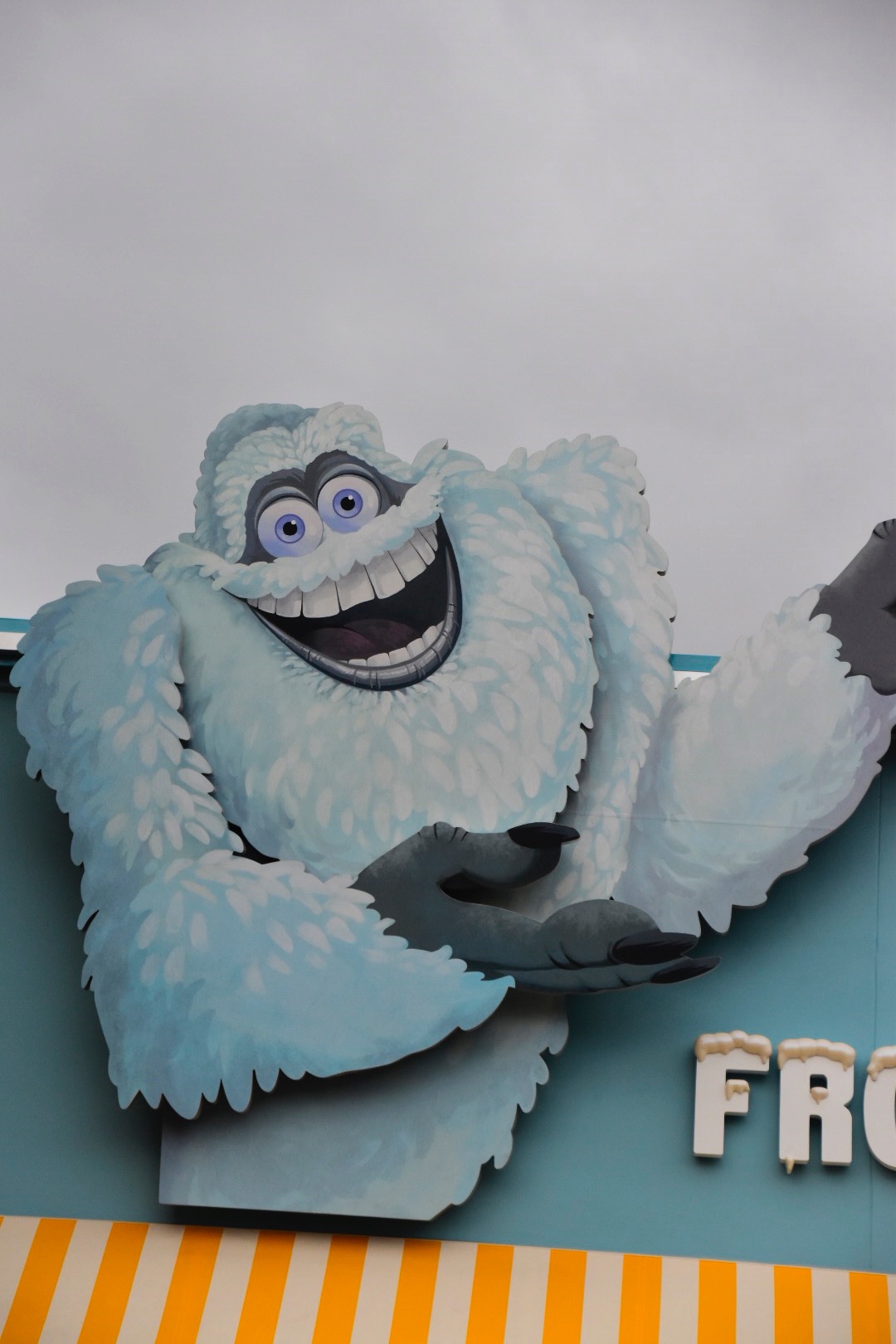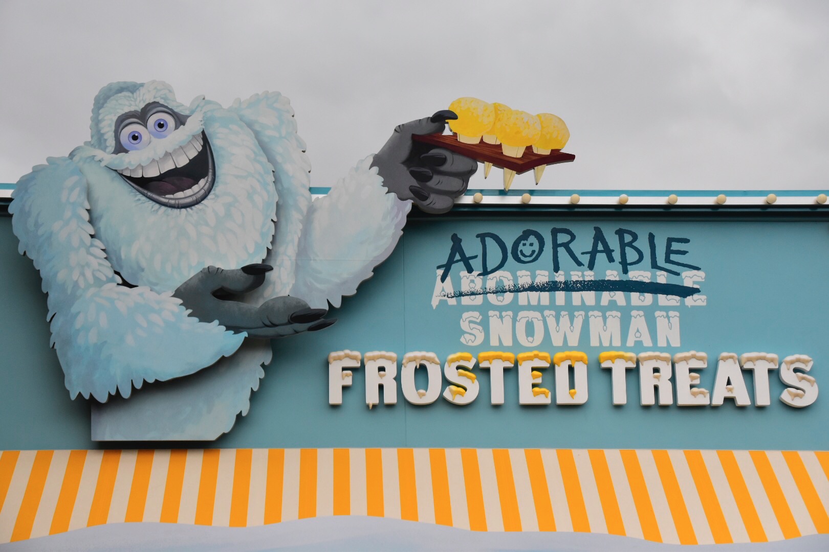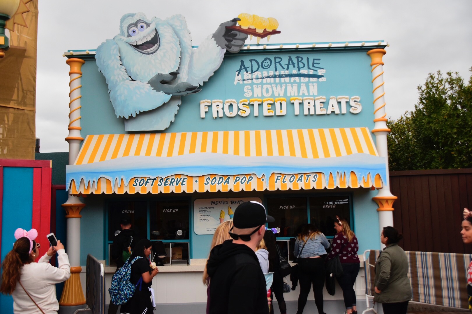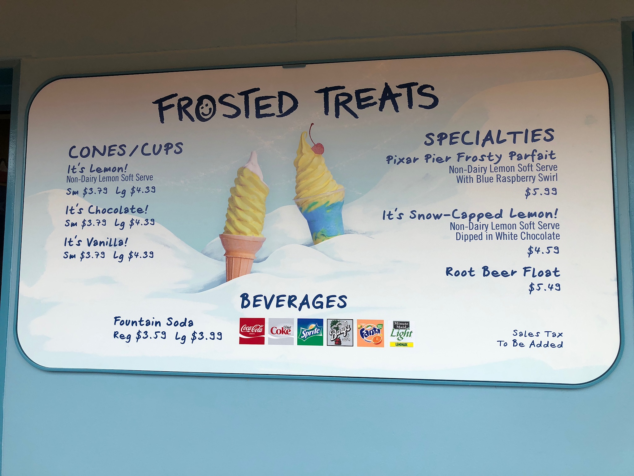 Yesterday, one of the first new food locations of Pixar Pier opened, and it already seems to be a guest favorite! Adorable Snowman Frosted Treats is a re-theme of the former Paradise Pier Ice Cream Co., and features one of the most beloved characters of Monster’s Inc. There’s one flavor that absolutely had to be featured on the menu was lemon, as the Snowman was famous for his lemon snow cones. A lemon non-dairy soft serve similar to the Dole Whip is offered, and fittingly called: “It’s Lemon!” A few other soft serve treats are offered, as well as a Root Beer Float and soft drinks. DAPS Magic correspondent Murray was in the parks to snap some photos and try a couple of the treats offered!