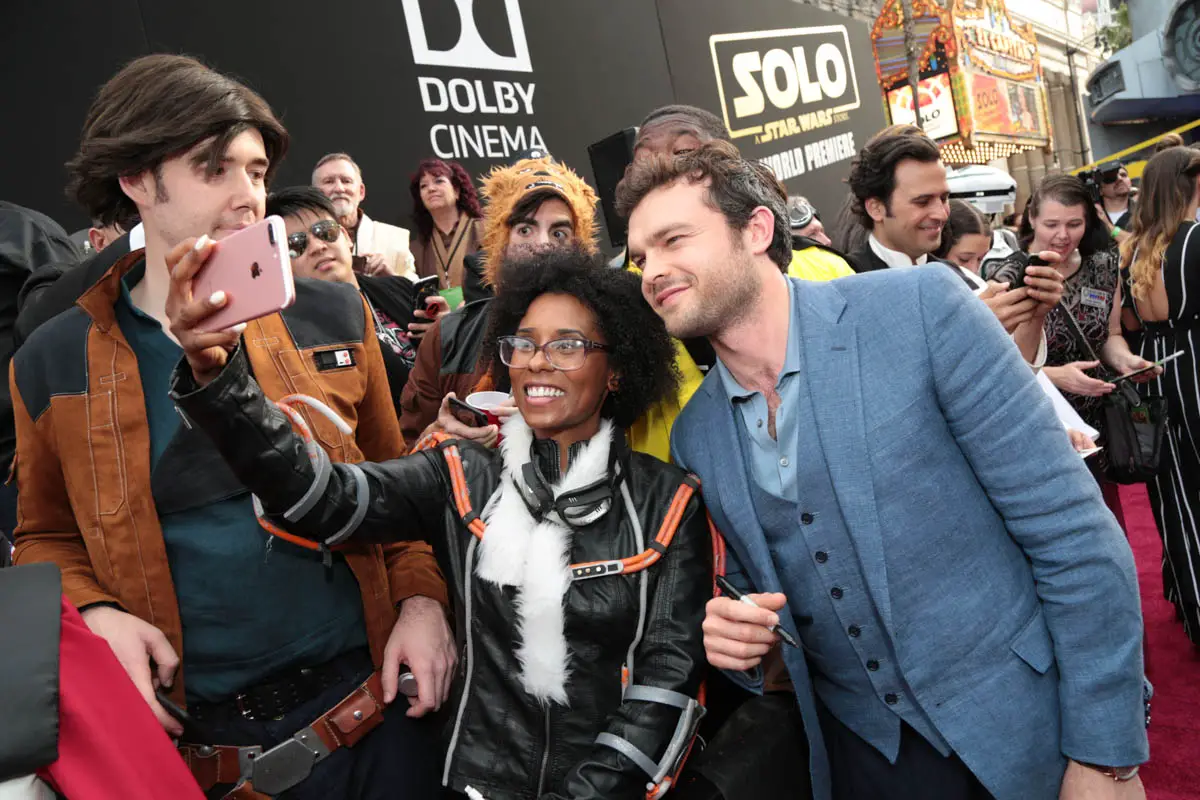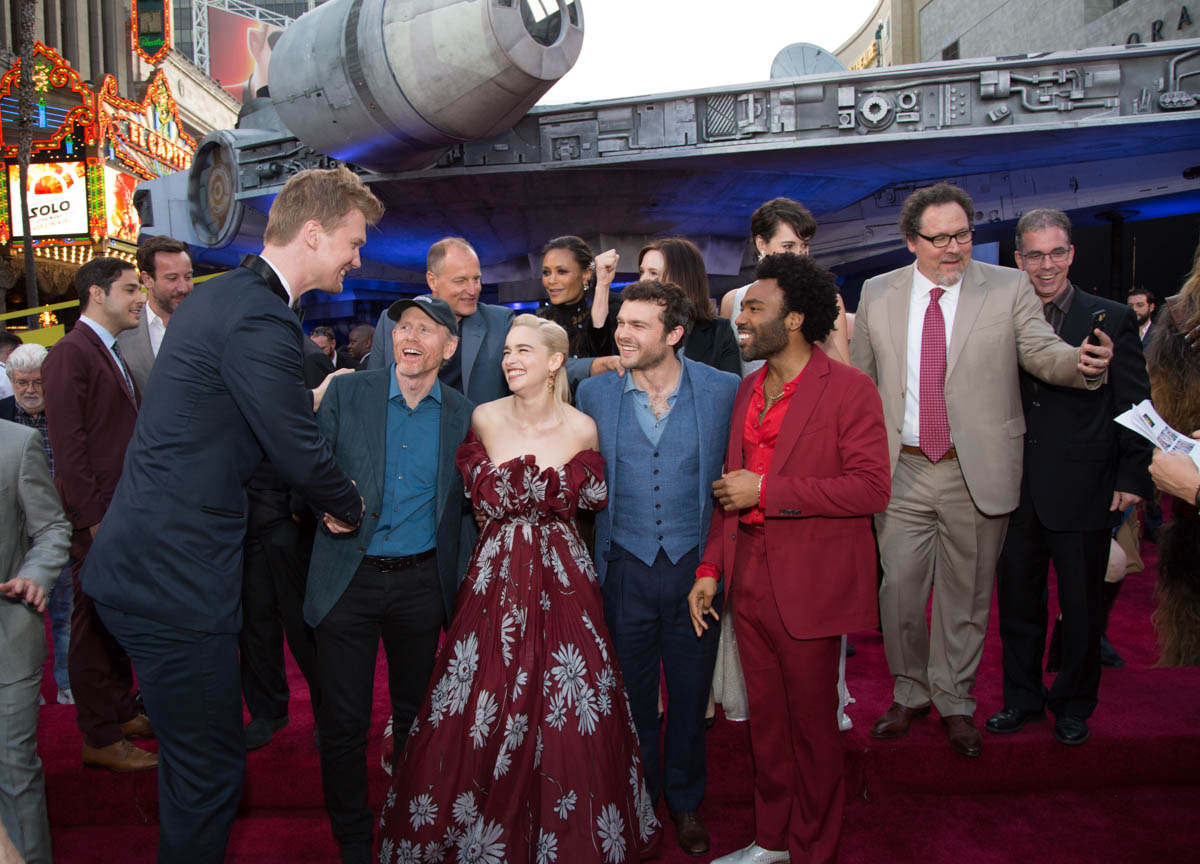 Stars, cast, and crew from the Star Wars galaxy descended on Hollywood this week for the world premiere of Solo: A Star Wars Story. The premiere also found the arrival of the Millennium Falcon in Hollywood. Stars Alden Ehrenreich, Woody Harrelson, Emilia Clarke, Donald Glover, Thandie Newton, Paul Bettany, Phoebe Waller-Bridge and Joonas Suotamo were joined by director Ron Howard and producers Kathleen Kennedy and Simon Emanuel for this very special night. They were joined by other celebrities and dignitaries connected with a galaxy far, far away.