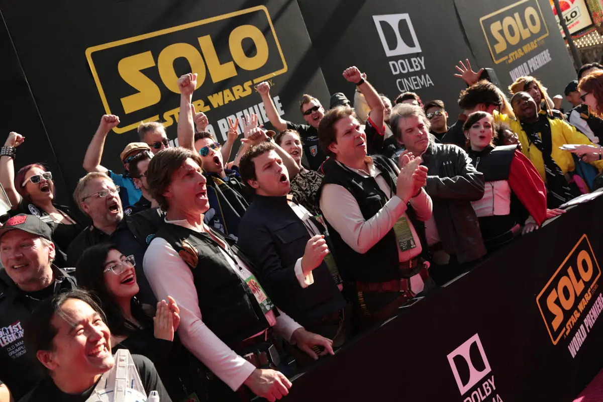 Fans get excited for the world premiere of “Solo: A Star Wars Story” in Hollywood on May 10, 2018.