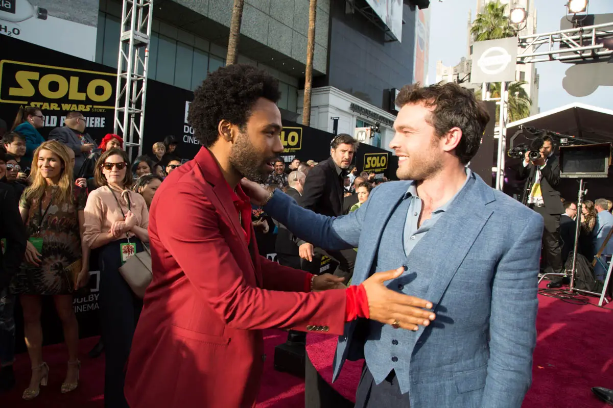 HOLLYWOOD, CA – MAY 10: Actor Donald Glover (R) attends the world premiere of ìSolo: A Star Wars Storyî in Hollywood on May 10, 2018. (Photo by Charley Gallay/Getty Images for Disney) *** Local Caption *** Donald Glover