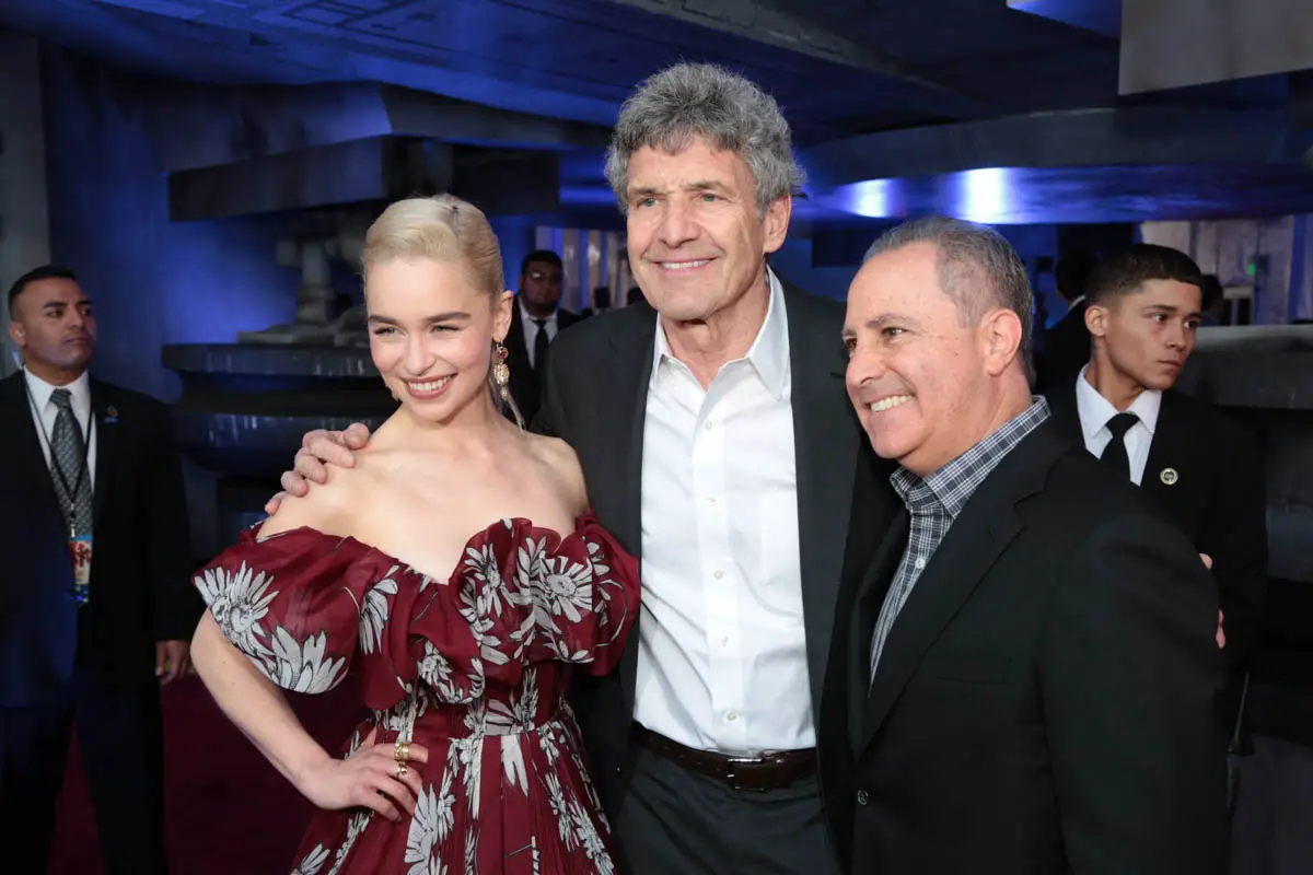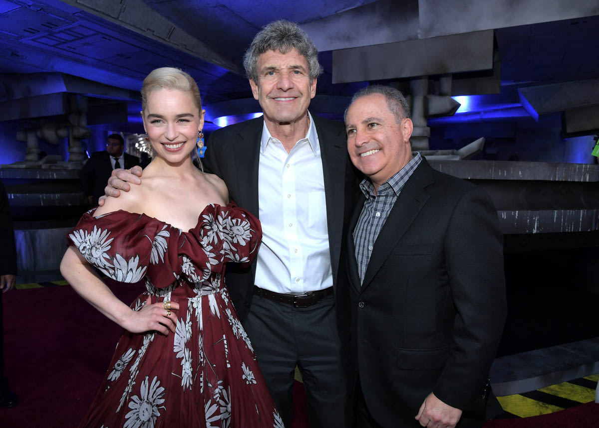 HOLLYWOOD, CA – MAY 10: (L-R) Actor Emilia Clarke, Chairman, The Walt Disney Studios, Alan Horn, and Walt Disney Studios President Alan Bergman attend the world premiere of ìSolo: A Star Wars Storyî in Hollywood on May 10, 2018. (Photo by Charley Gallay/Getty Images for Disney) *** Local Caption *** Alan Horn; Emilia Clarke; Alan Bergman