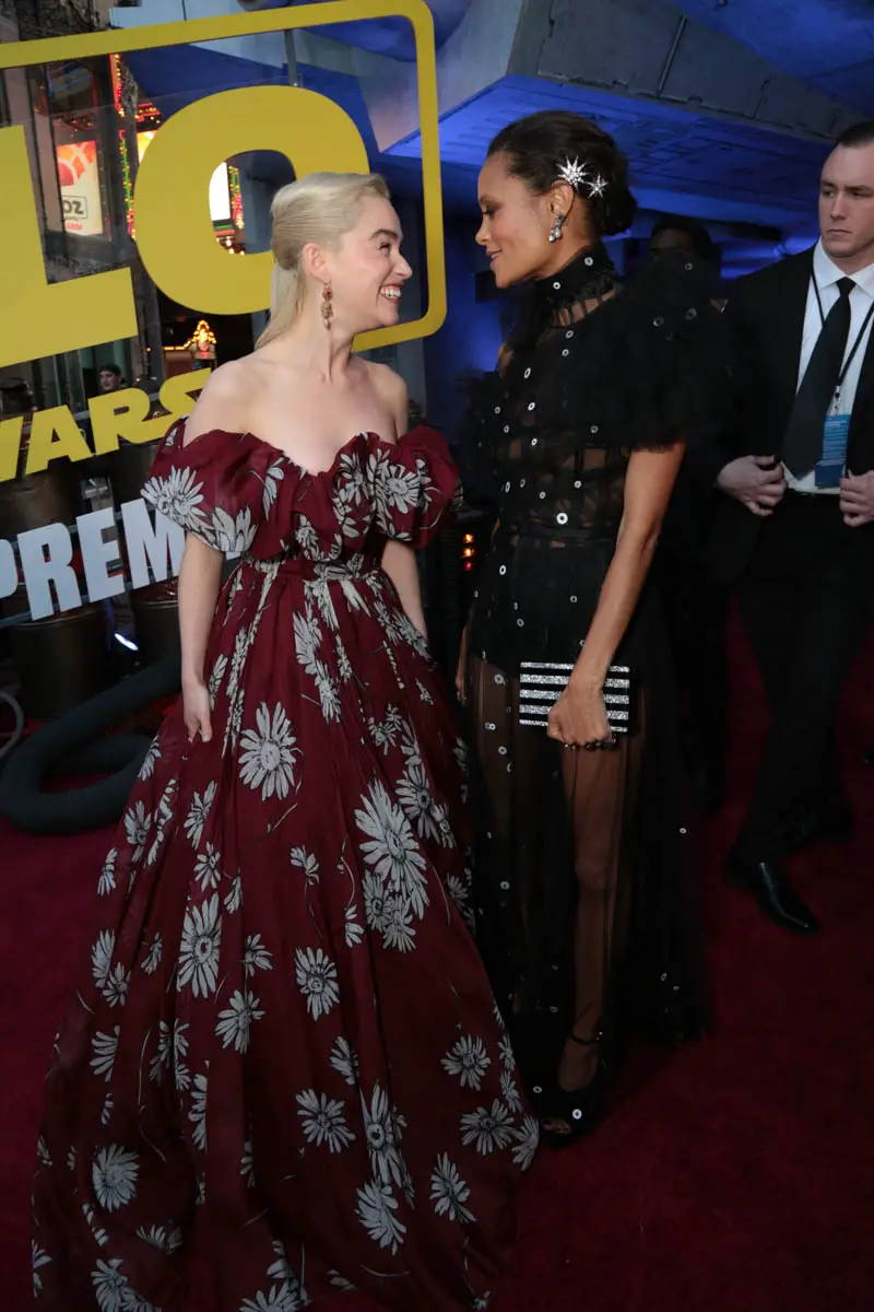 Emilia Clarke and Thandie Newton attend the world premiere of “Solo: A Star Wars Story” in Hollywood on May 10, 2018.