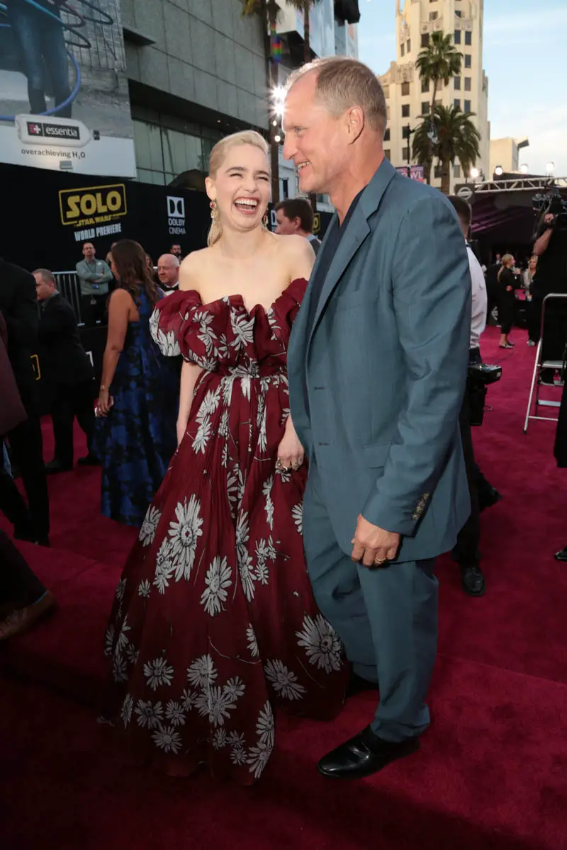 Emilia Clarke and Woody Harrelson attend the world premiere of “Solo: A Star Wars Story” in Hollywood on May 10, 2018.