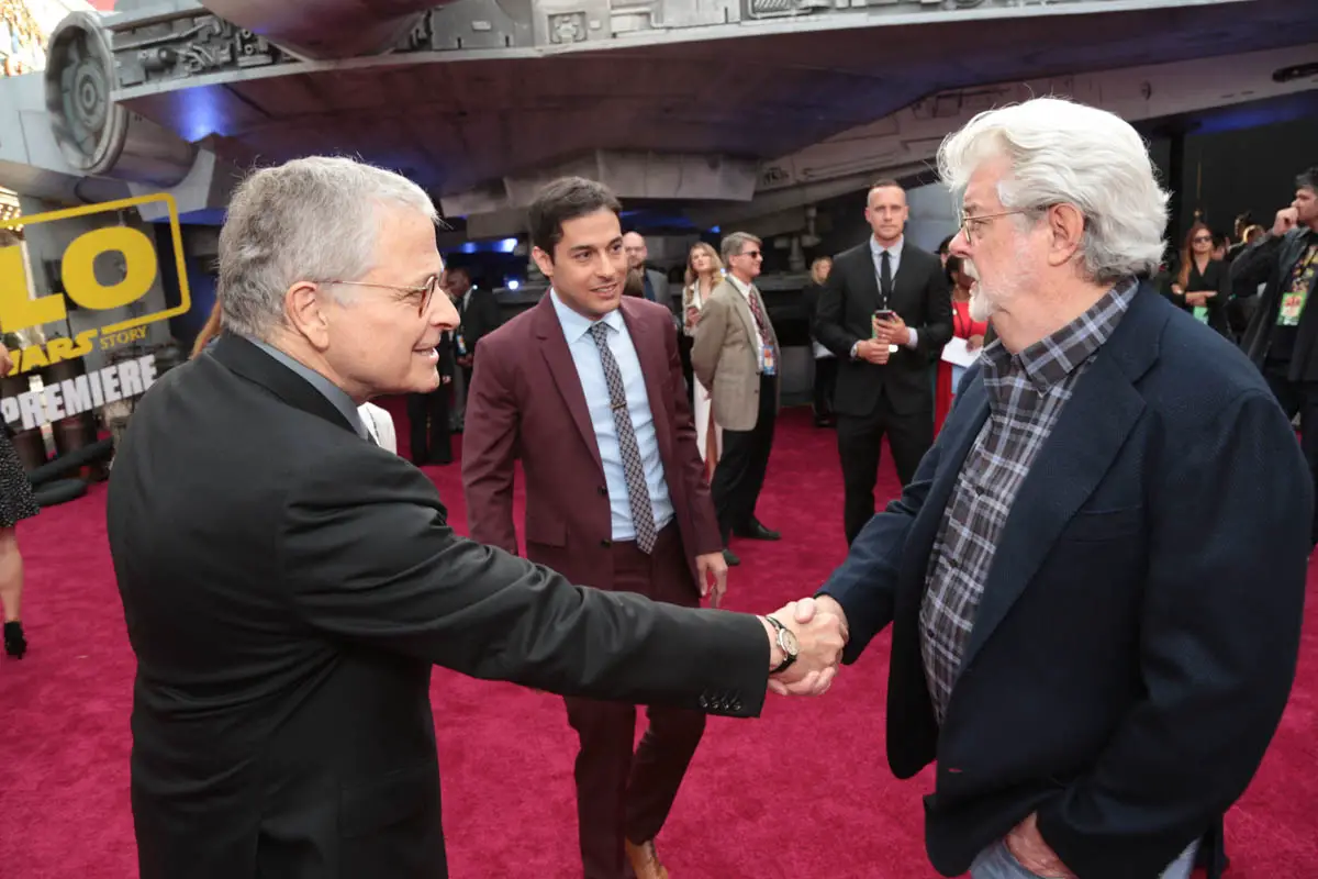 HOLLYWOOD, CA – MAY 10: Chairman, The Walt Disney Studios, Alan Horn (L) and George Lucas attend the world premiere of ìSolo: A Star Wars Storyî in Hollywood on May 10, 2018. (Photo by Alberto E. Rodriguez/Getty Images for Disney) *** Local Caption *** Alan Horn; George Lucas