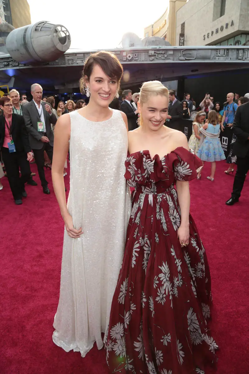 HOLLYWOOD, CA – MAY 10: (EDITORS NOTE: Image has been shot in black and white. Color version not available.) Actors Phoebe Waller-Bridge (L) and Emilia Clarke attend the world premiere of ìSolo: A Star Wars Storyî in Hollywood on May 10, 2018. (Photo by Charley Gallay/Getty Images for Disney) *** Local Caption *** Emilia Clarke; Phoebe Waller-Bridge