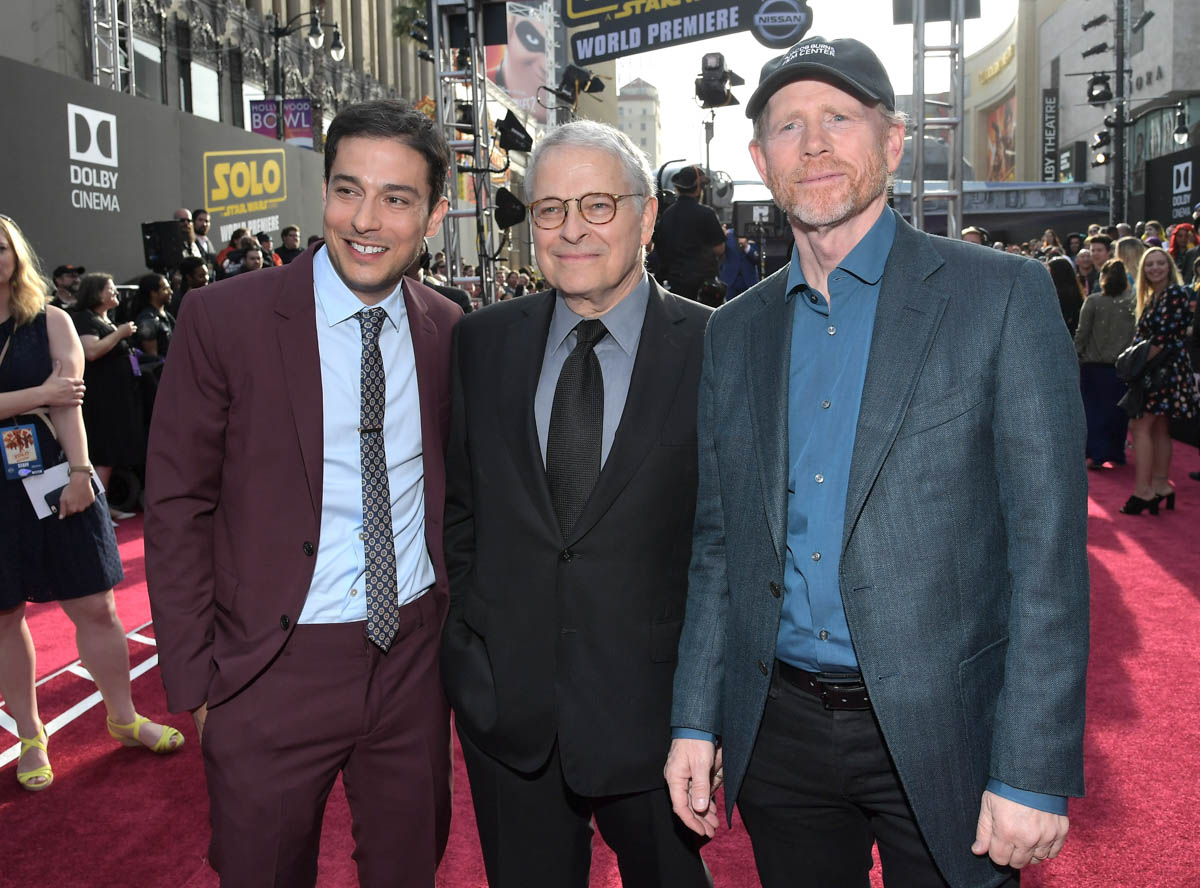 HOLLYWOOD, CA – MAY 10: (L-R) Writers Jonathan Kasdan, Lawrence Kasdan, and Director Ron Howard attend the world premiere of ìSolo: A Star Wars Storyî in Hollywood on May 10, 2018. (Photo by Charley Gallay/Getty Images for Disney) *** Local Caption *** Jonathan Kasdan; Lawrence Kasdan; Ron Howard
