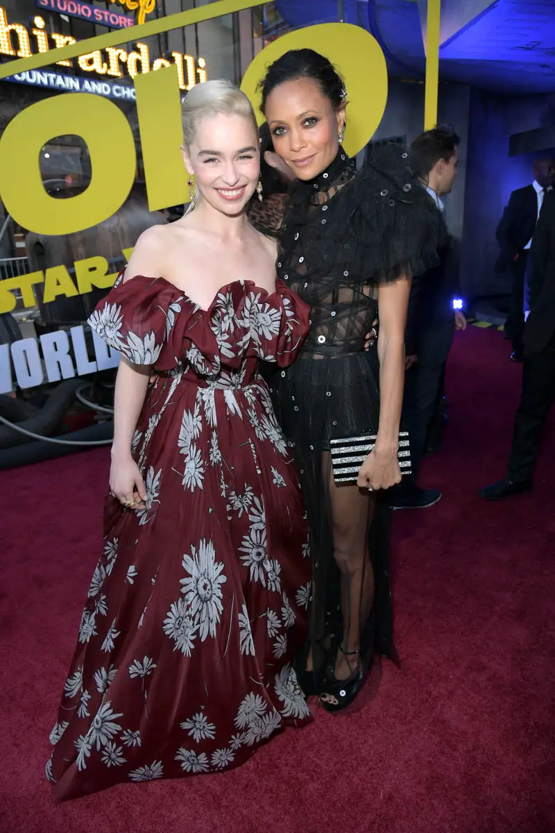 HOLLYWOOD, CA – MAY 10: Actors Emilia Clarke (L) and Thandie Newton attend the world premiere of ìSolo: A Star Wars Storyî in Hollywood on May 10, 2018. (Photo by Charley Gallay/Getty Images for Disney) *** Local Caption *** Emilia Clarke; Thandie Newton