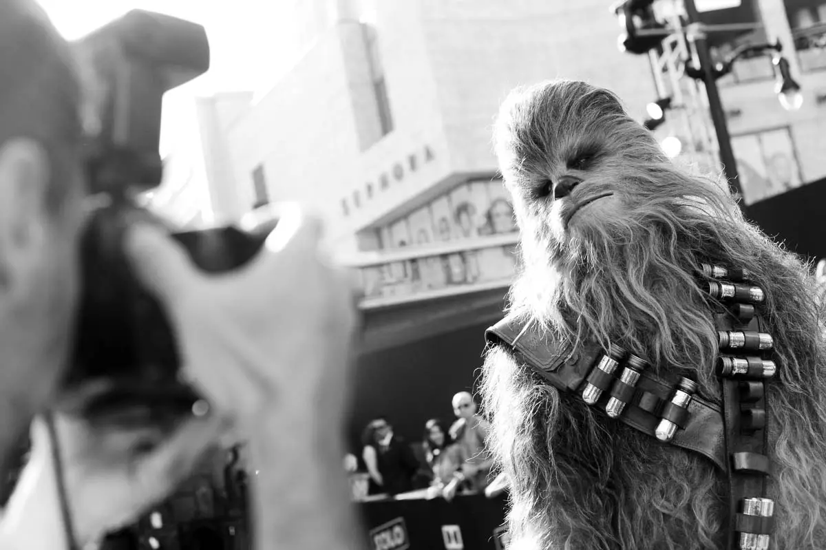 HOLLYWOOD, CA – MAY 10: (EDITORS NOTE: Image has been shot in black and white. Color version not available.) Chewbacca attends the world premiere of ìSolo: A Star Wars Storyî in Hollywood on May 10, 2018. (Photo by Charley Gallay/Getty Images for Disney)