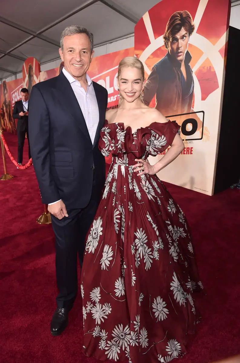 HOLLYWOOD, CA – MAY 10: The Walt Disney Company Chairman and CEO Bob Iger (L) and actor Emilia Clarke attend the world premiere of ìSolo: A Star Wars Storyî in Hollywood on May 10, 2018. (Photo by Alberto E. Rodriguez/Getty Images for Disney) *** Local Caption *** Bob Iger; Emilia Clarke