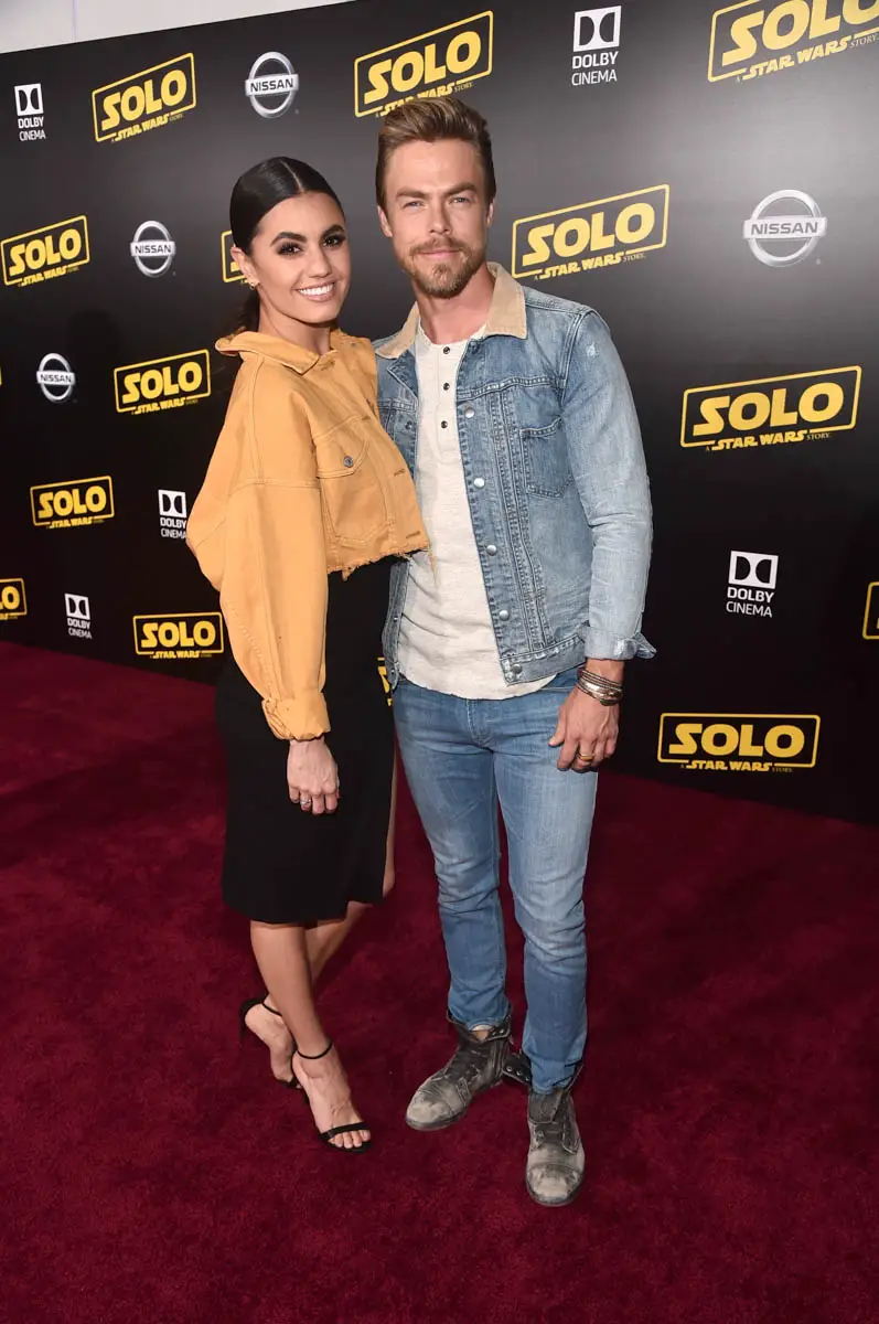 Hayley Erbert and Derek Hough attend the world premiere of “Solo: A Star Wars Story” in Hollywood on May 10, 2018.