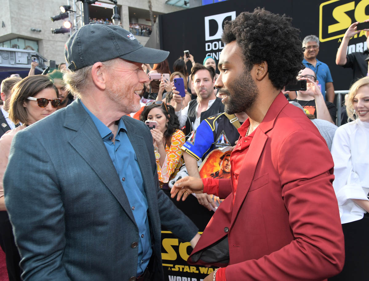 HOLLYWOOD, CA – MAY 10: Director Ron Howard (L) and actor Donald Glover attend the world premiere of ìSolo: A Star Wars Storyî in Hollywood on May 10, 2018. (Photo by Charley Gallay/Getty Images for Disney) *** Local Caption *** Ron Howard; Donald Glover