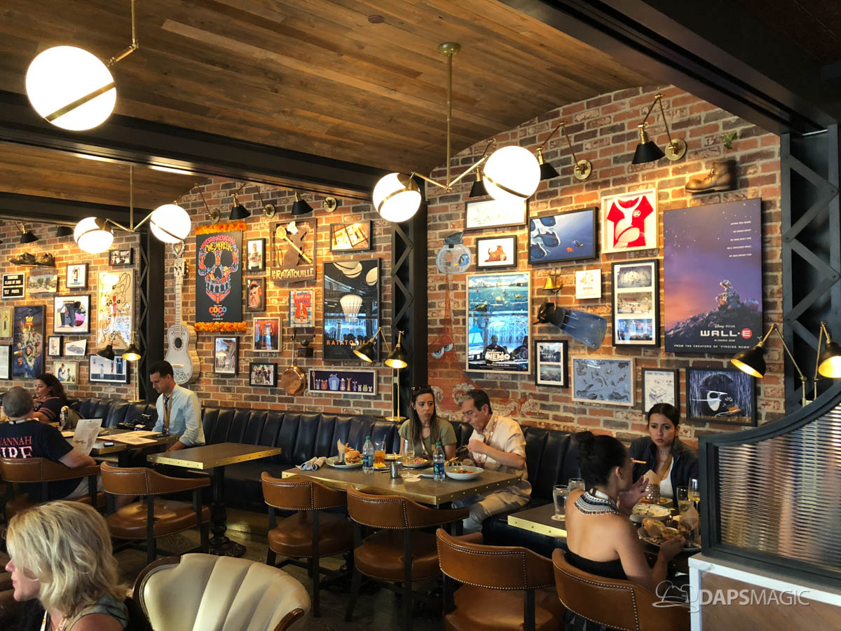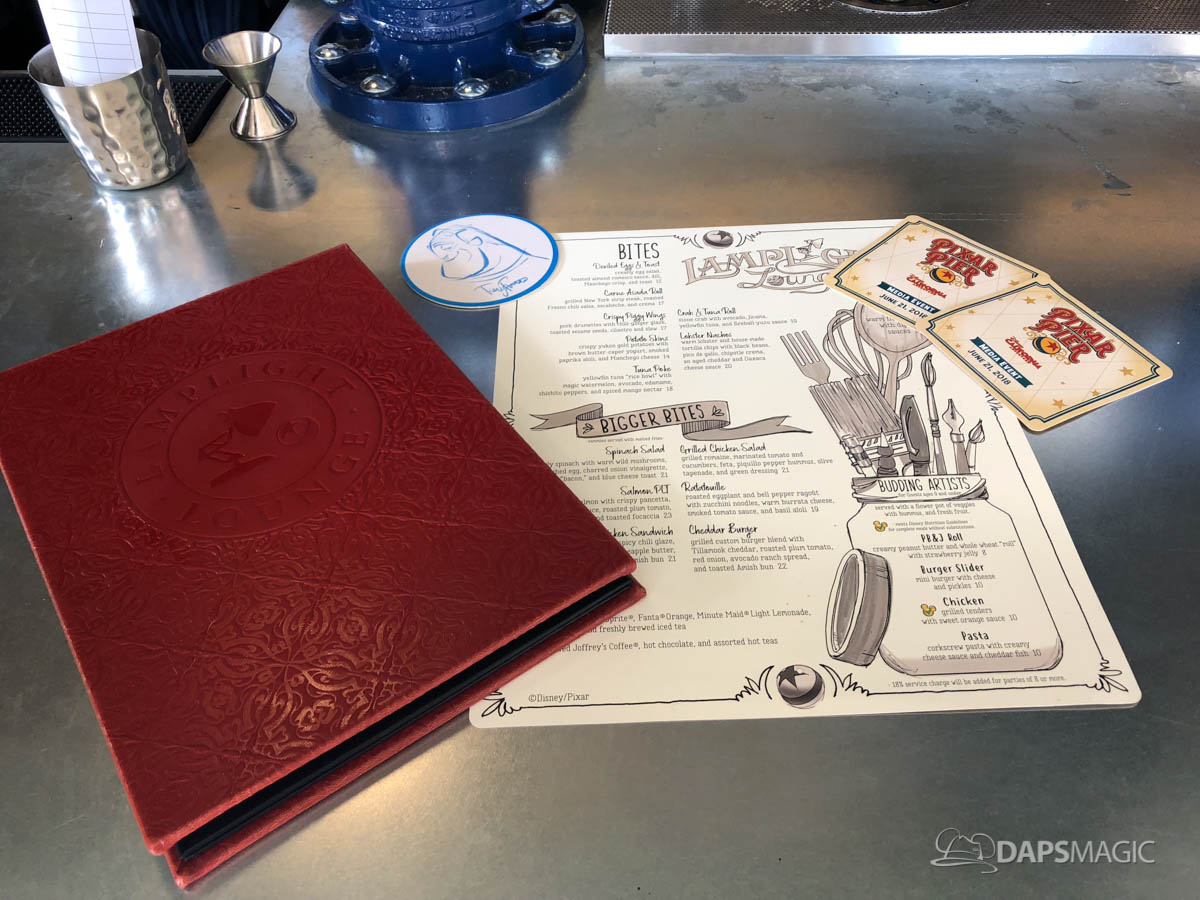 Pixar Pier is now open and so is the Lamplight Lounge. This dining location is sure to be popular with its Pixar themed decor, whimsical drinks, and delicious food. This gastro-pub is a celebration of creativity, inspiration, and personalities of the artists and storytellers who bring our favorite Pixar stories to life.