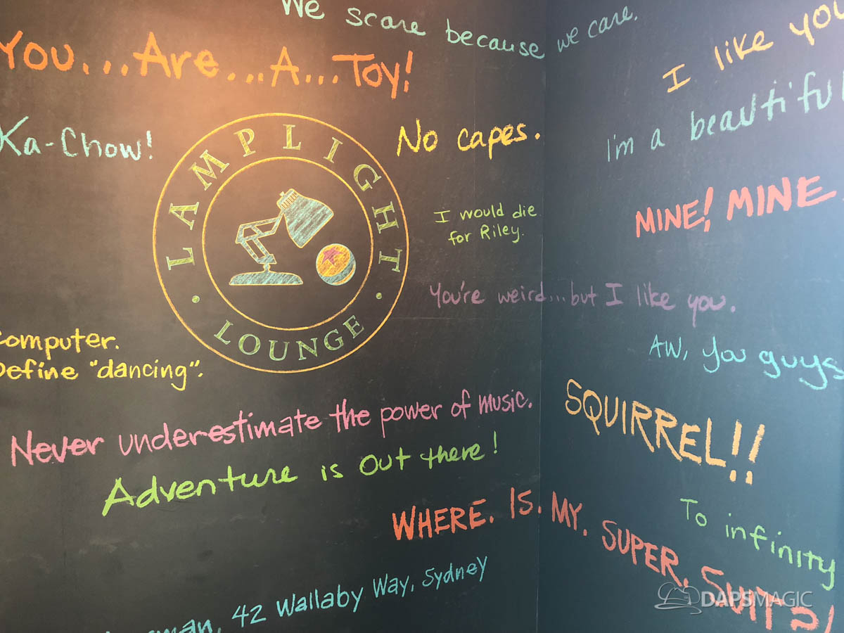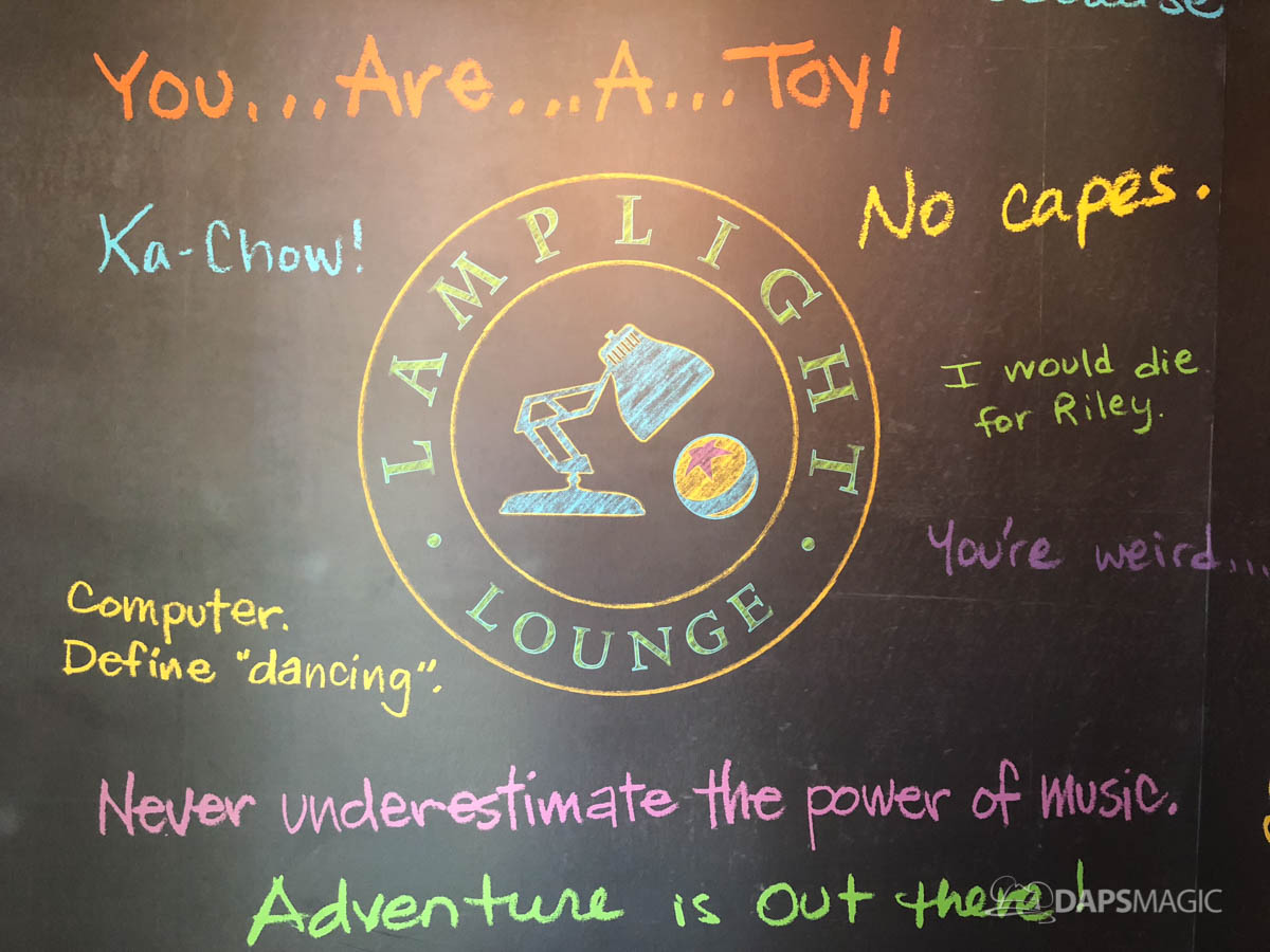 - Pixar employees often share handwritten notes throughout the creative process. Some of these quotes are showcased at Lamplight Lounge. Throughout the restaurant in some fun places, quotes can be found as a tribute to the Pixar storytellers. Some of the quotes can be found on the chandelier in the entryway and also on the walls of the hallways leading to the restrooms. There are several that will be recognizable, inspirational, and sometimes just downright fun.