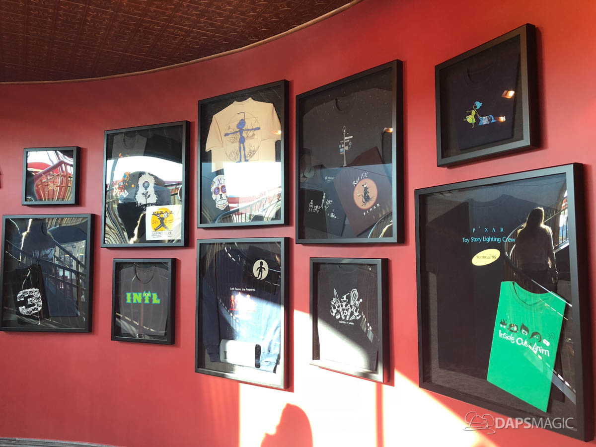 - When films are in production at Pixar, departments create and wear t-shirts to celebrate the film! This Pixar tradition is on display at the Lamplight Lounge on the t-shirt wall. These shirts showcase the process of filmmaking at Pixar and include inside jokes, department’s experiences or influences on films, humorous references, or even a celebrated accomplishment. They also show how the different departments come together to create a Pixar film.