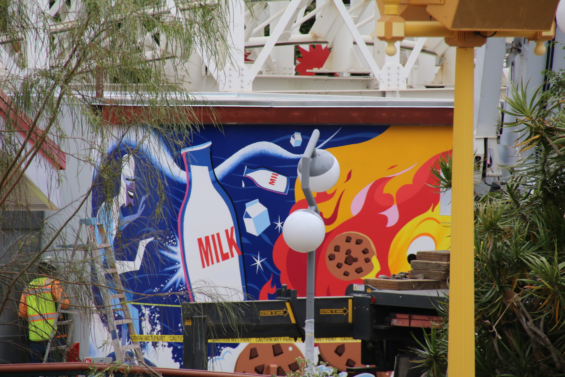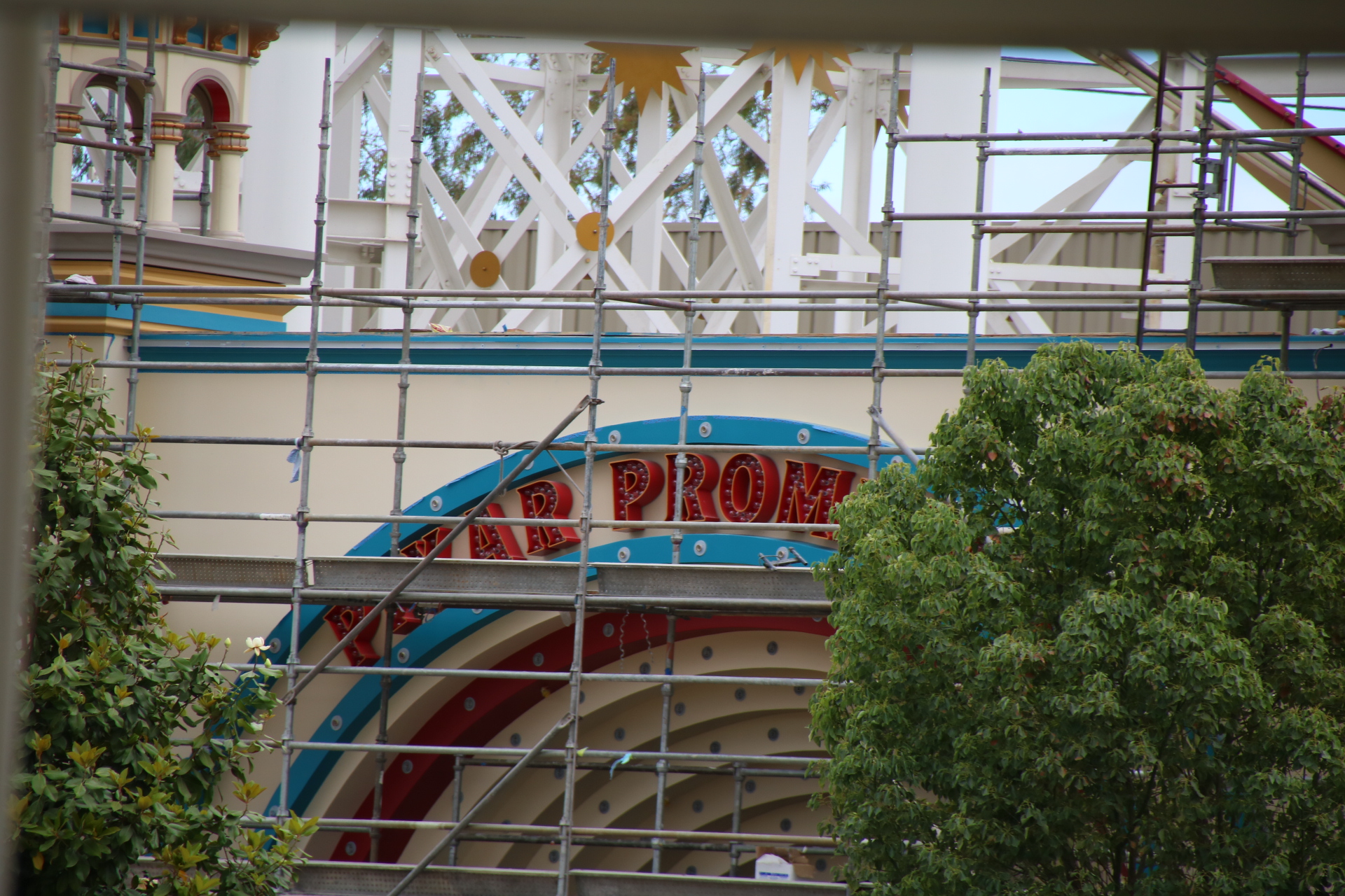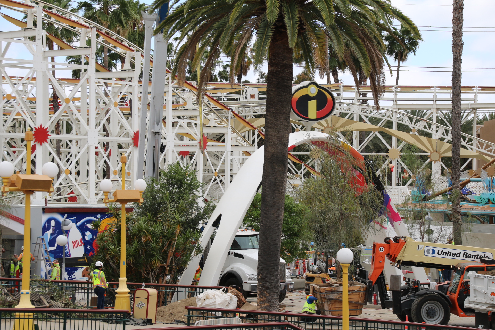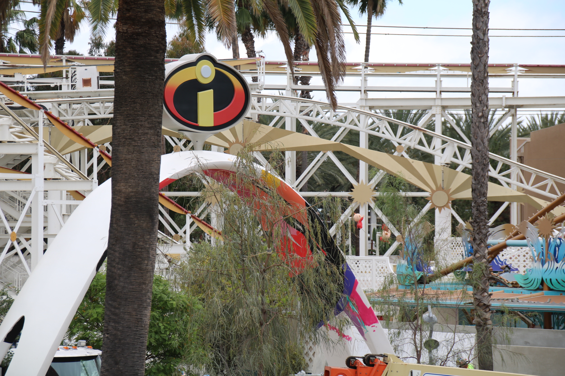 We’re just a few days away from the opening of Pixar Pier, and Imagineers and crews are working around the clock in preparation for its big debut! I made a visit to the park yesterday to check out the progress and saw quite a few new things that have taken shape. New billboards are going into place along the Pier walkway towards the Incredicoaster, including a Coco themed one. The archway to Incredicoaster seems finished, as artwork could be seen for what looks like the area for Jack Jack’s Cookie Num Nums. Poultry Palace is taking shape, and more signage continues to be added to numerous locations.