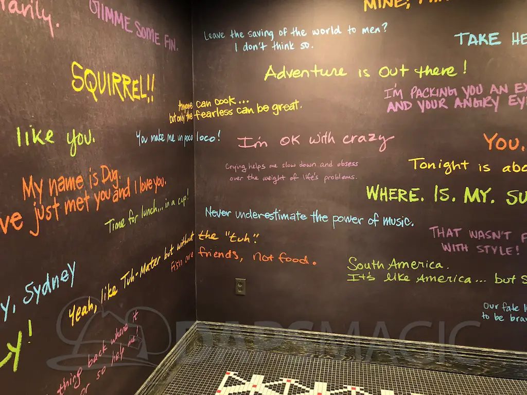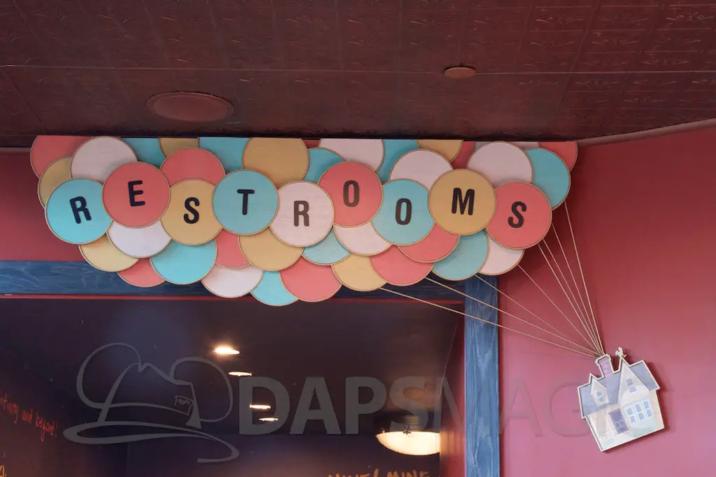 Towards the kitchen is a “secret room” that is sometimes called the “office.” It’s a dedicated dining room for quite a few guests with caricatures of artists of Pixar. To get through the door is even an ordeal with a switch and lamp lights to make it an experience getting in.