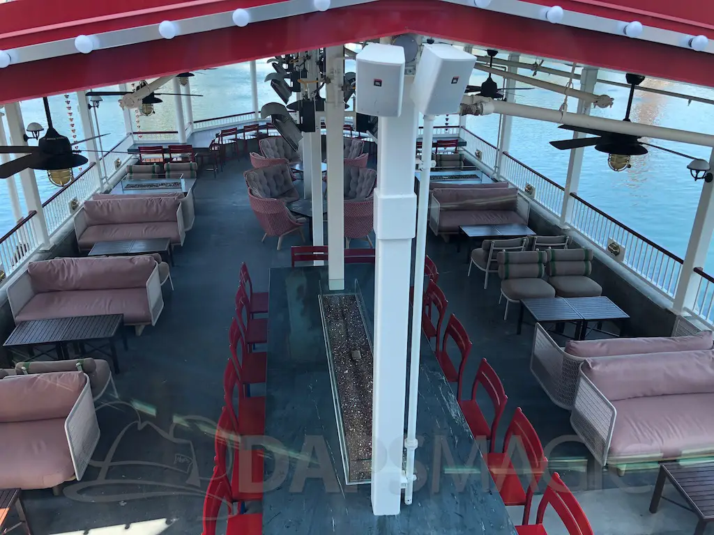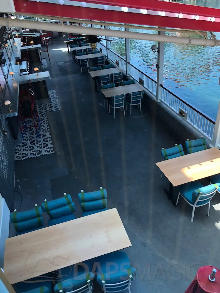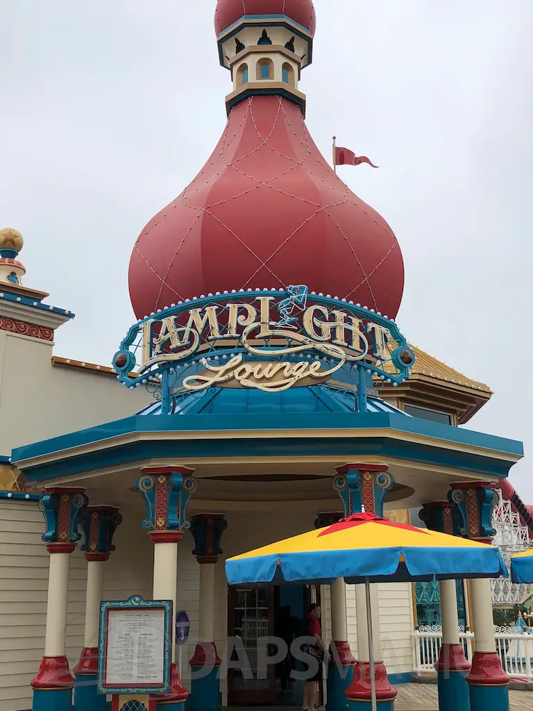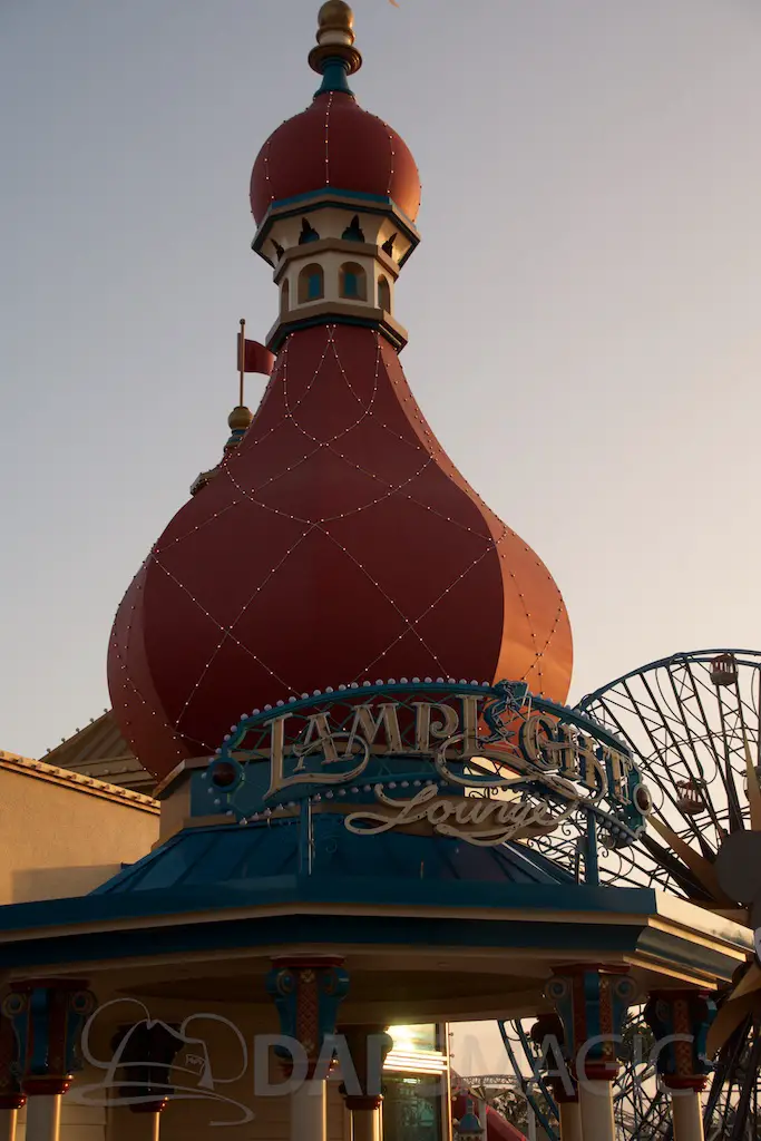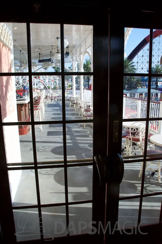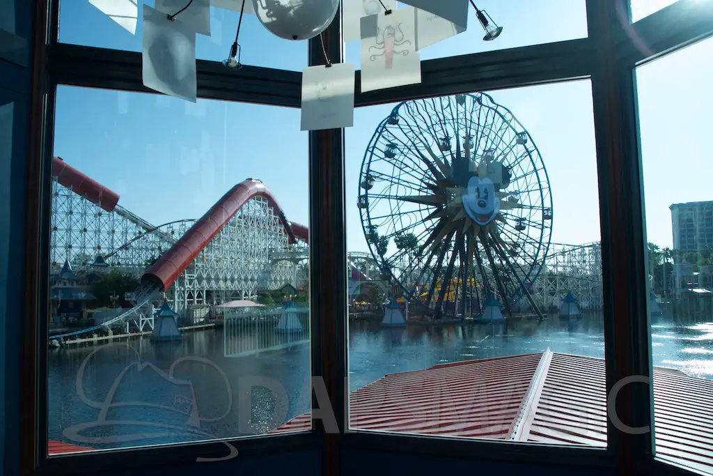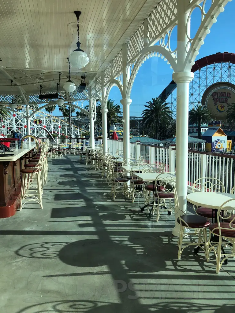 One end of the Lounge is a relaxing outdoor deck that extends over the water of the Pixar Pier lagoon. There are cushy seats and a few lounge fixtures that create the great atmosphere for a California dining experience.