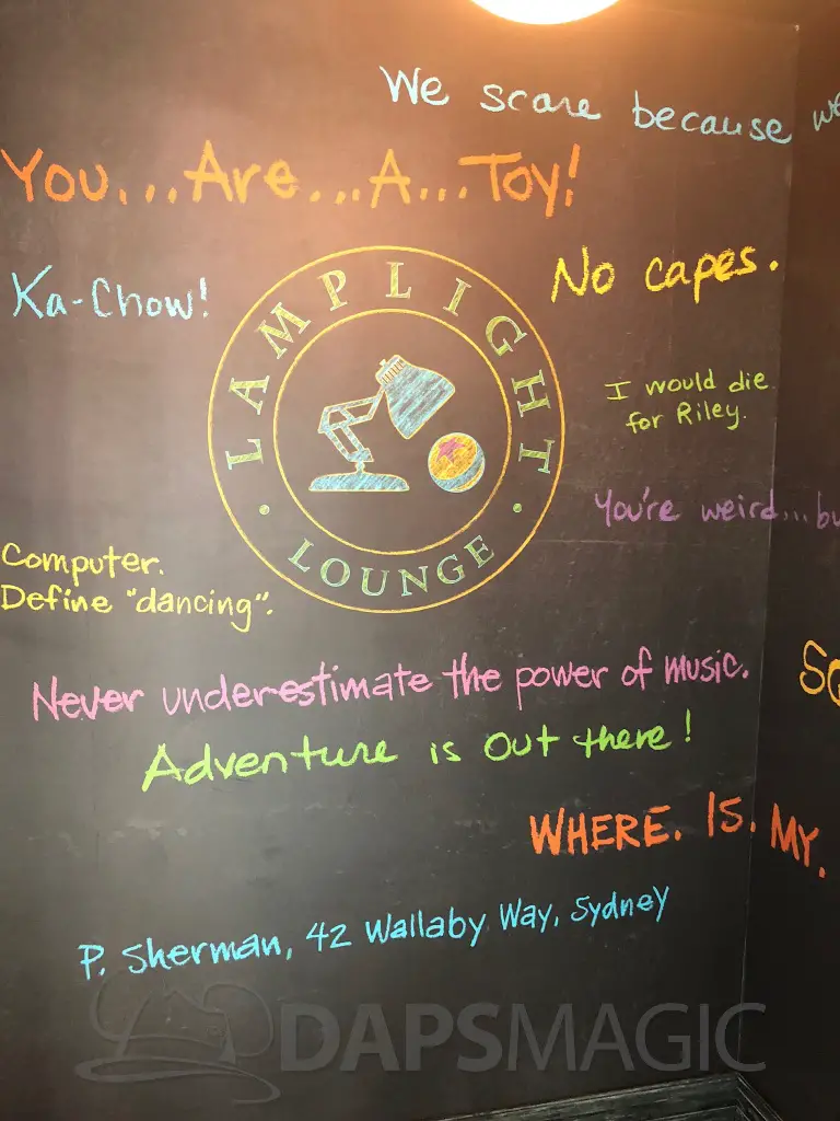 Lamplight Lounge is a treasure trove of Pixar art, homages, and secrets that will delight fans! For thoughts on the food, check out the post here.
