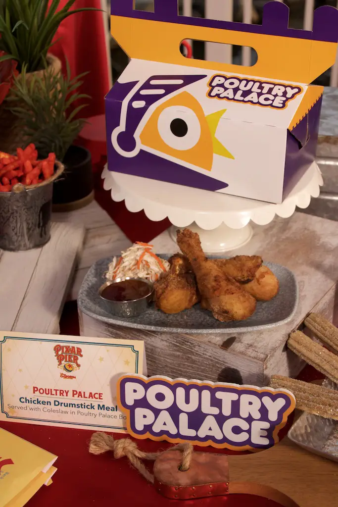I will first comment on the coleslaw. I know I’ve had it somewhere else at the Resort, but could not tell you exactly where because I forgot. However, it is one that I always enjoy because it’s different from the usual creamy version at a lot of fast food places. It’s more of a true slaw with a vinegar dressing mixed in it. And it pairs nicely with a slightly sweet chicken leg. Which is one of my favorite food items at Pixar Pier! I really liked these chicken legs for the blend of crumb coating and sweet flavor. The turkey leg is, like Mr. Daps said, available throughout the two parks. Not that it’s bad in any way, but for grabbing a unique item at the Pier I’d get the chicken.