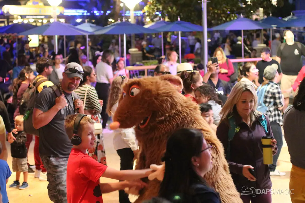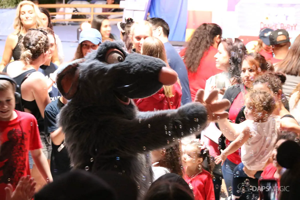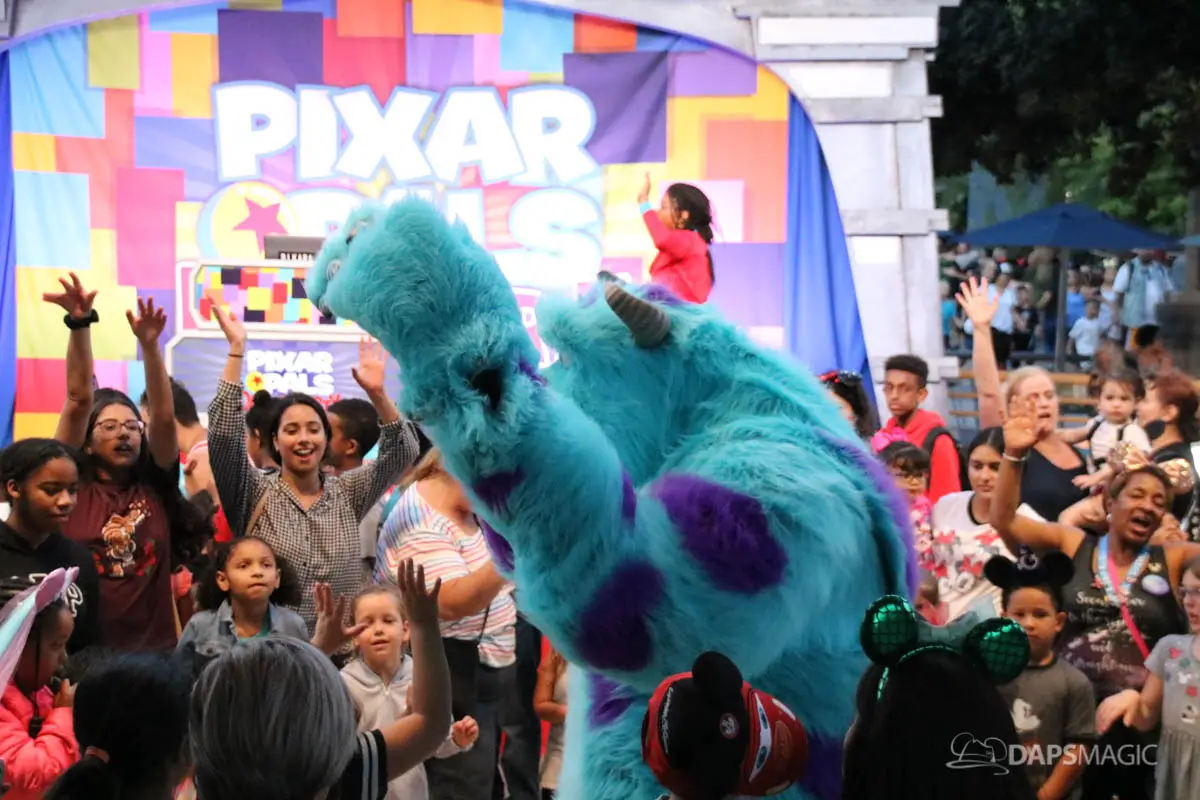 On different nights it appears that different Pixar Pals have been showing up. The characters have ranged from the Toy Story movies to Up, to Monsters, Inc, to Ratatouille to name a few! There are also different DJs on different nights. Pixar Pals Dance Party is definitely worth checking out if you like to dance and love Pixar characters!