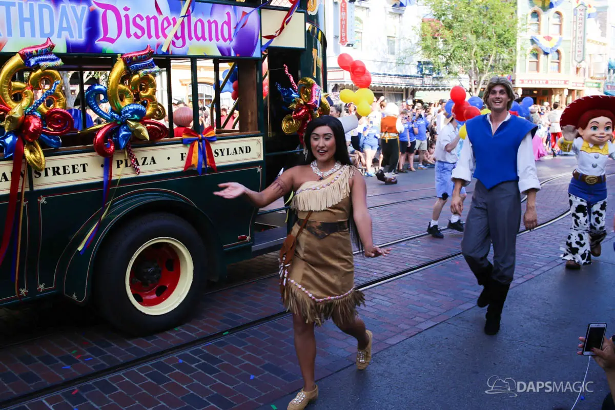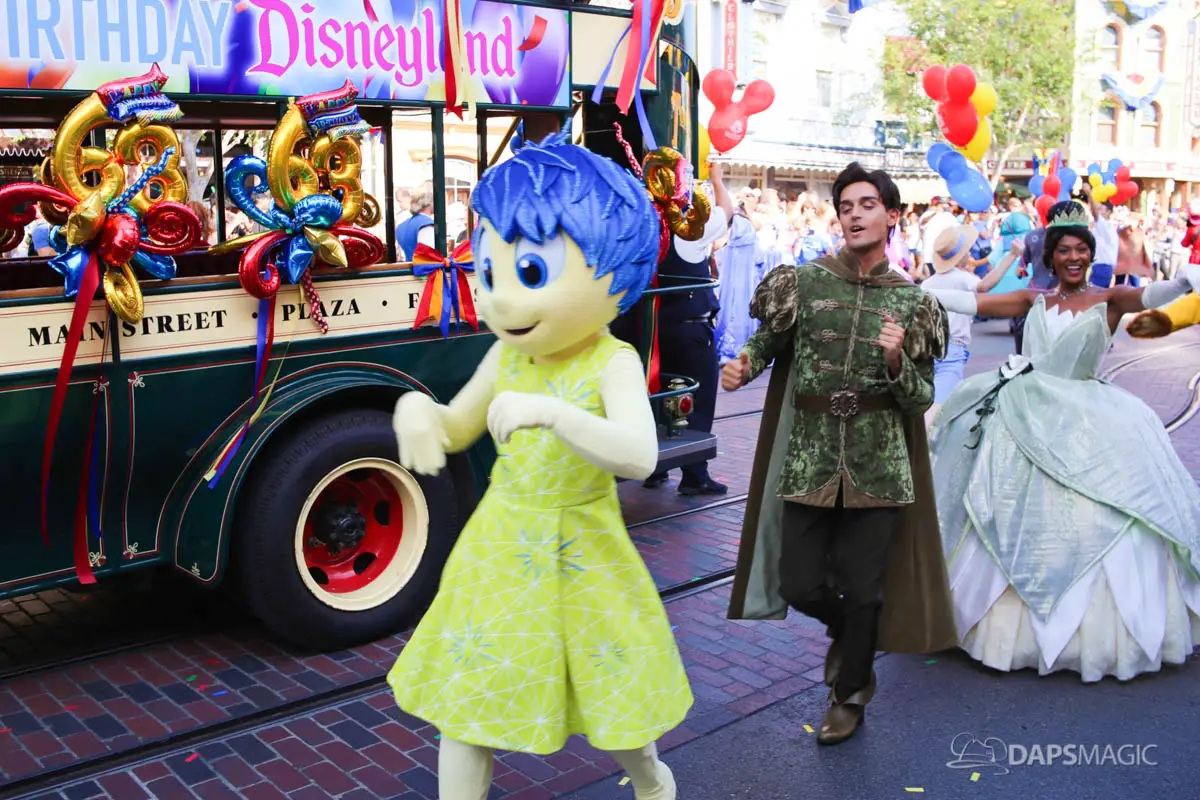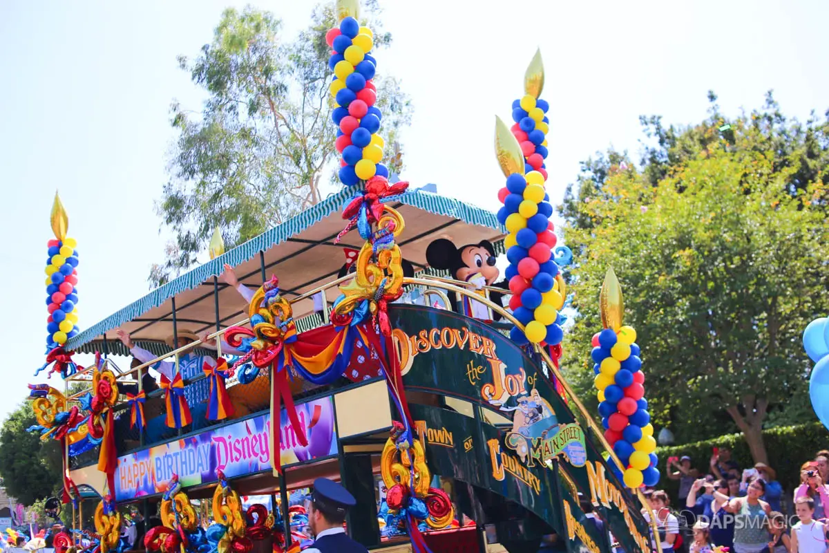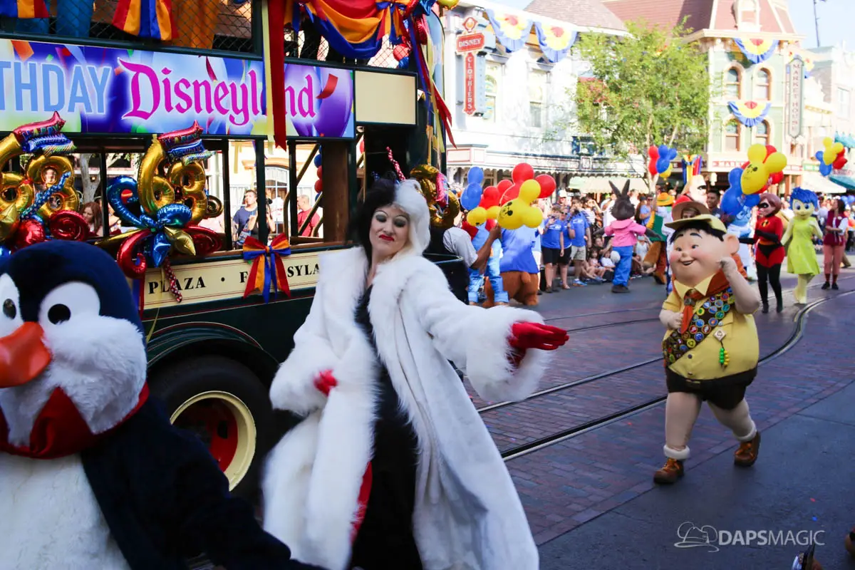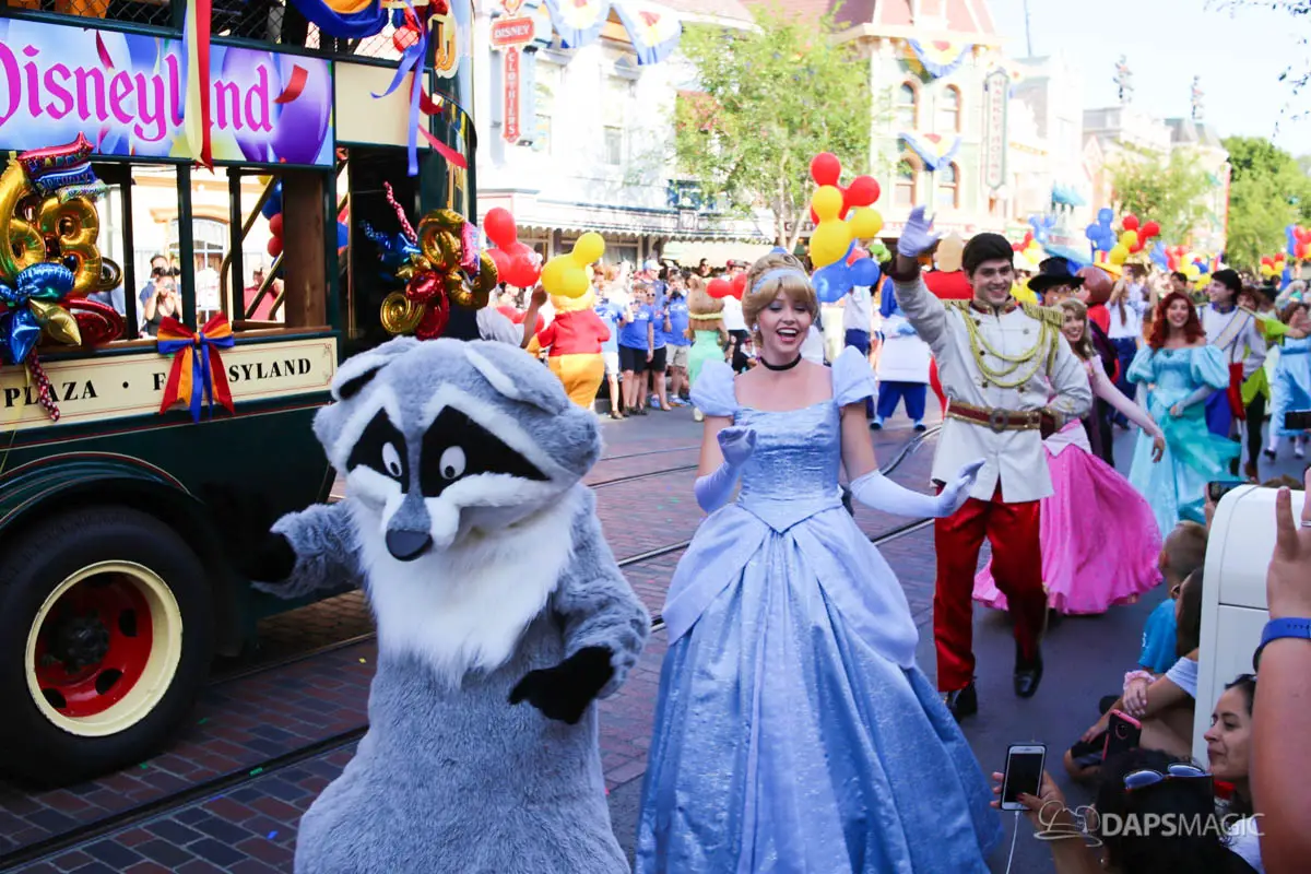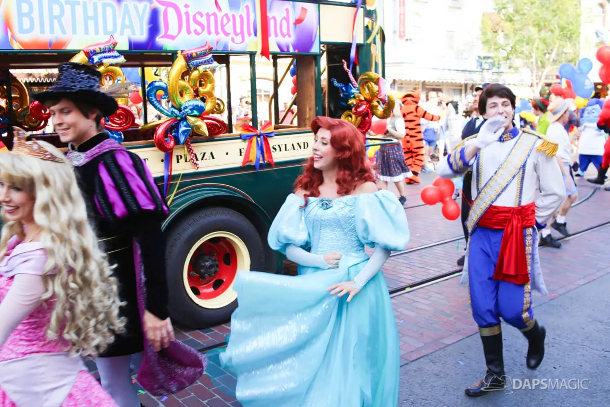 Disneyland’s 63rd Birthday Celebration Cavalcade with 63 Disney Characters at 5:25 pm