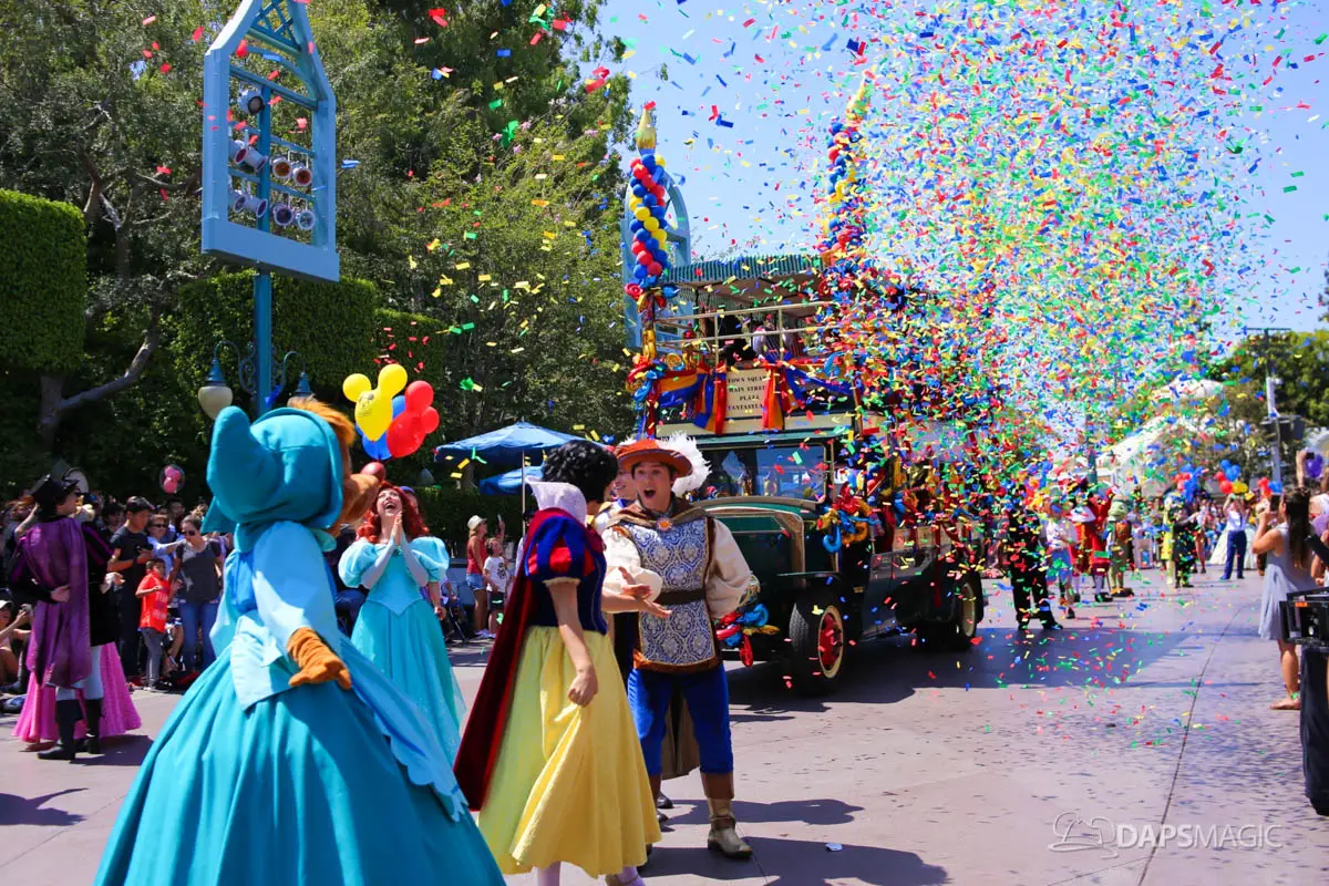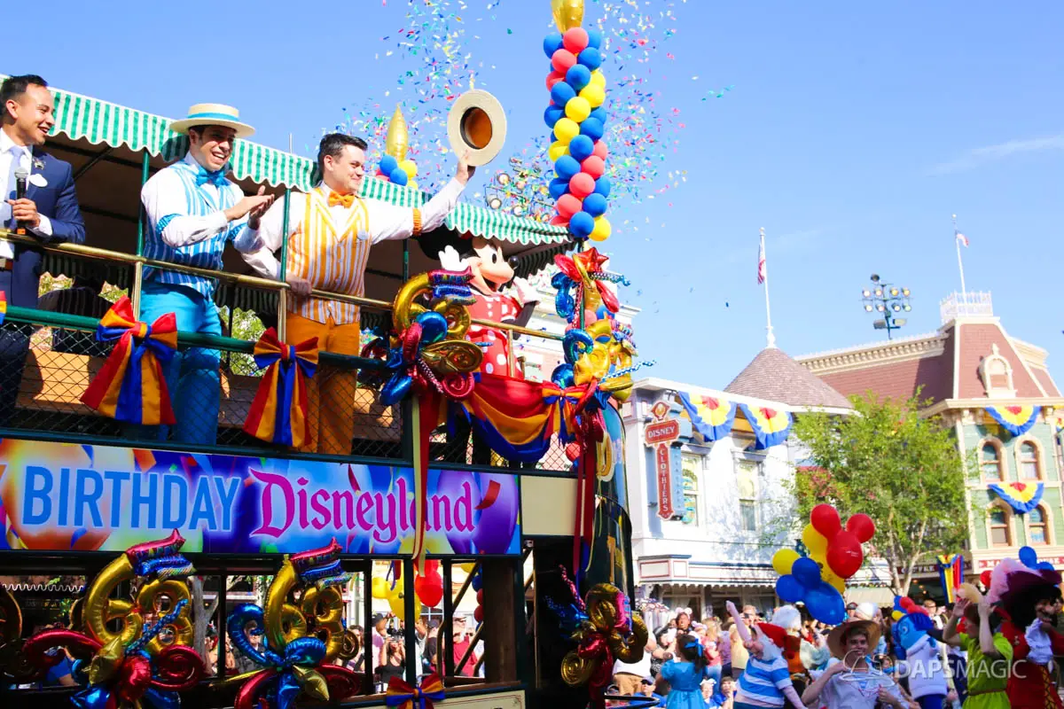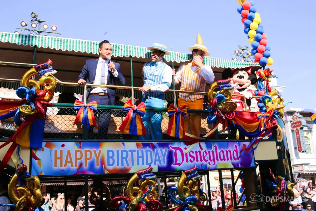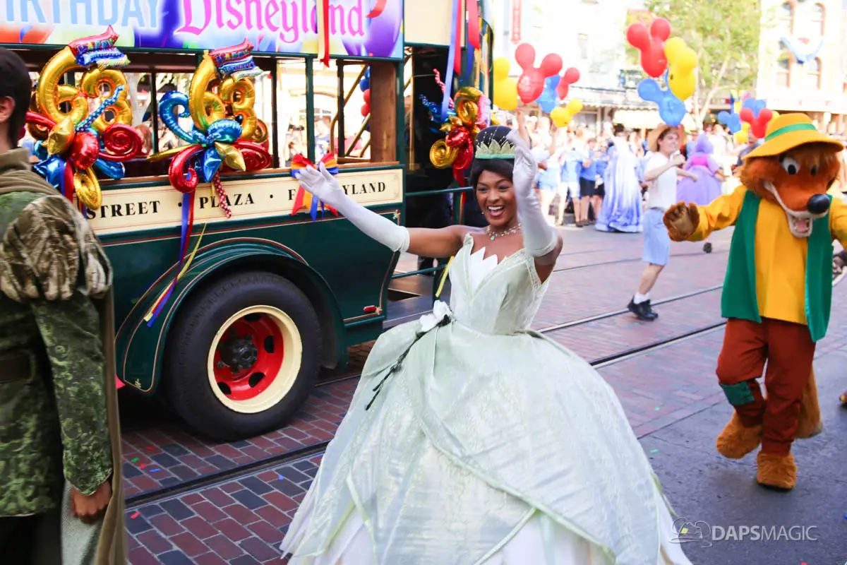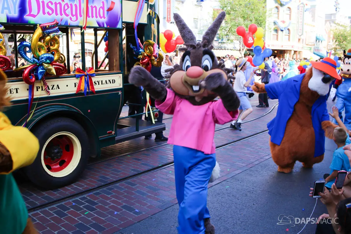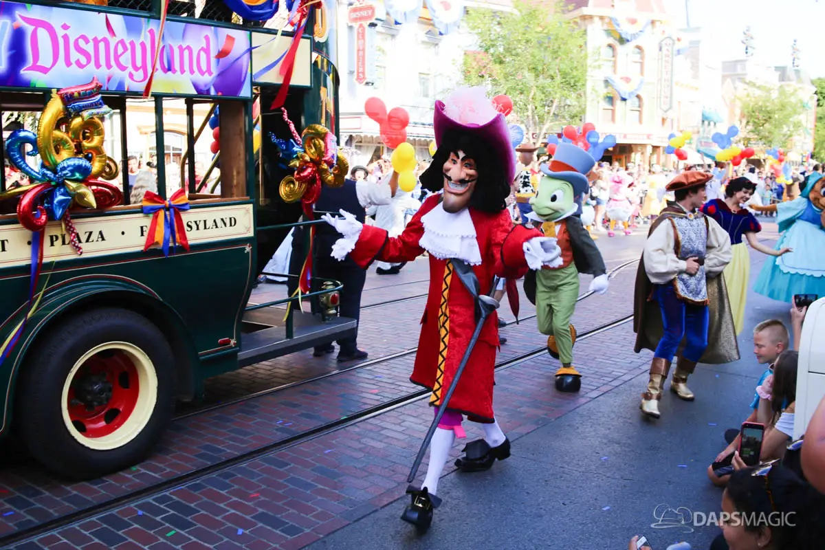 Disneyland’s 63rd Birthday Celebration Cavalcade with 63 Disney Characters at 5:25 pm