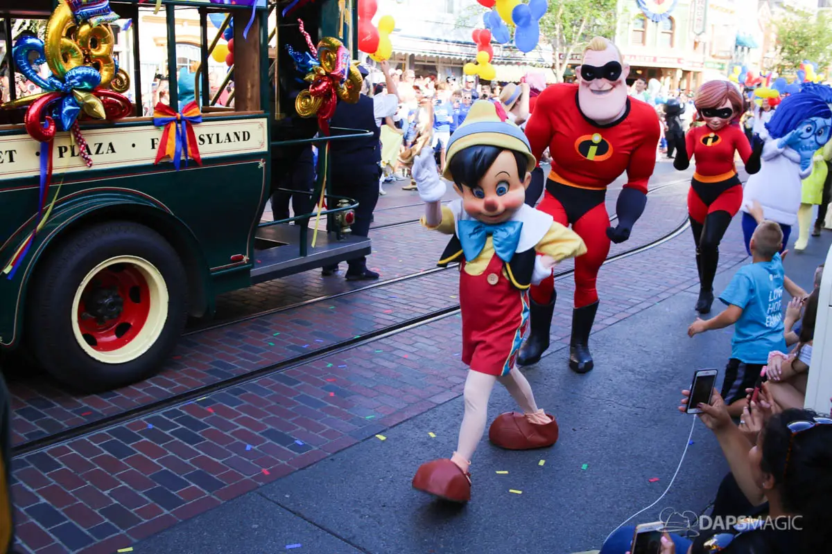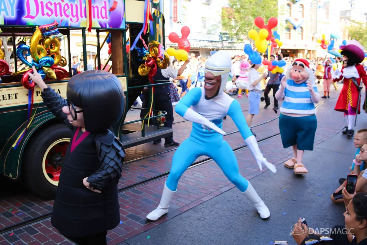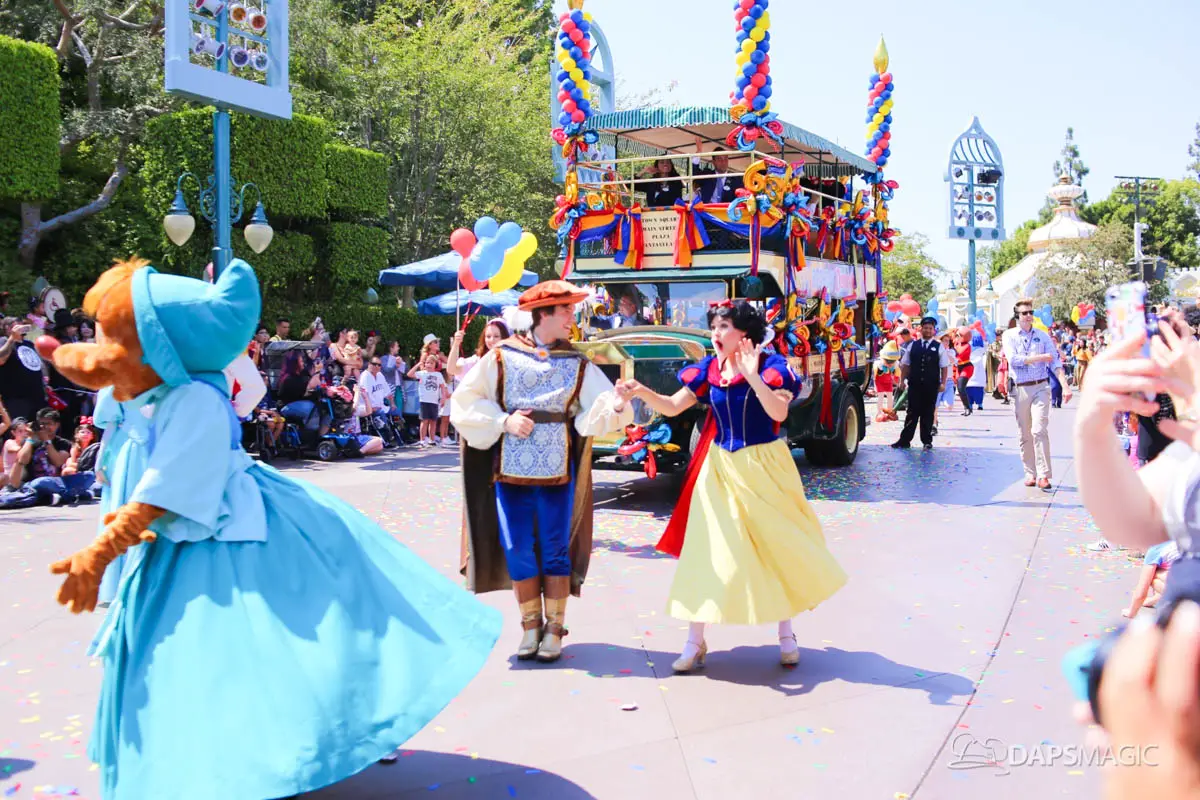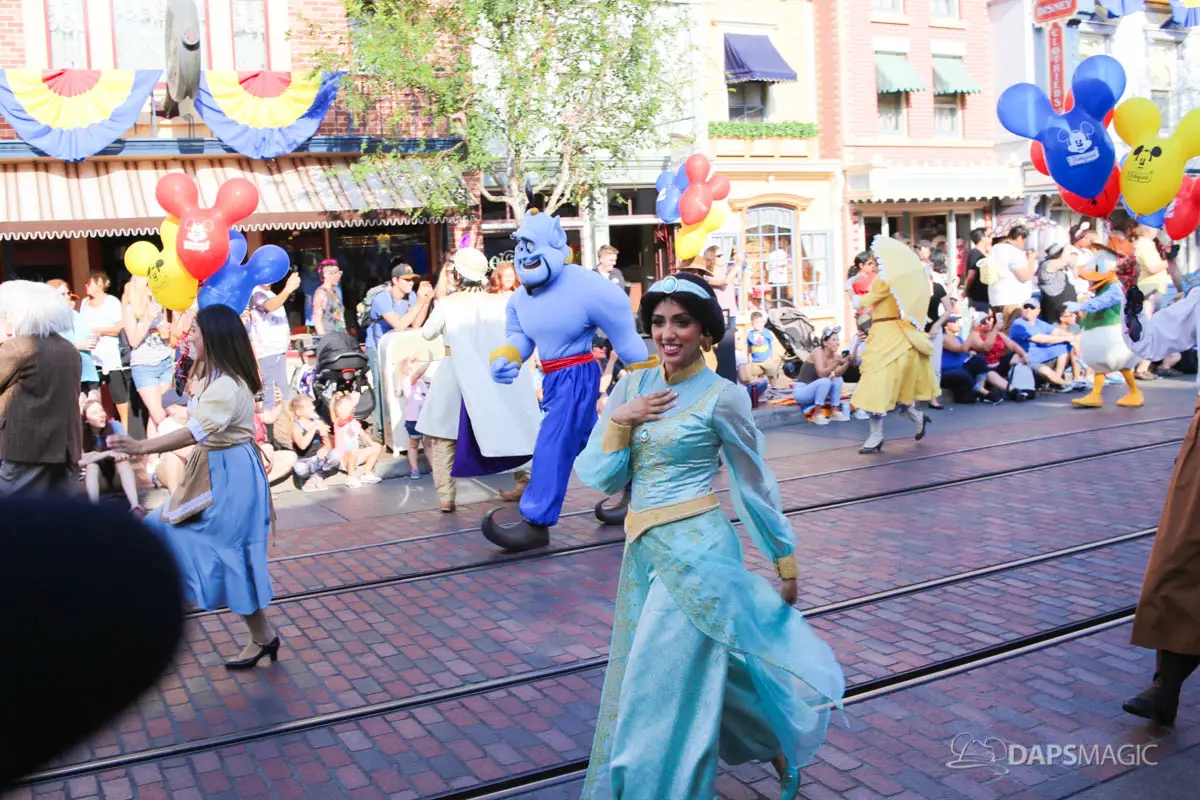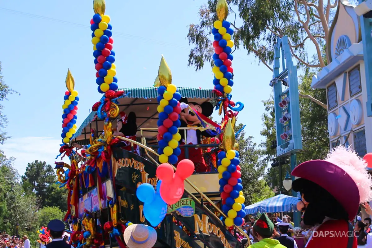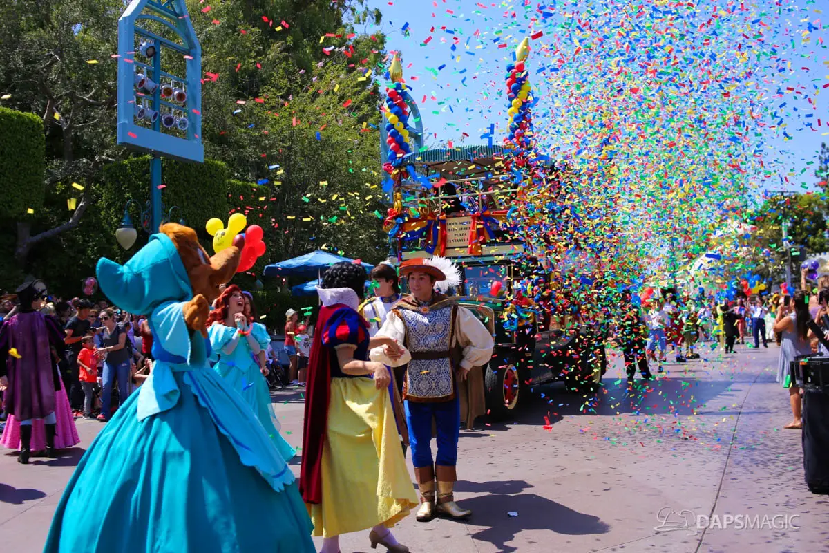 Disneyland’s 63rd Birthday Celebration Cavalcade with 63 Disney Characters at 5:25 pm