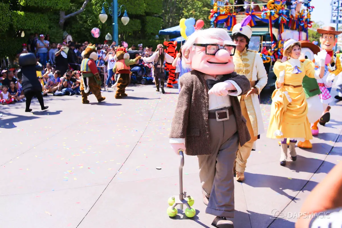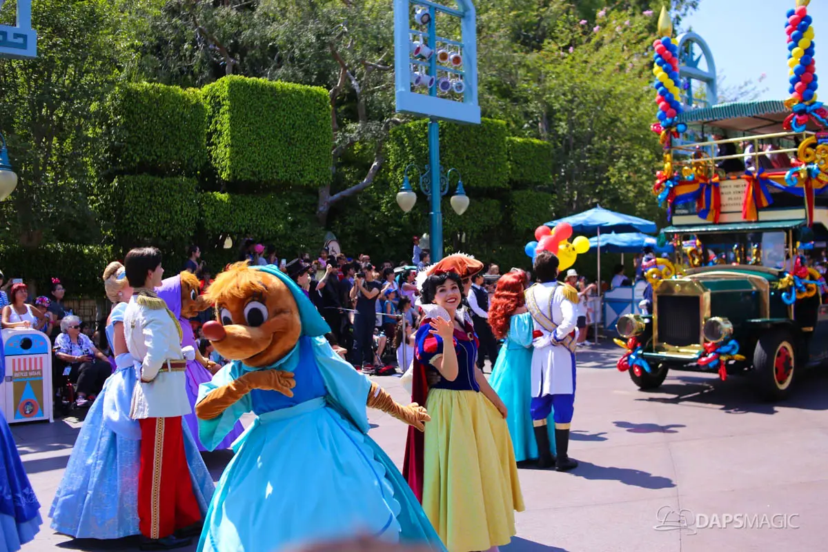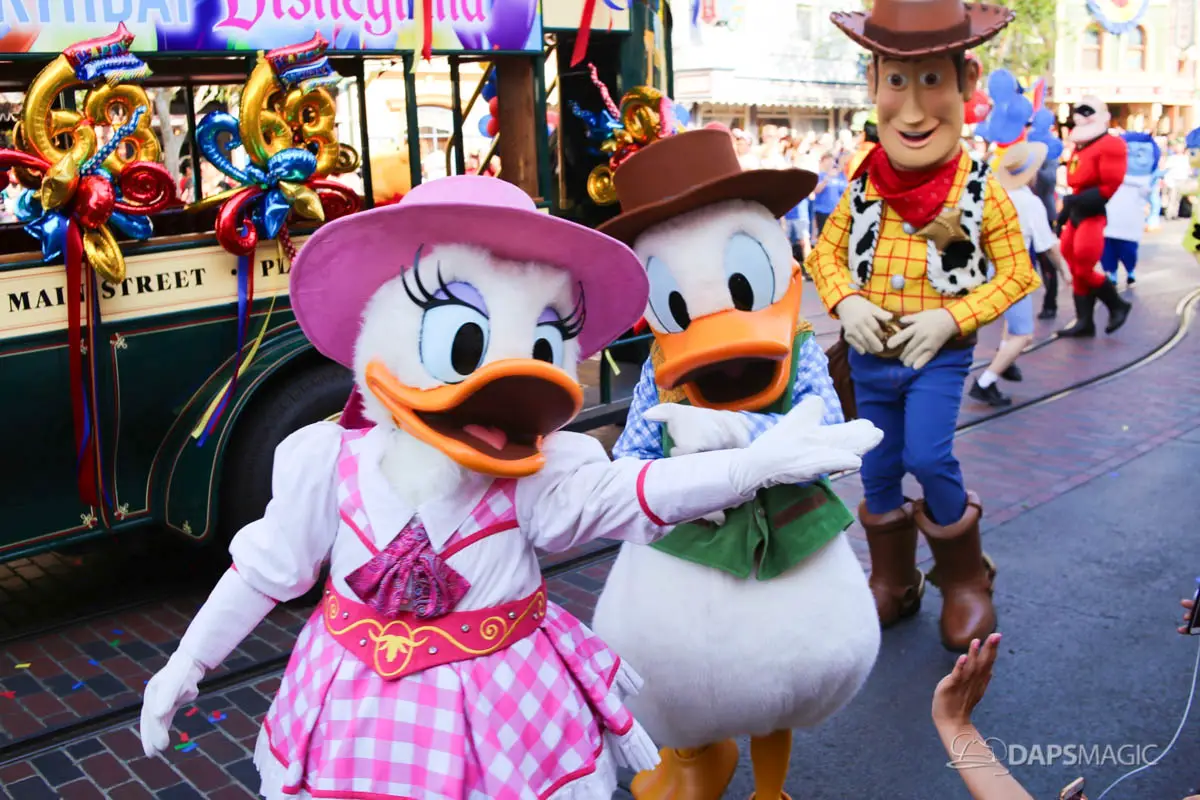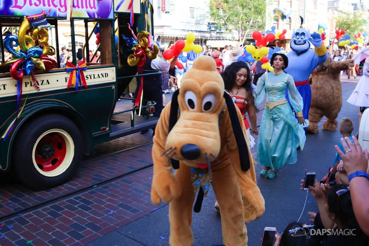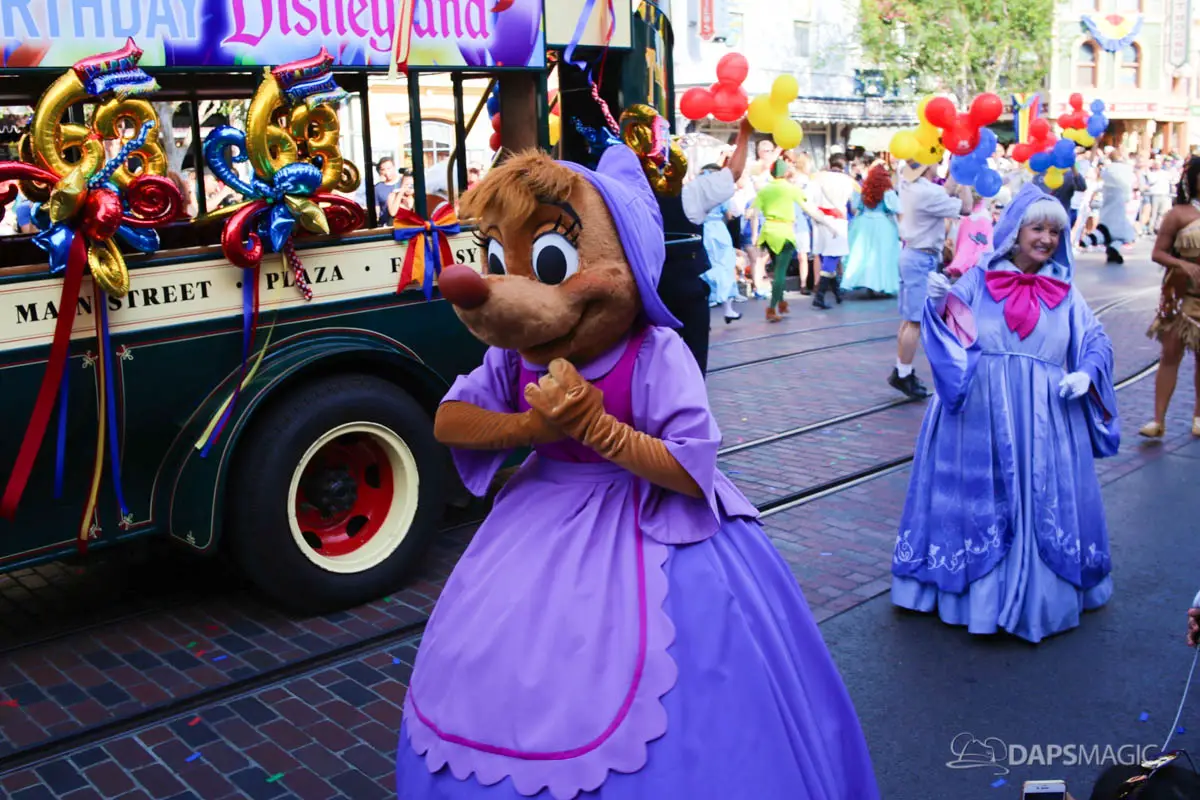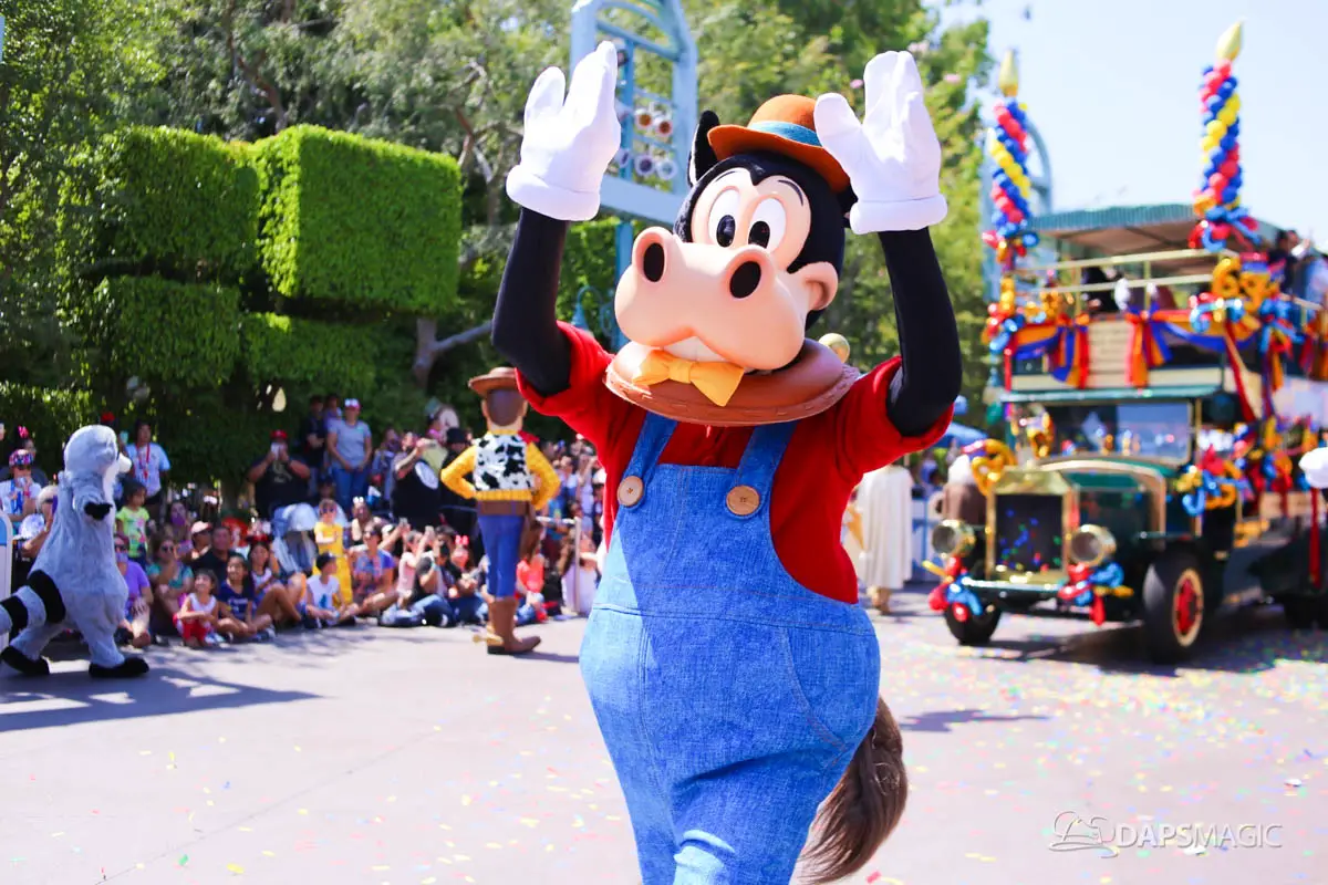 Disneyland’s 63rd Birthday Celebration Cavalcade with 63 Disney Characters at 2:50 pm