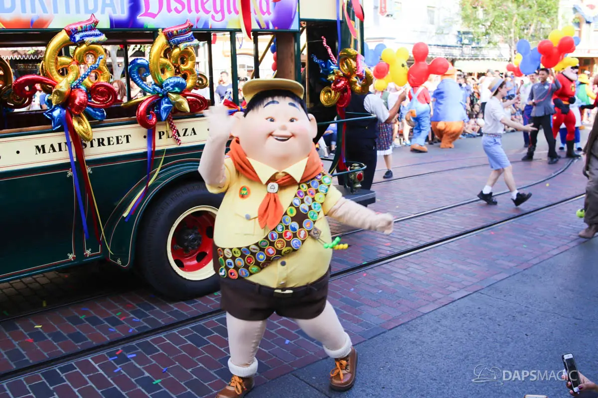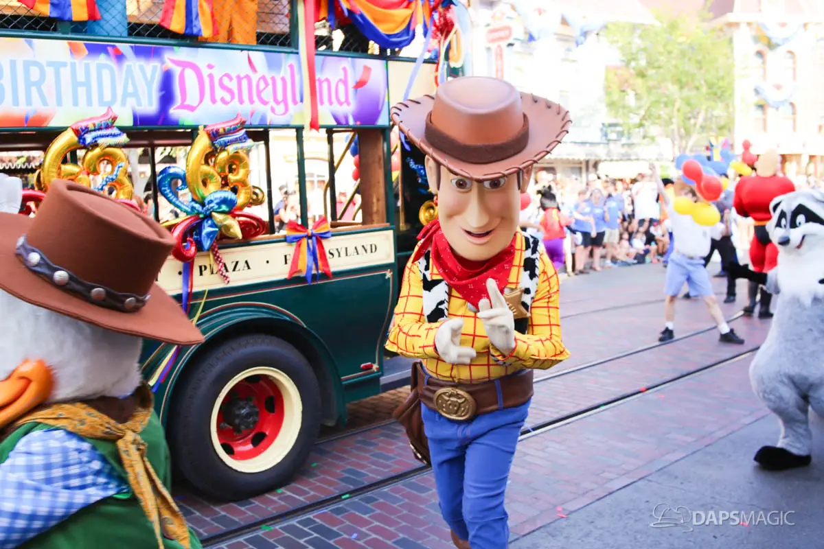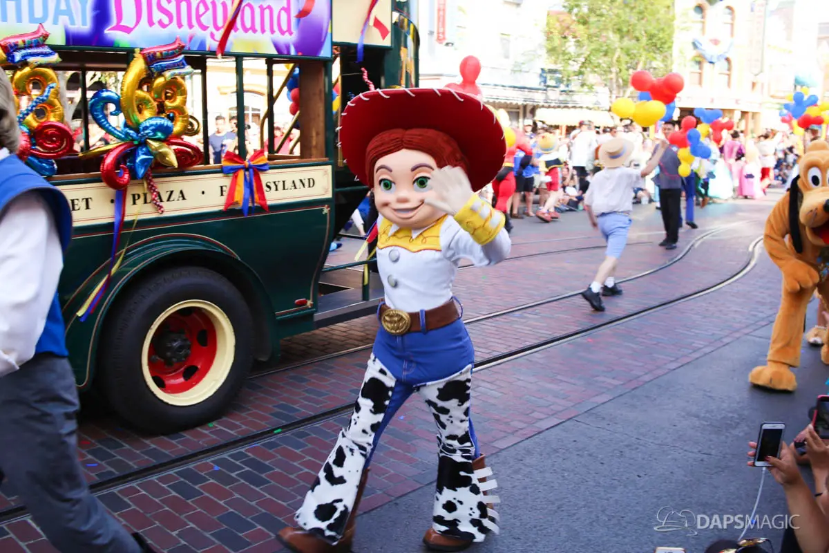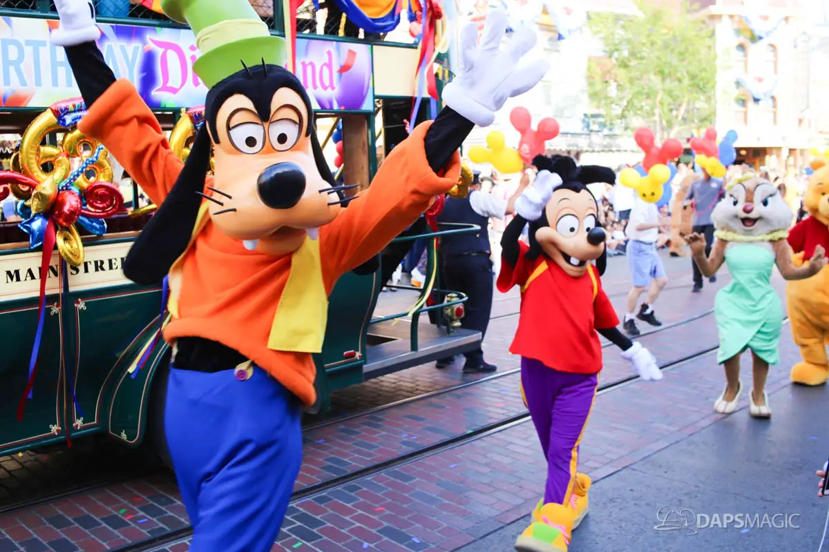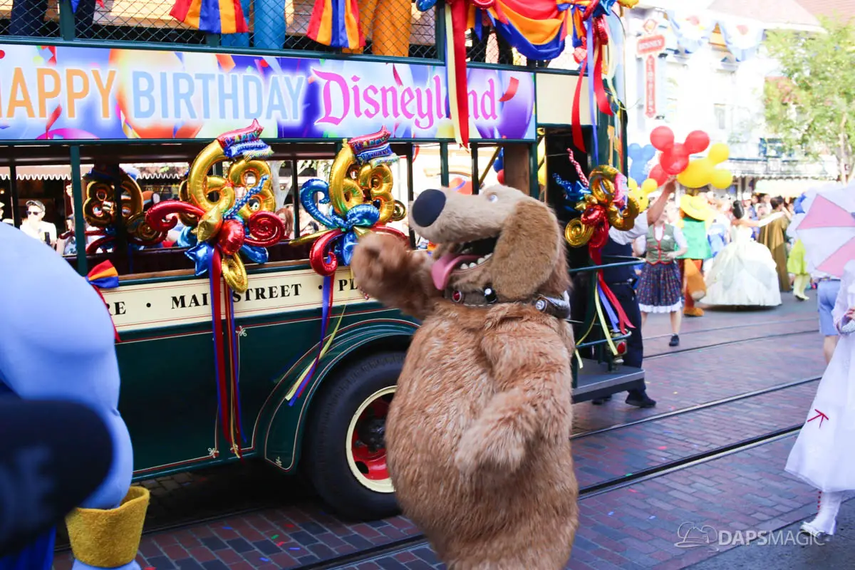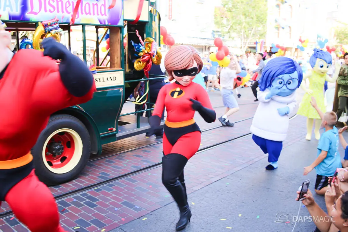 Disneyland’s 63rd Birthday Celebration Cavalcade with 63 Disney Characters at 2:50 pm