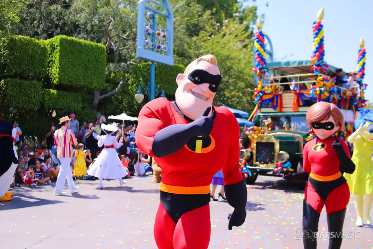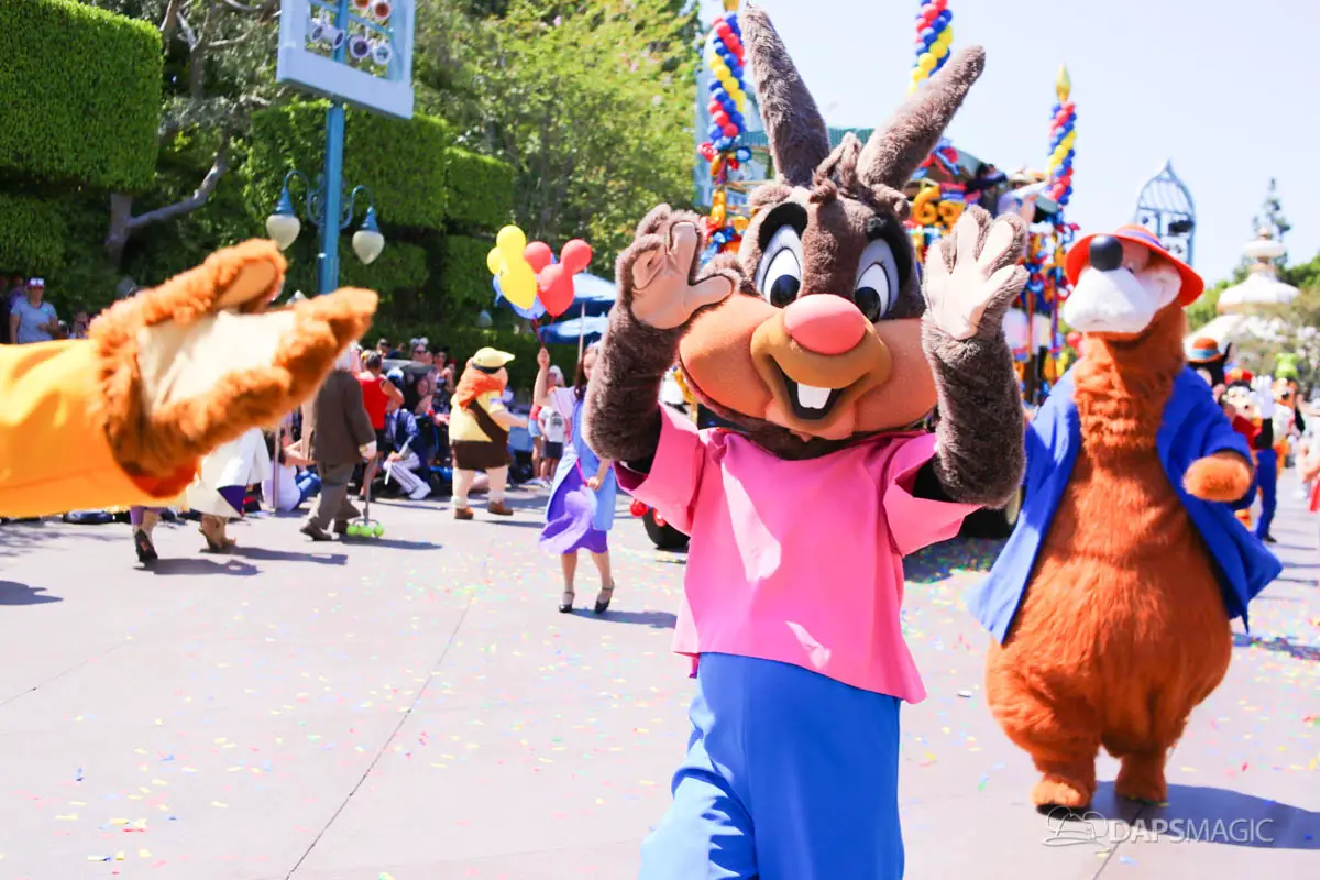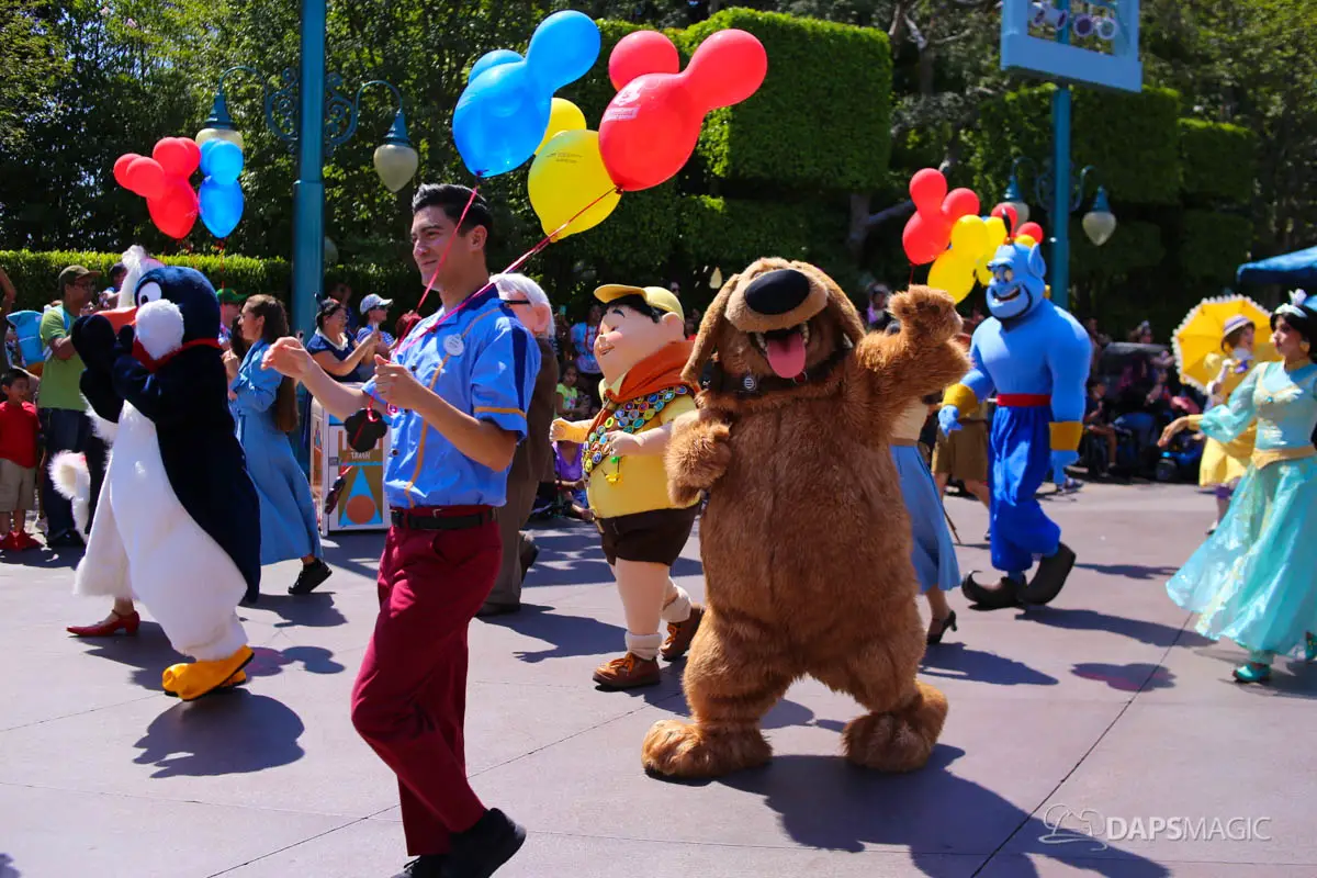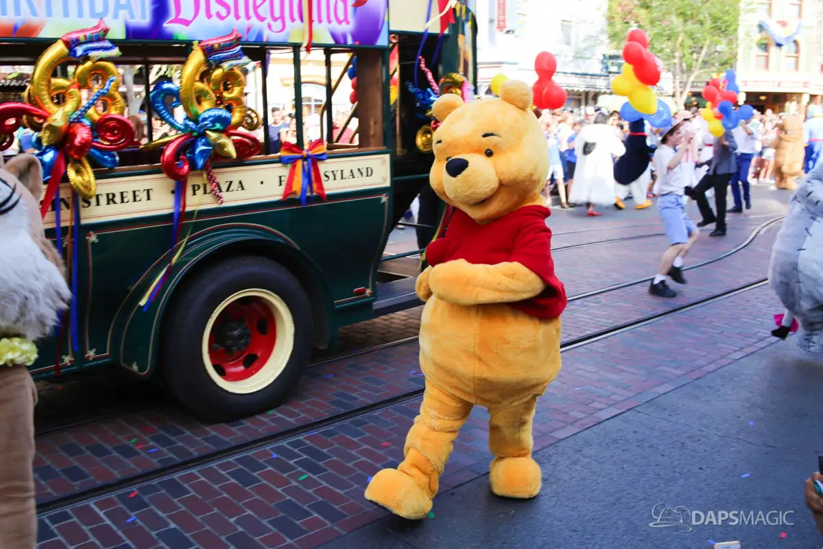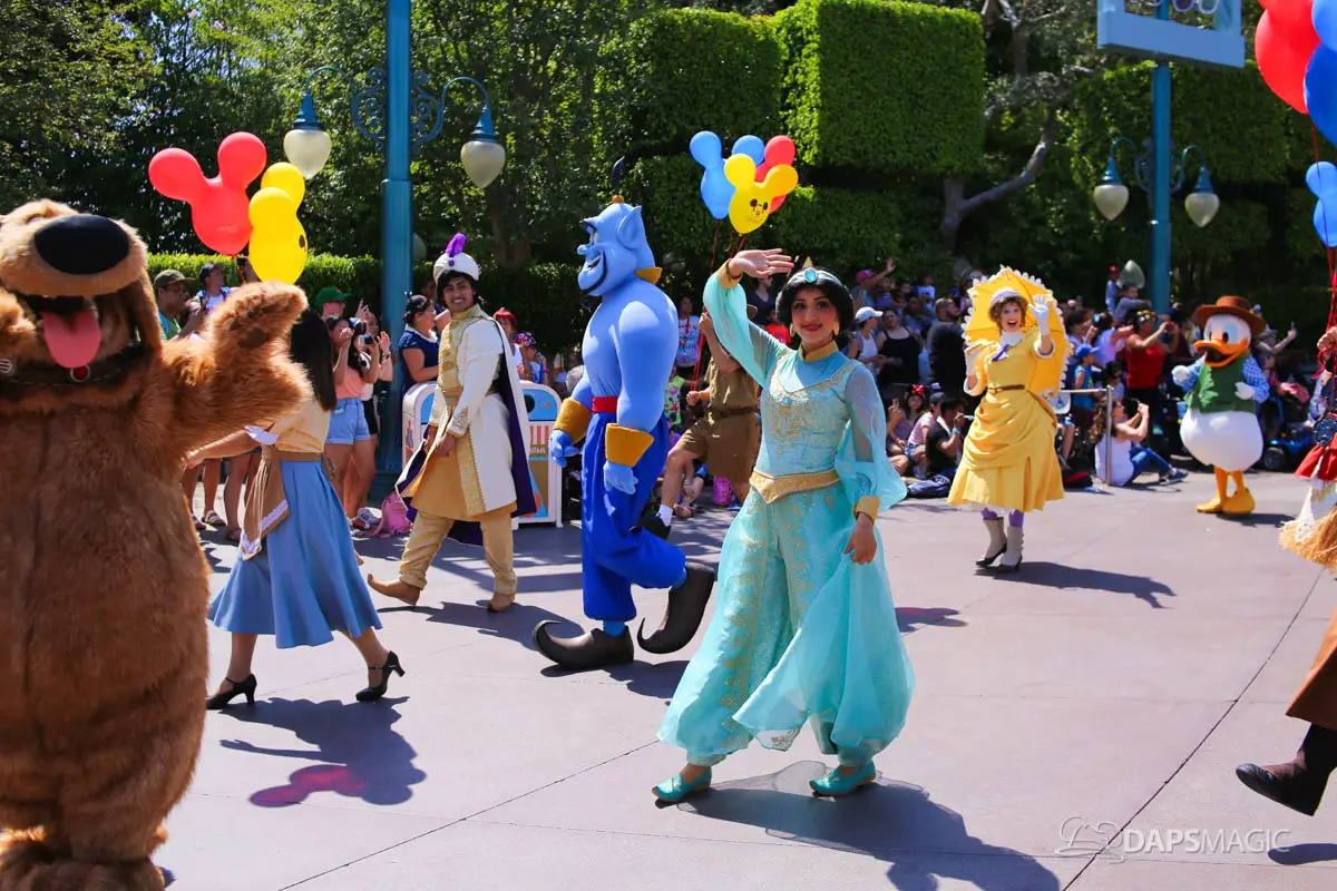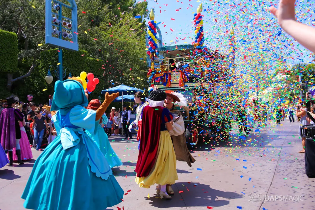 Disneyland’s 63rd Birthday Celebration Cavalcade with 63 Disney Characters at 2:50 pm