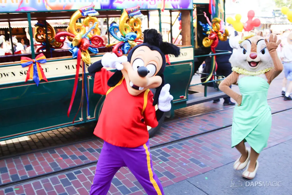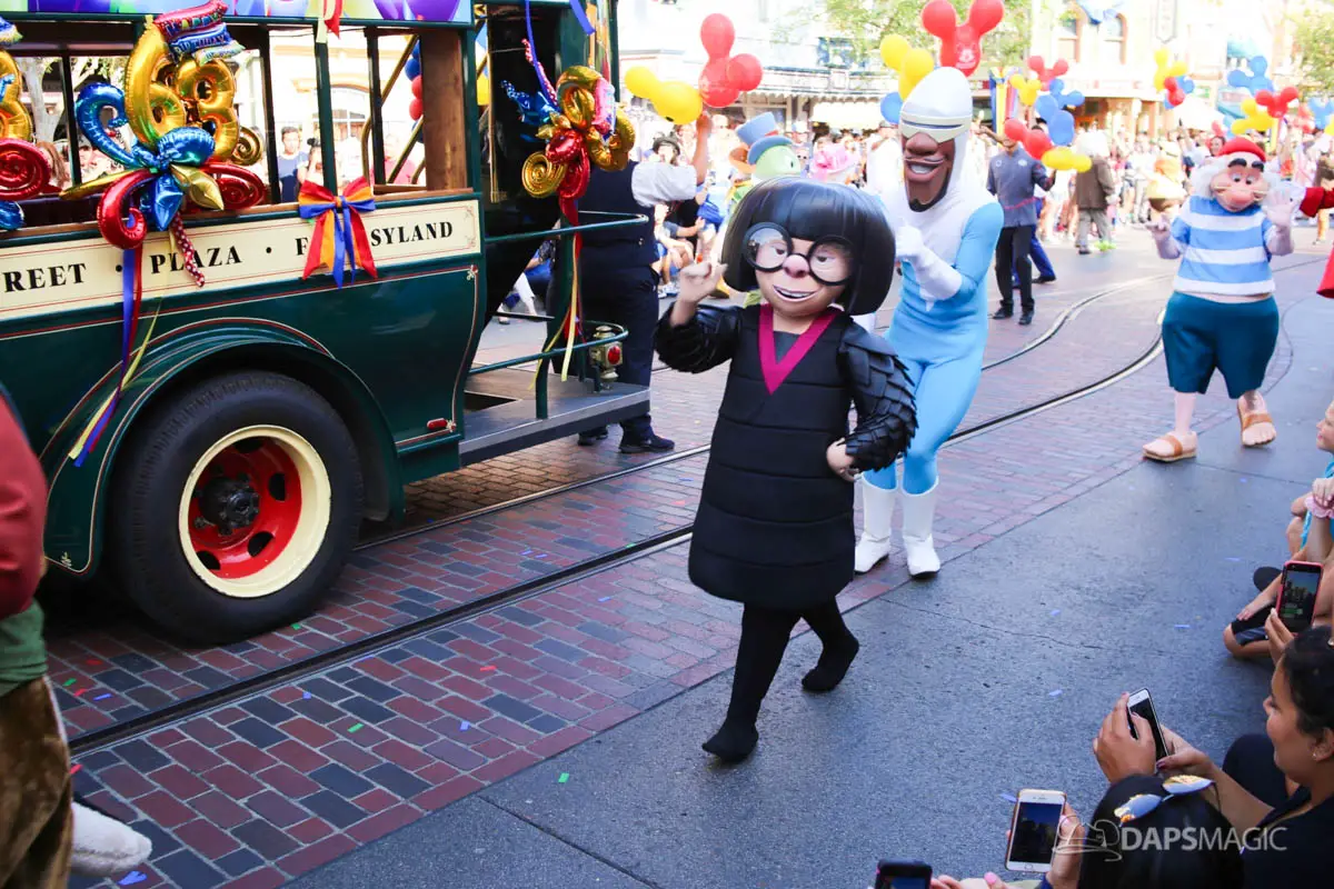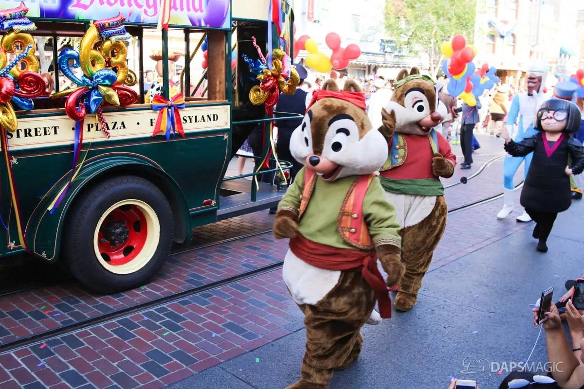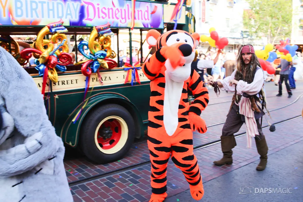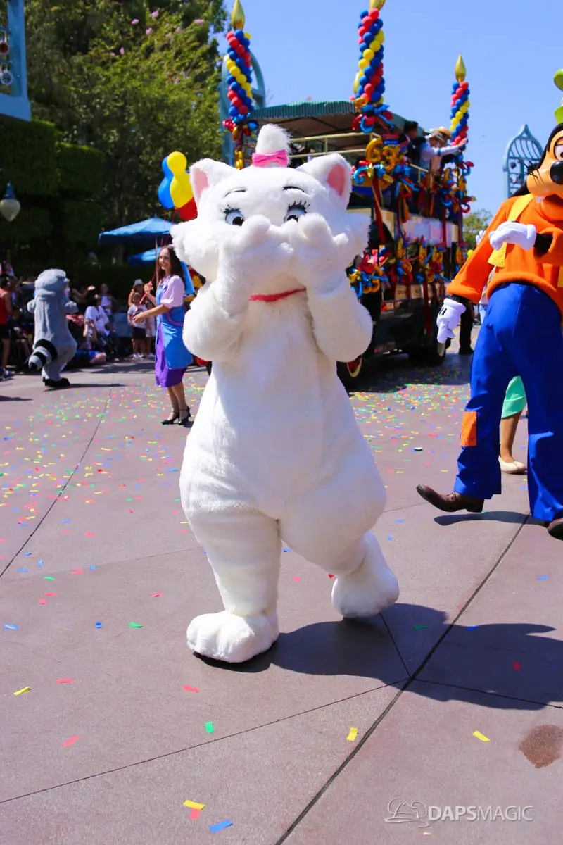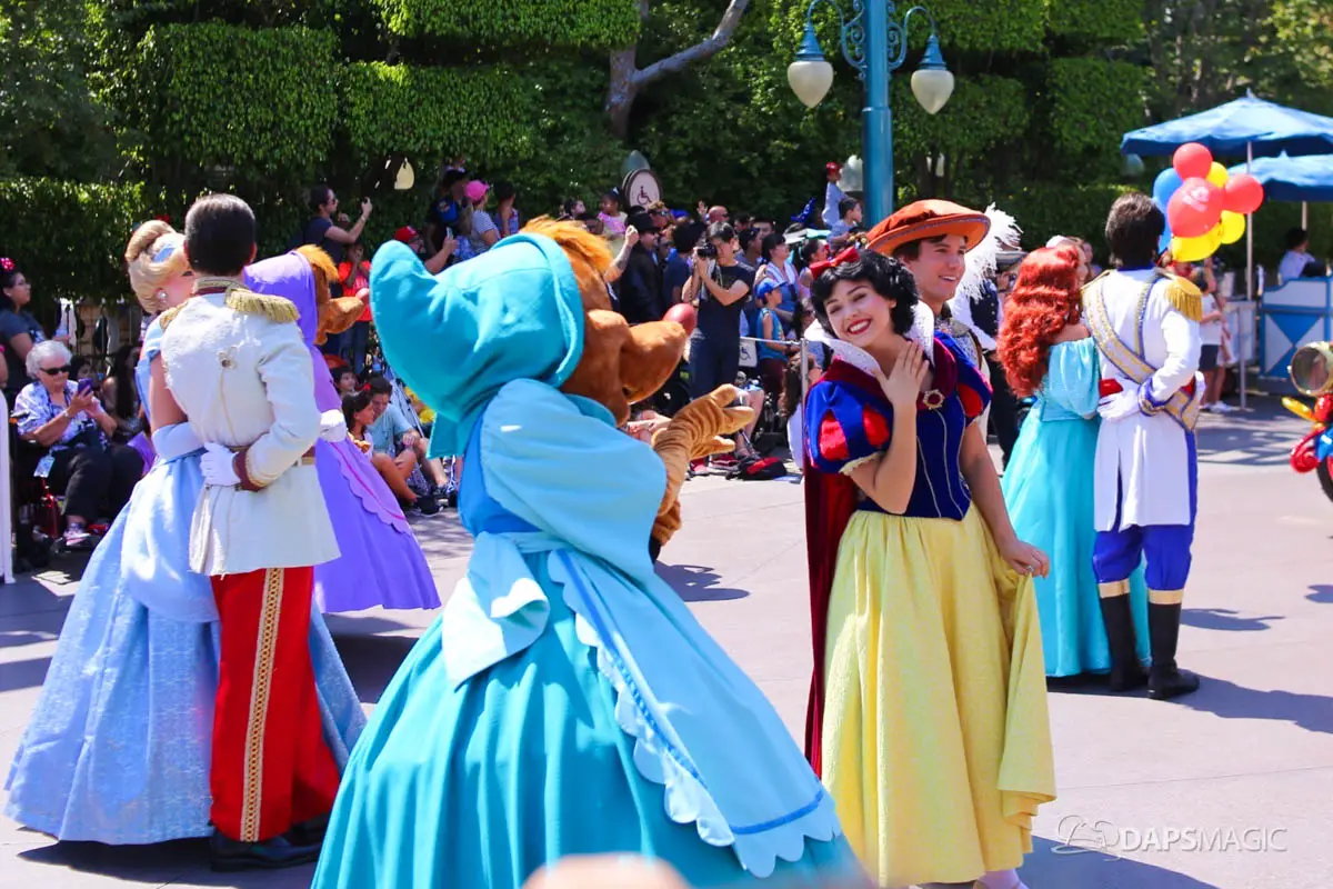 Disneyland’s 63rd Birthday Celebration Cavalcade with 63 Disney Characters at 2:50 pm