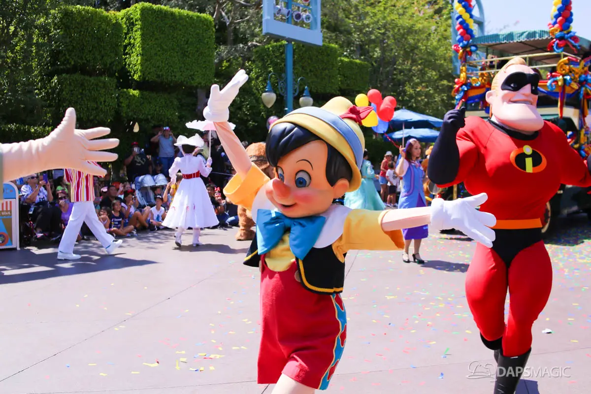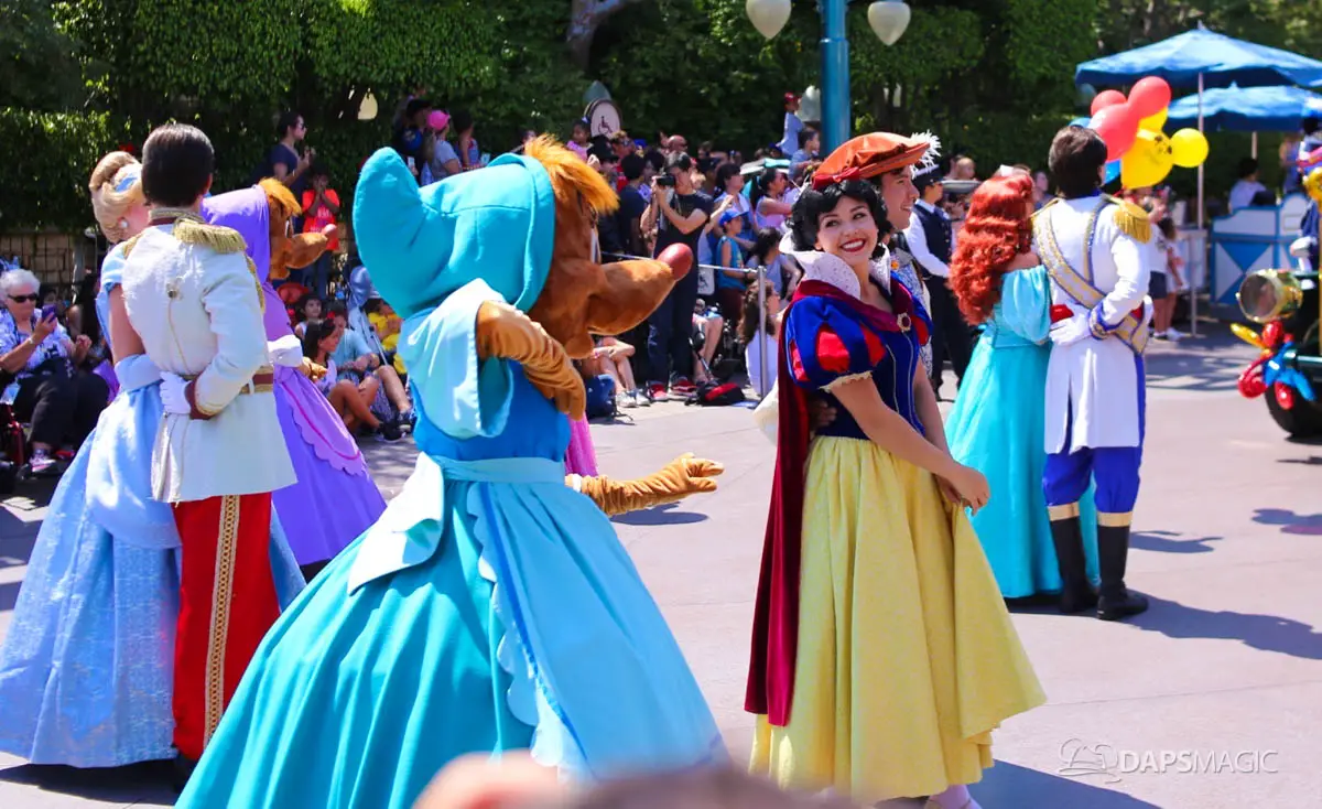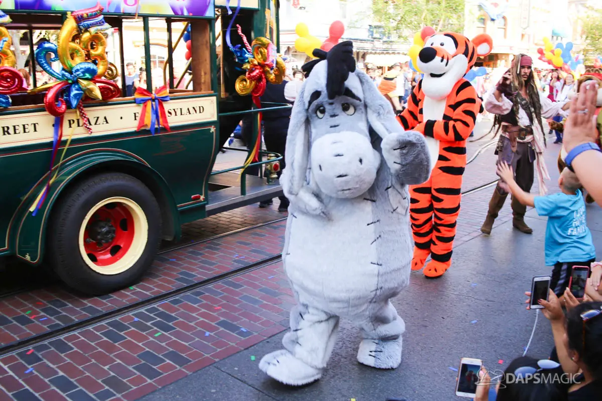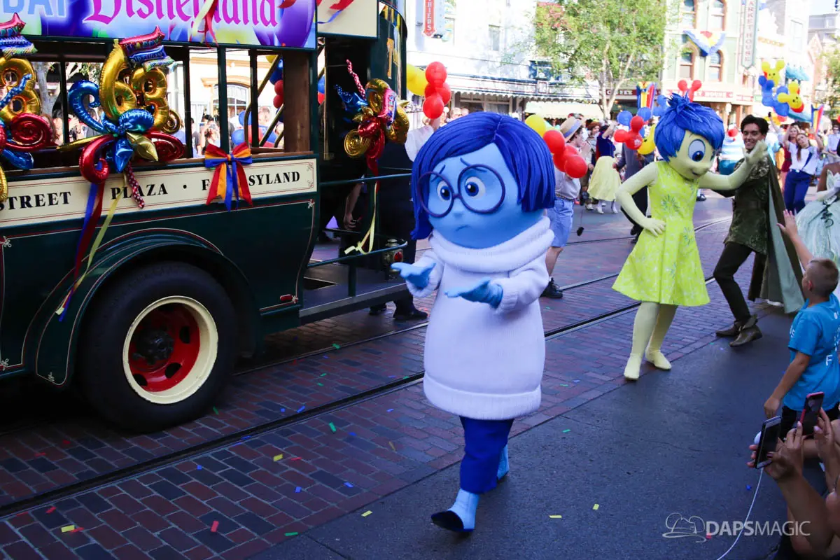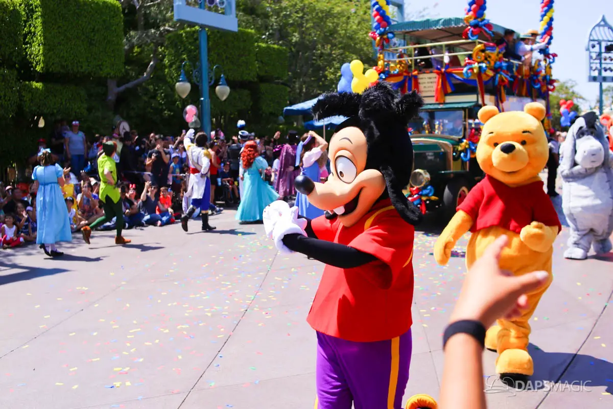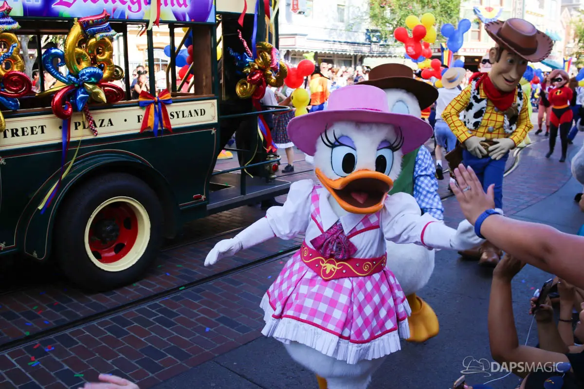Disneyland’s 63rd Birthday Celebration Cavalcade with 63 Disney Characters at 2:50 pm