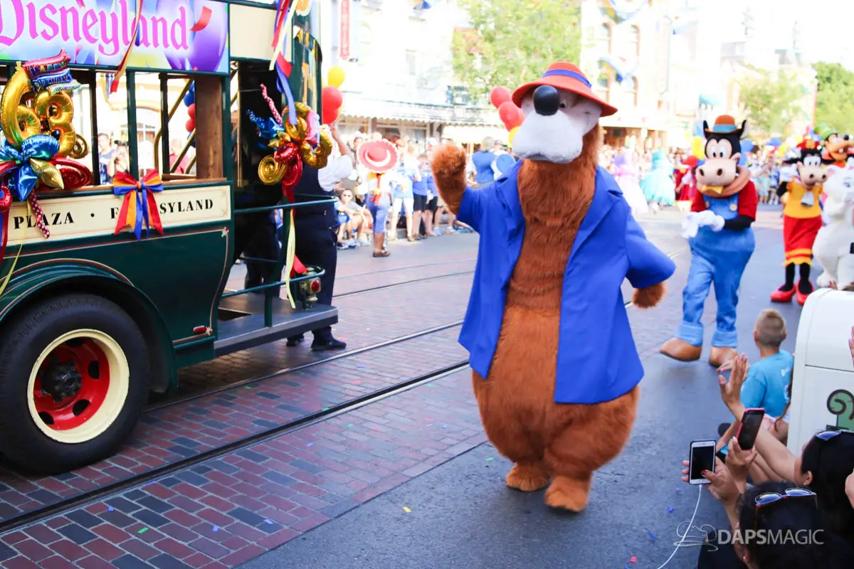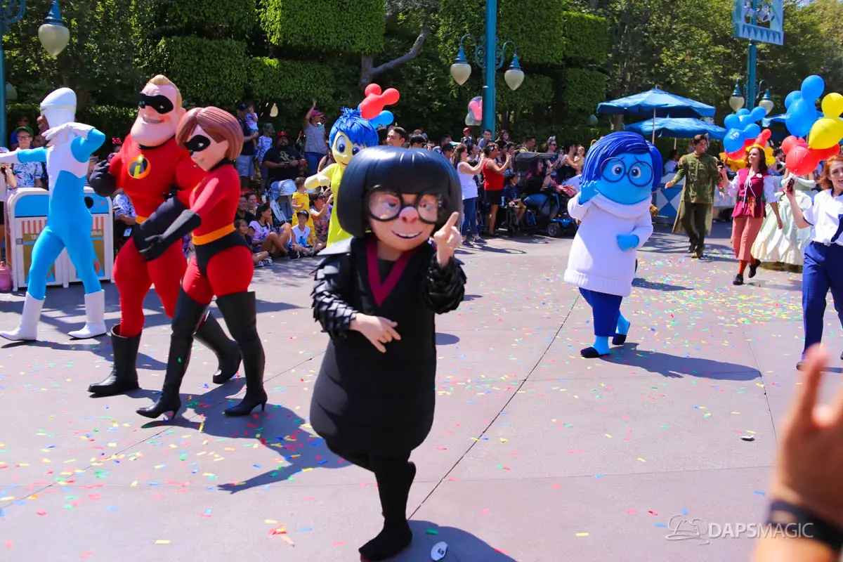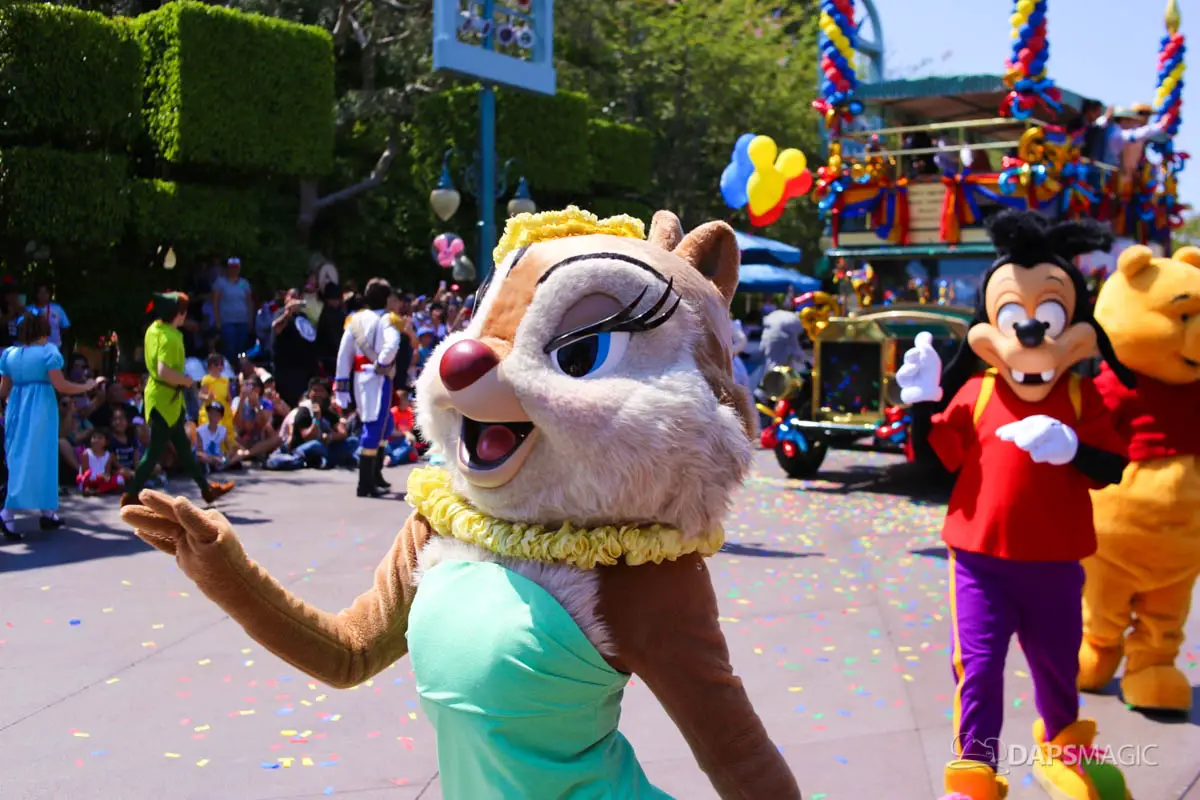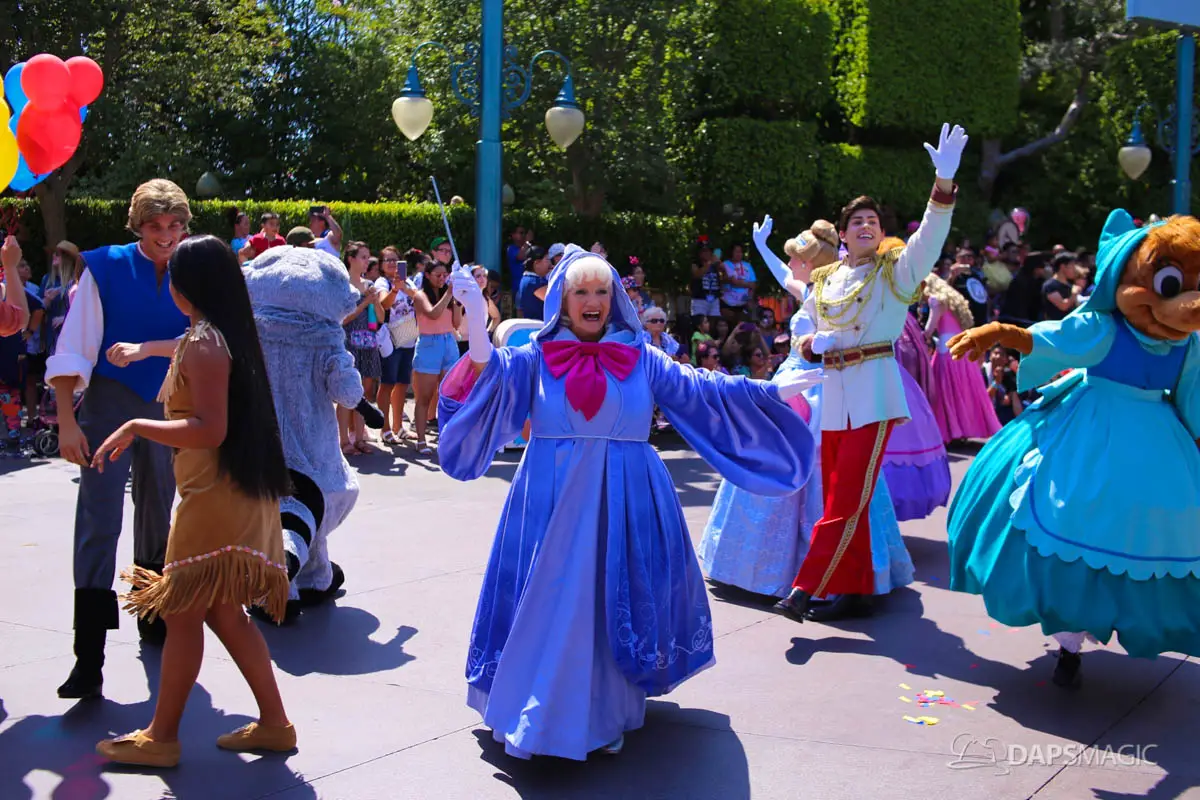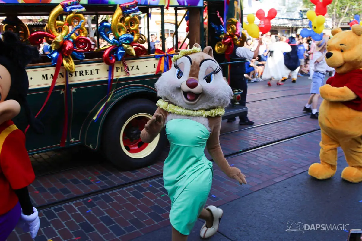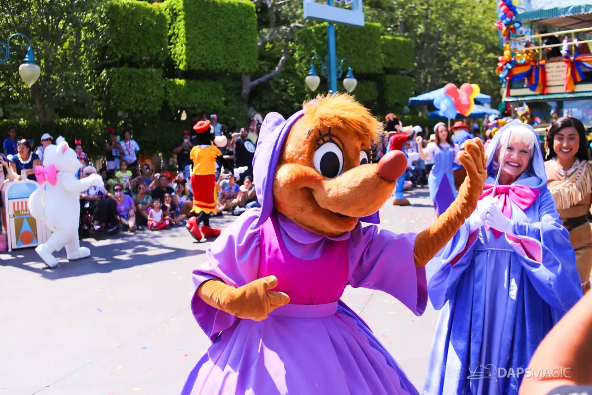 Disneyland’s 63rd Birthday Celebration Cavalcade with 63 Disney Characters at 2:50 pm