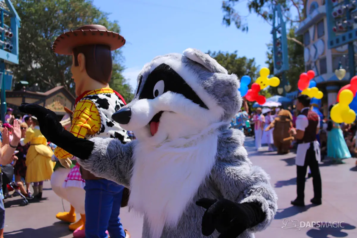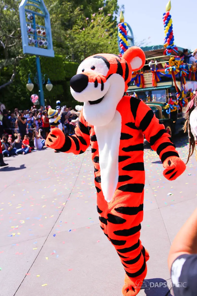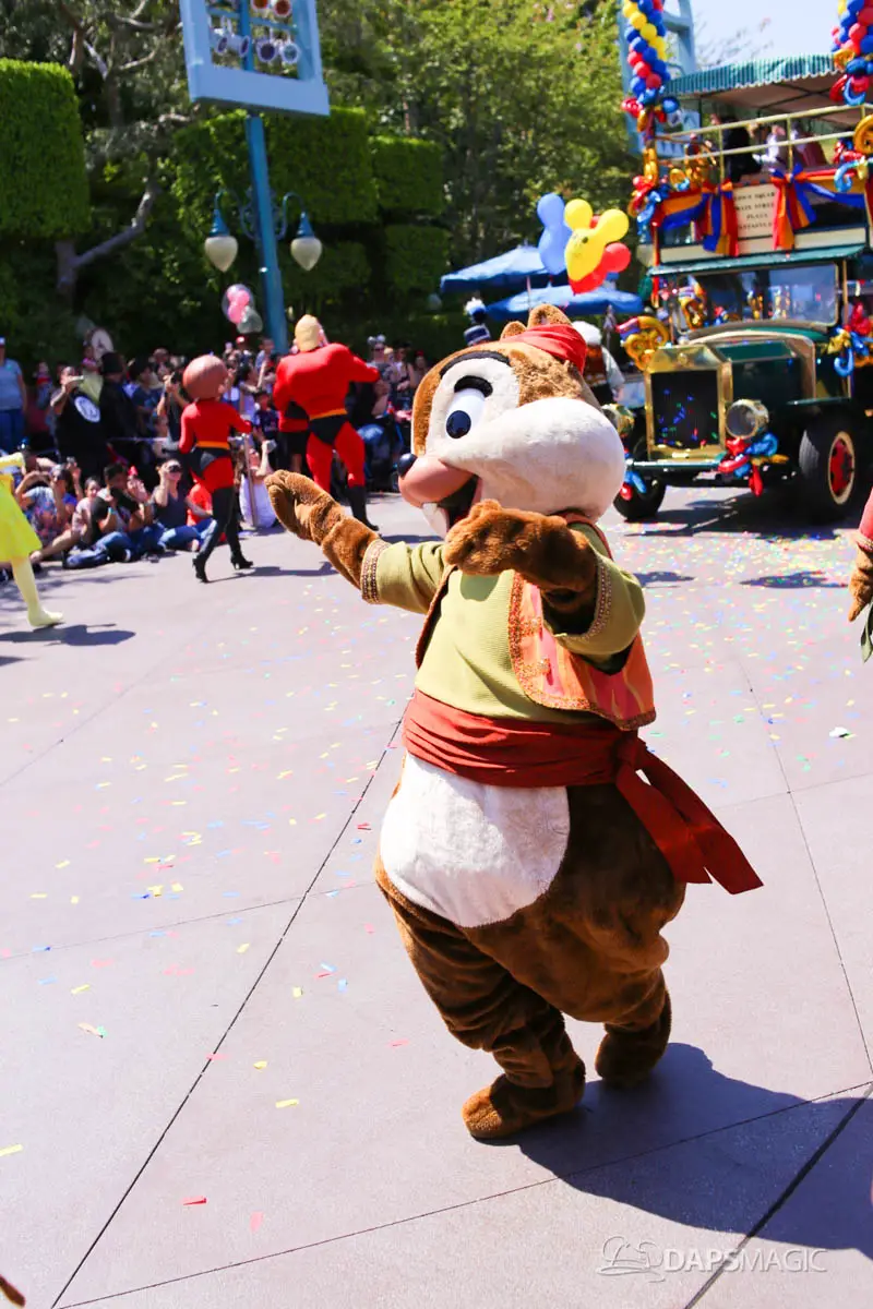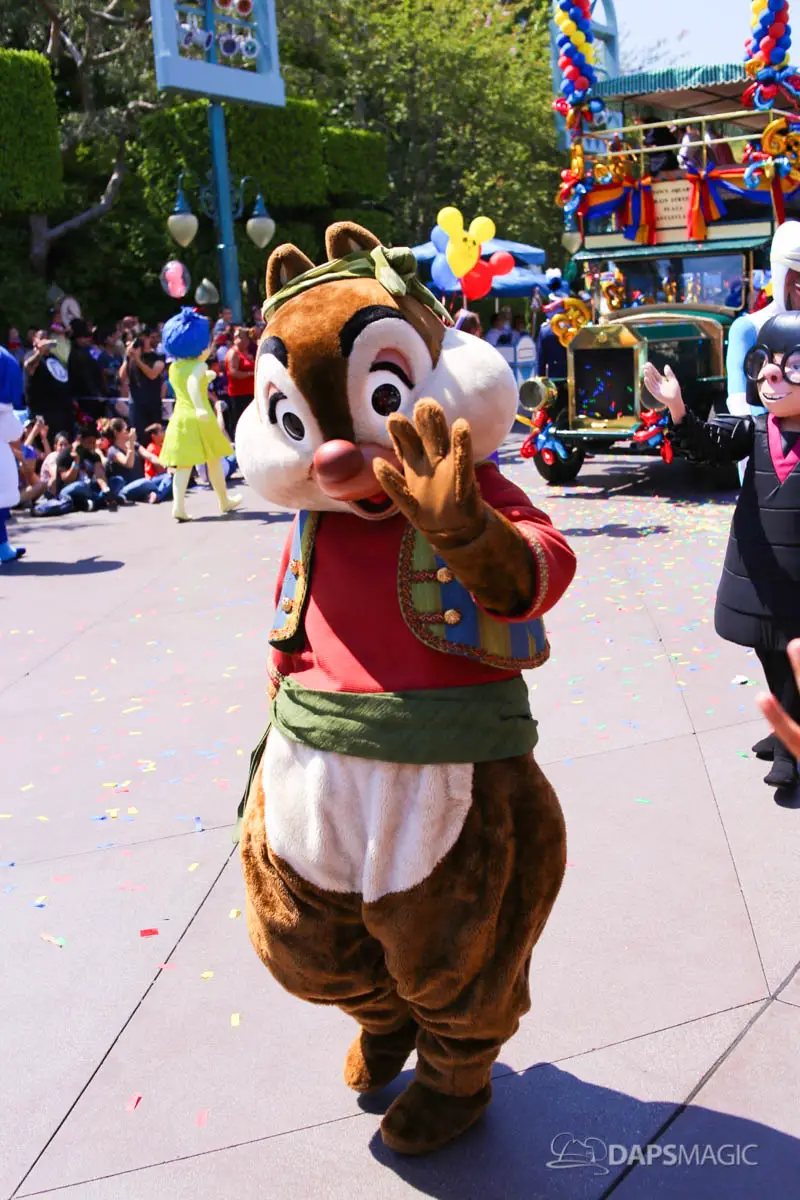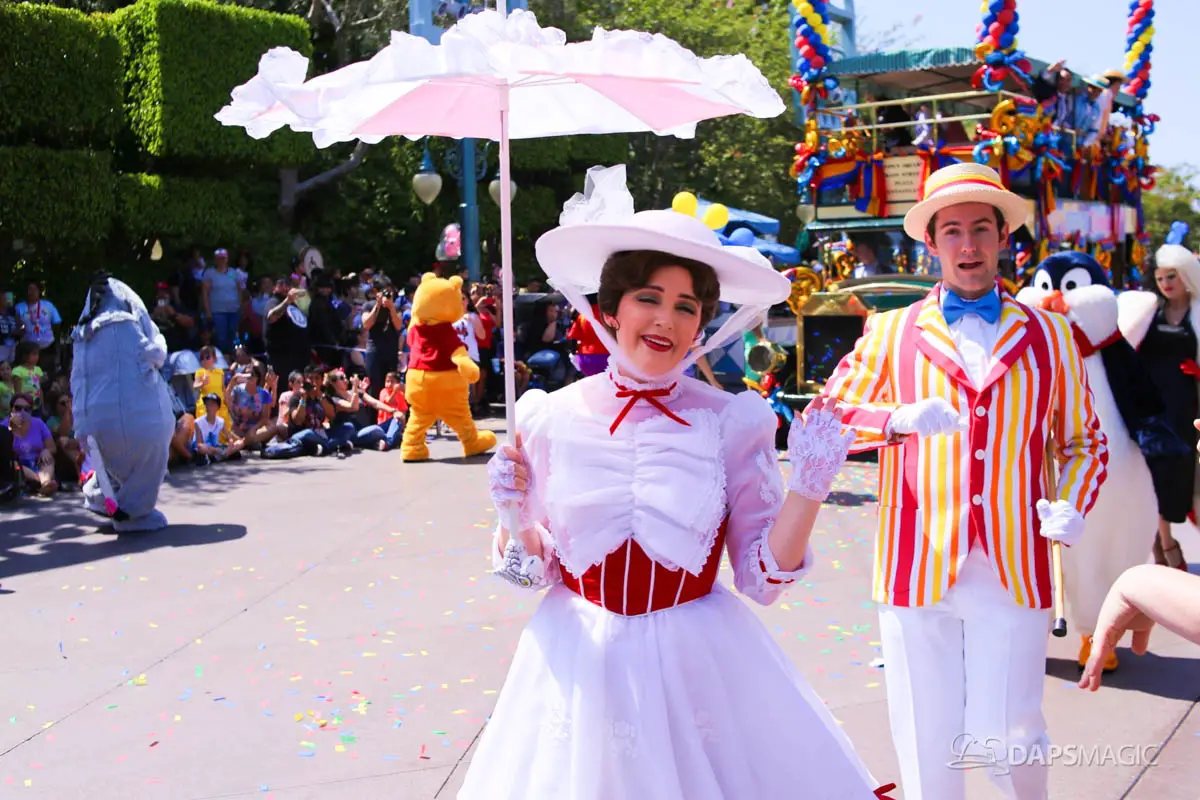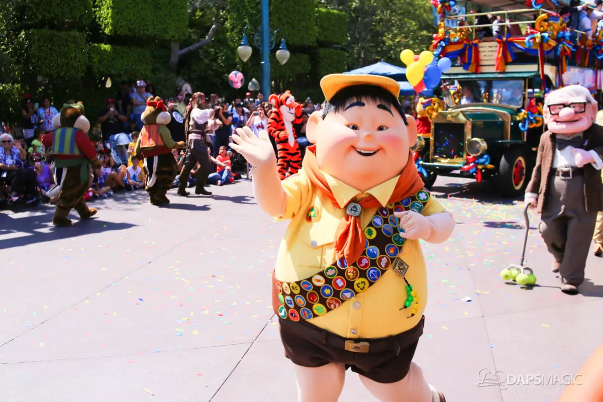 Disneyland’s 63rd Birthday Celebration Cavalcade with 63 Disney Characters at 2:50 pm