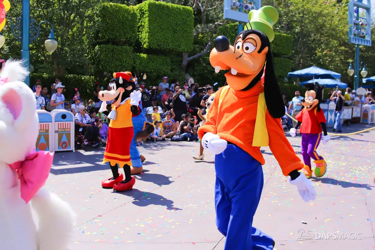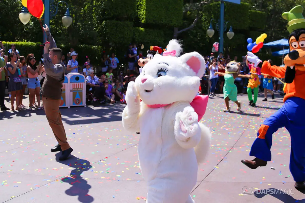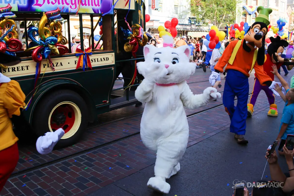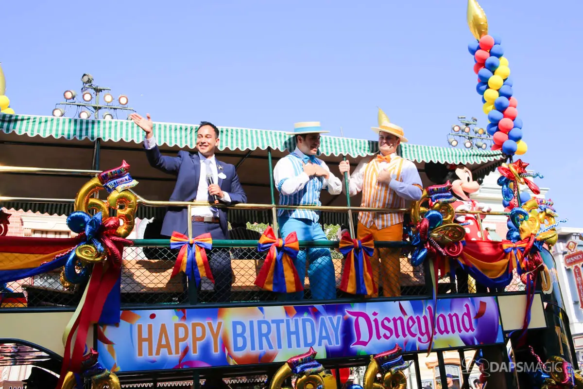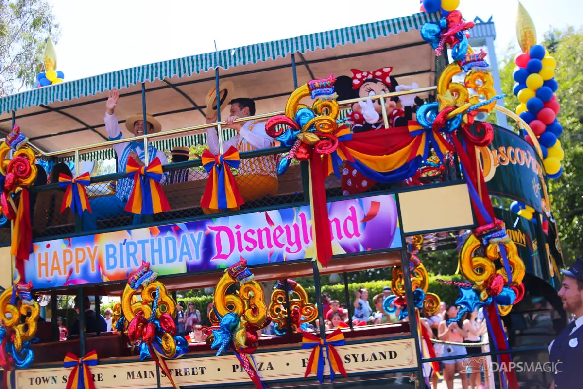 On July 17, 2018, Disneyland celebrated its 63rd birthday. The birthday was celebrated with two cavalcades that made their way through the parade route at Disneyland. The two cavalcades took place at 2:50 and 5:25 pm. Each cavalcade had four stops along the parade route. The cavalcade was comprised of 63 characters, the omnibus, the Dapper Dans of Disneyland and the Disneyland Band director. At each stop, Walt Disney’s Disneyland dedication speech was played before a rendition of Happy Birthday was sung. Then the characters made a circle around the Omnibus allowing the guests in attendance the opportunity to see each character.