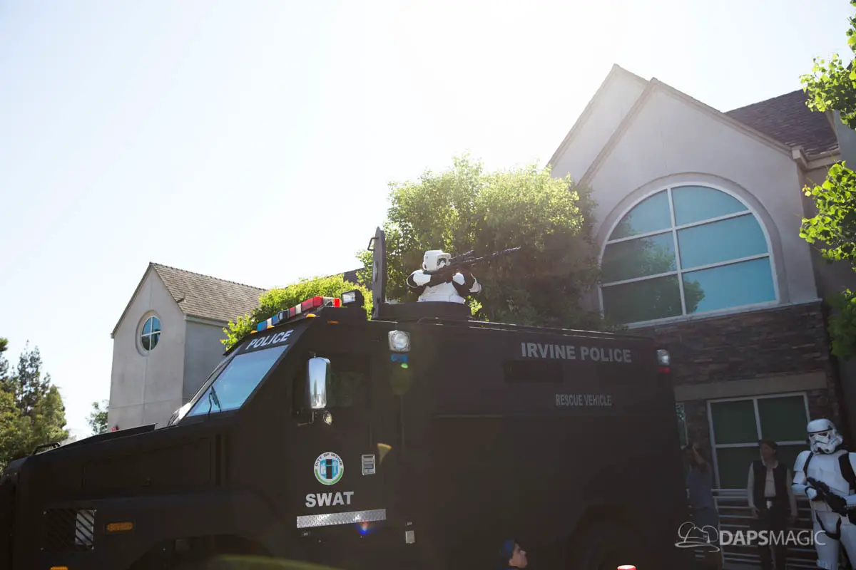 - Appearances by the Pizza Planet Truck, OC Squad 501st, and Rebel Legions, and the Irvine Police Department