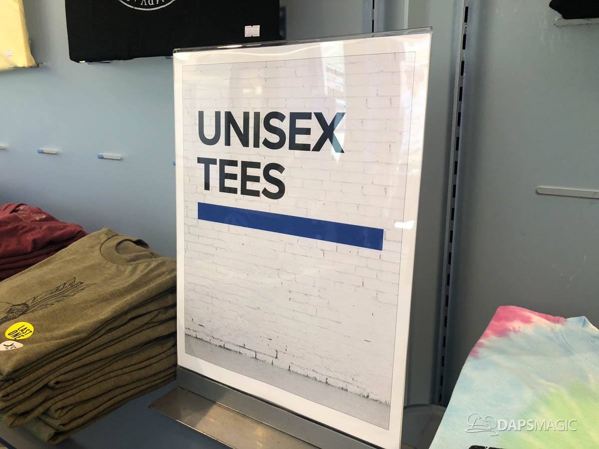 There is something for everyone in this shop! The farther wall features many shirt designs, with sections for women’s and unisex designs. There are dresses and skirts, even a place to check out hats themed to some of your favorite films! One of my favorite details of the shop was that anything that was the last in stock was marked with a “Last One!” sticker, to keep everything very clear! Everywhere you turn, there is magic to be found!